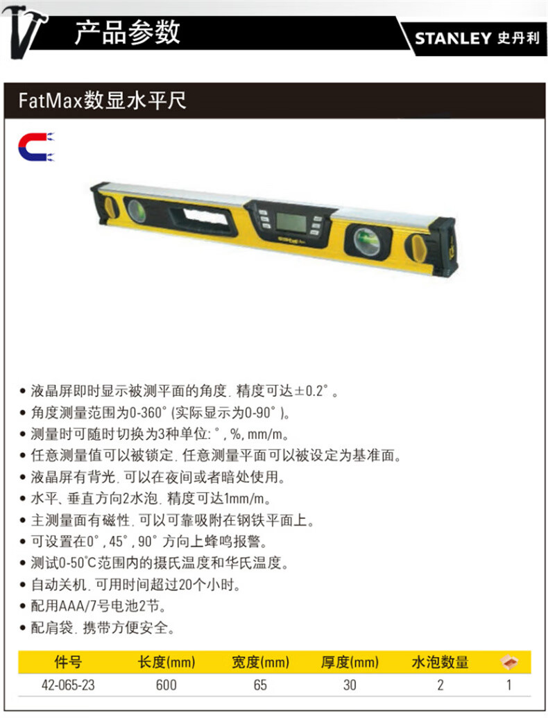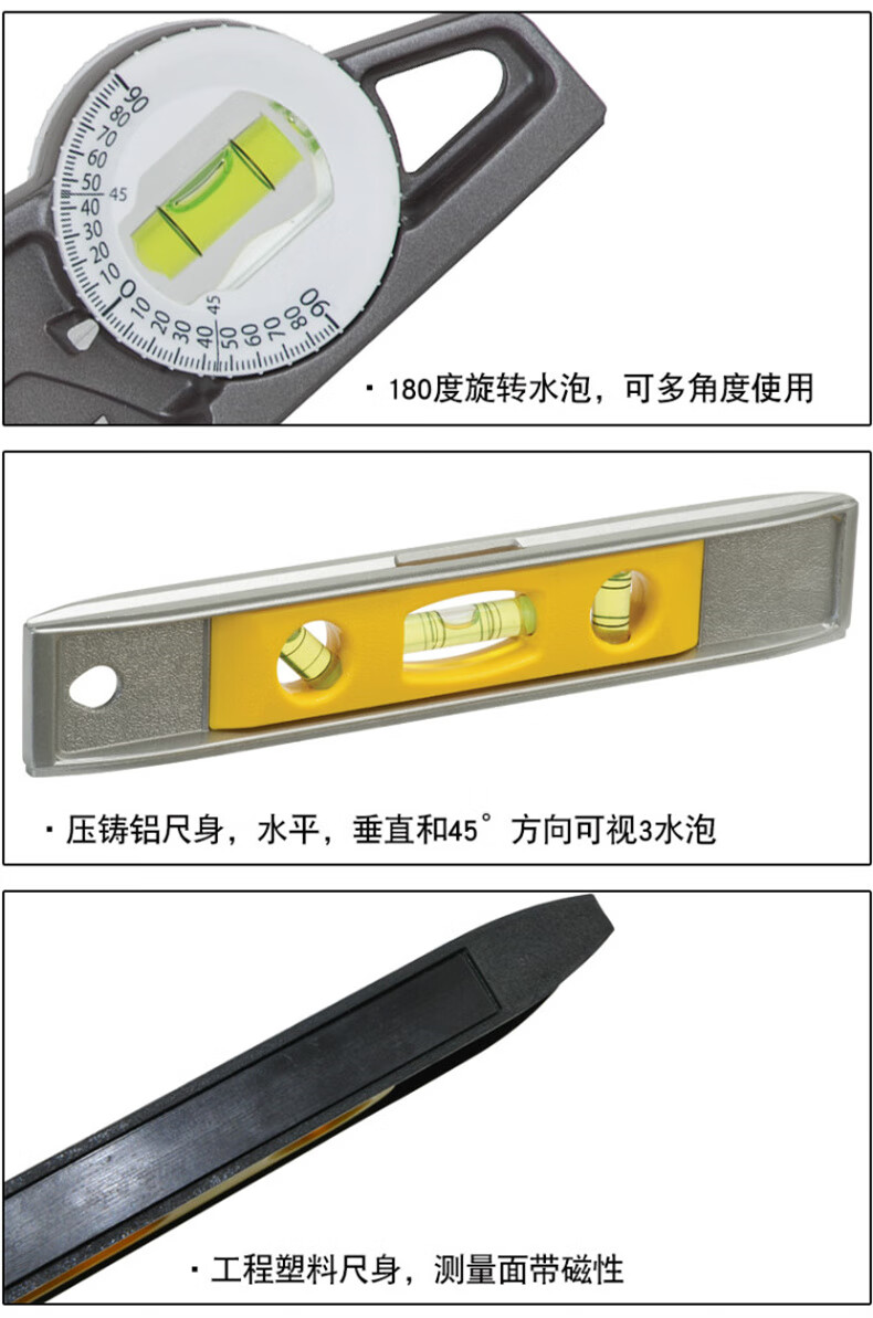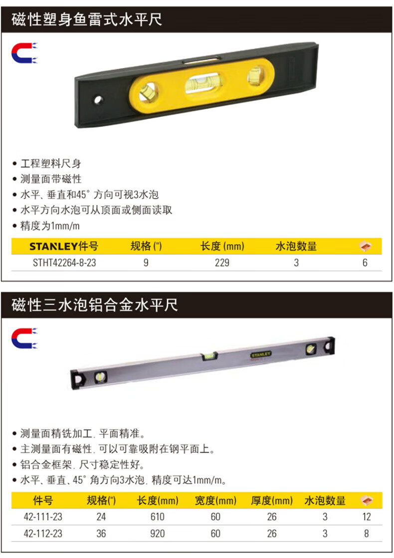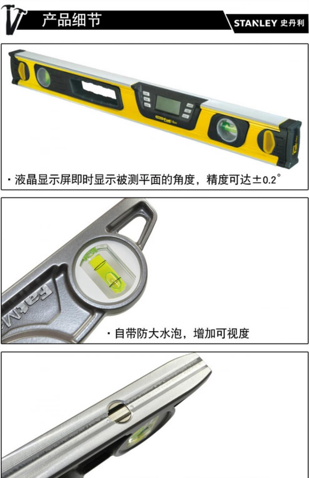 Stanley (STANLEY) level high-precision ruler small ruler household level with magnetic measuring ruler multi-function magnetic three-bubble aluminum alloy level 24_
