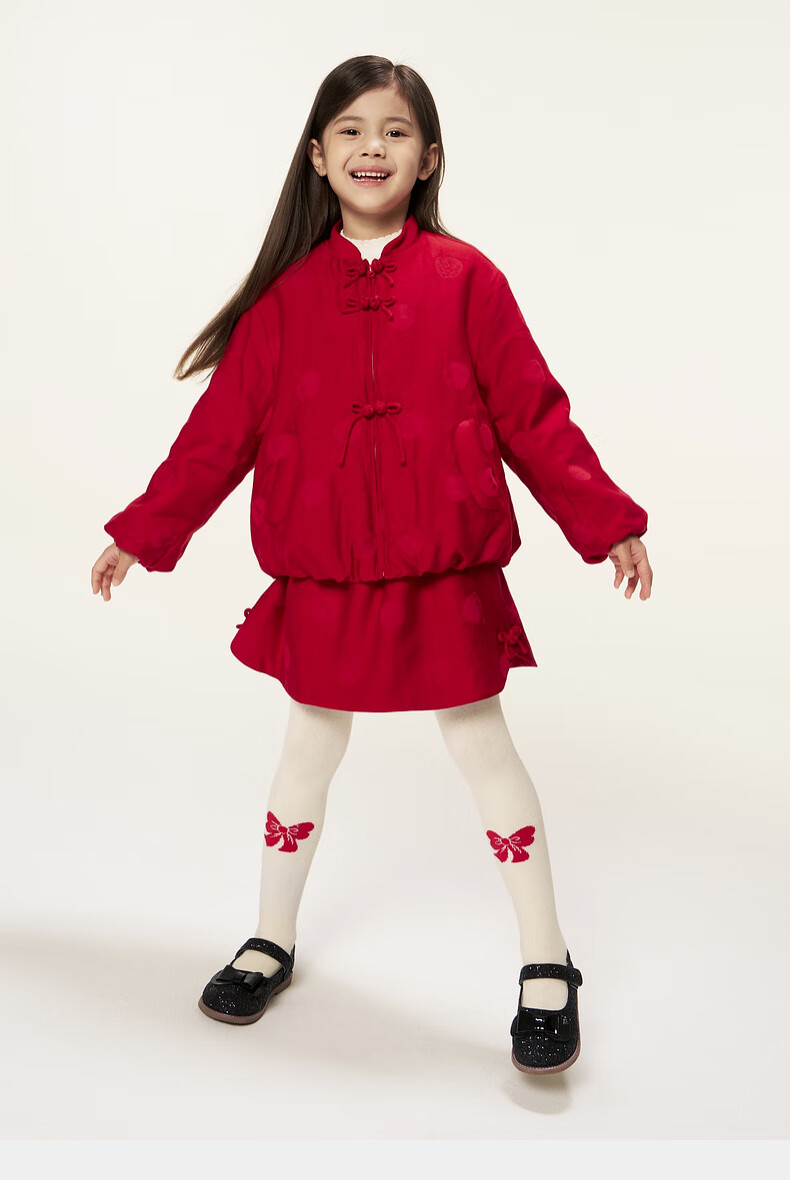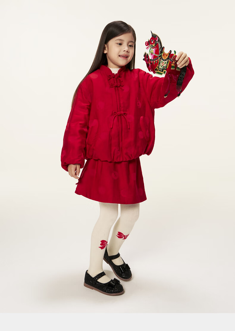 M.Latin shopping mall same style New Year's greetings children's skirt 26 spring new style polka dot jacquard regular waist skirt for girls and boys big red 140