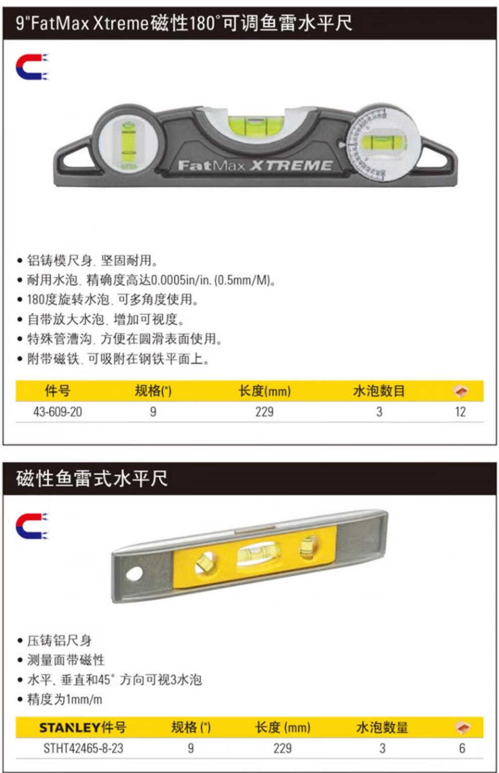 Stanley (STANLEY) level high-precision level with magnetic ruler household small measuring ruler multi-functional cast aluminum ruler body 180 adjustable torpedo level 9_