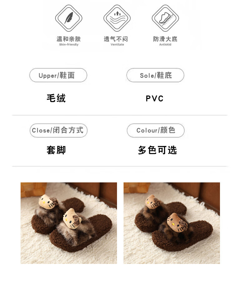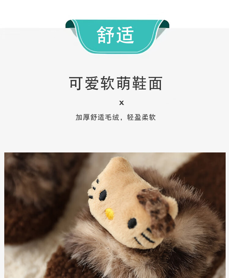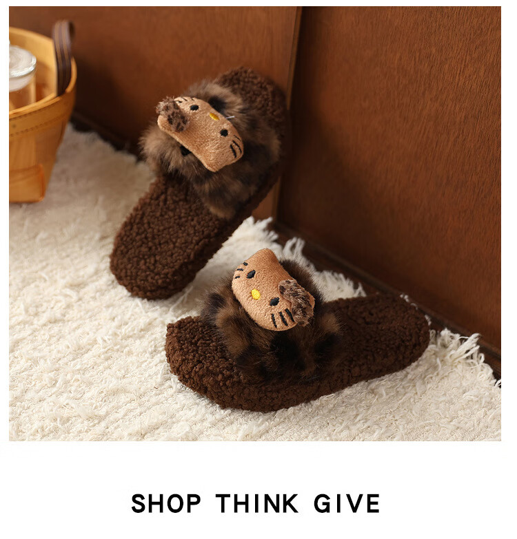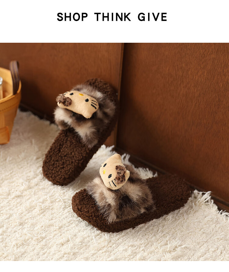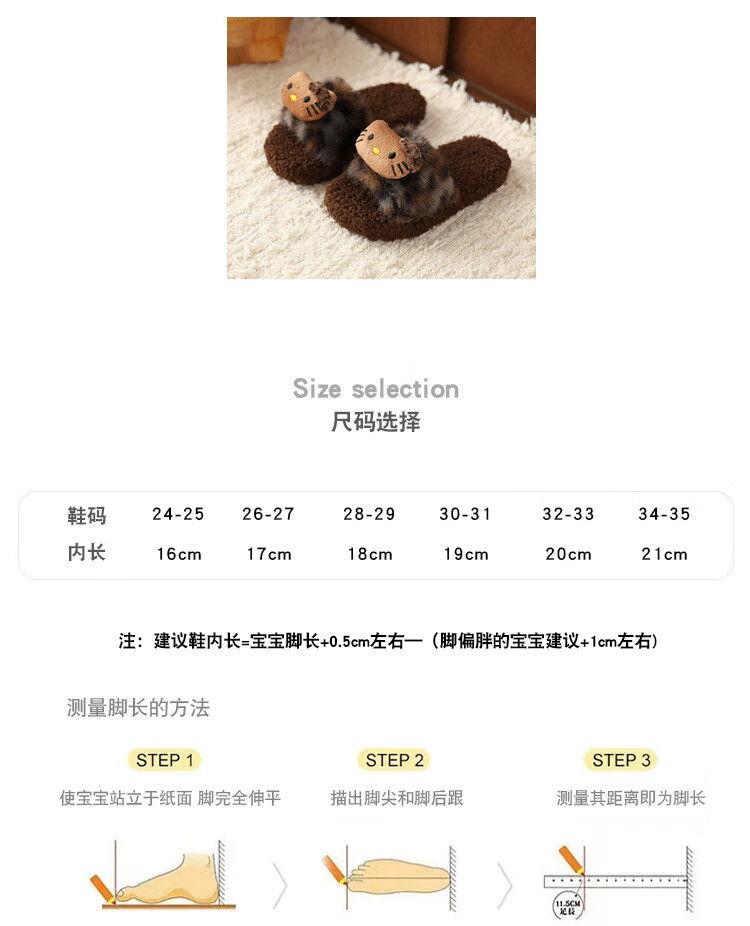 ABCTX leopard print children's furry slippers cute cat home autumn and winter new non-slip warm baby girl's cotton slippers leopard print brown--kt cat 24 25 (inner length 16cm)