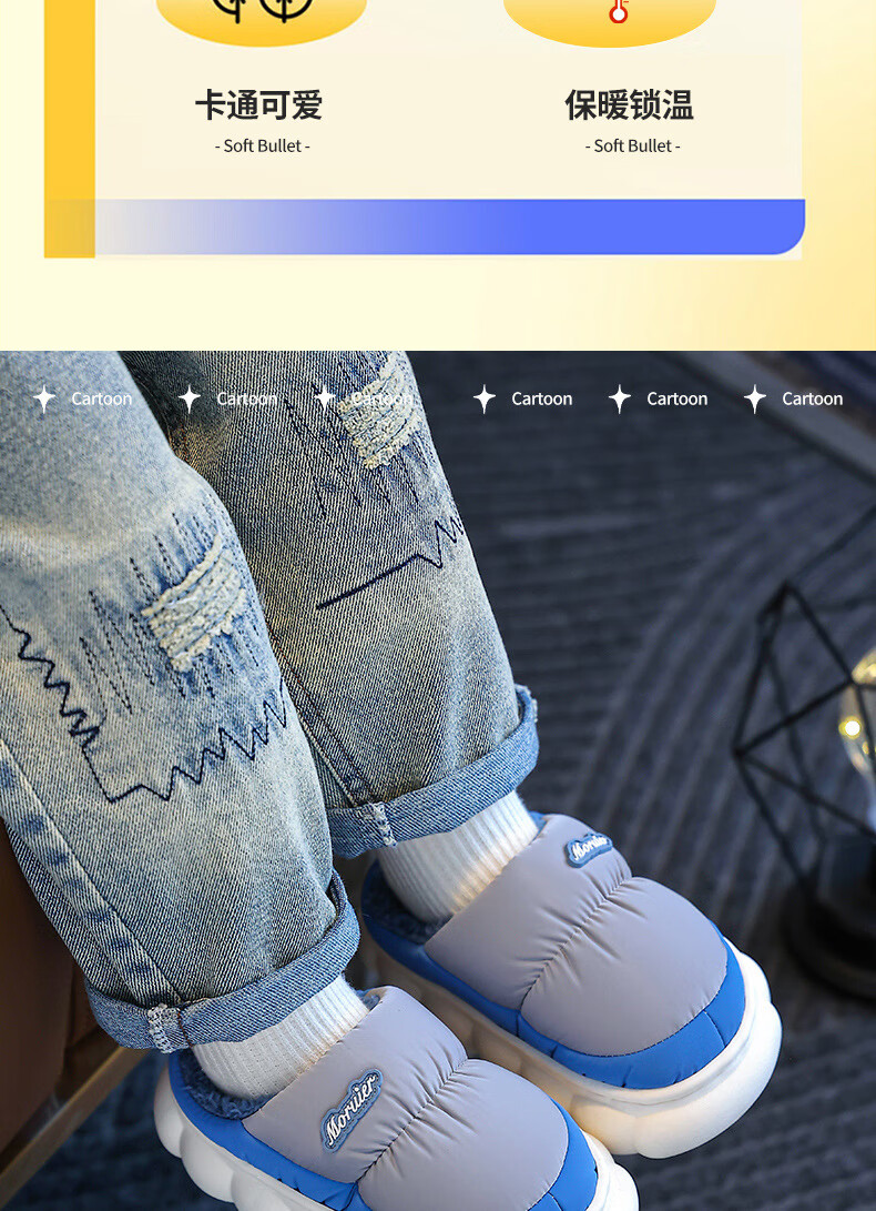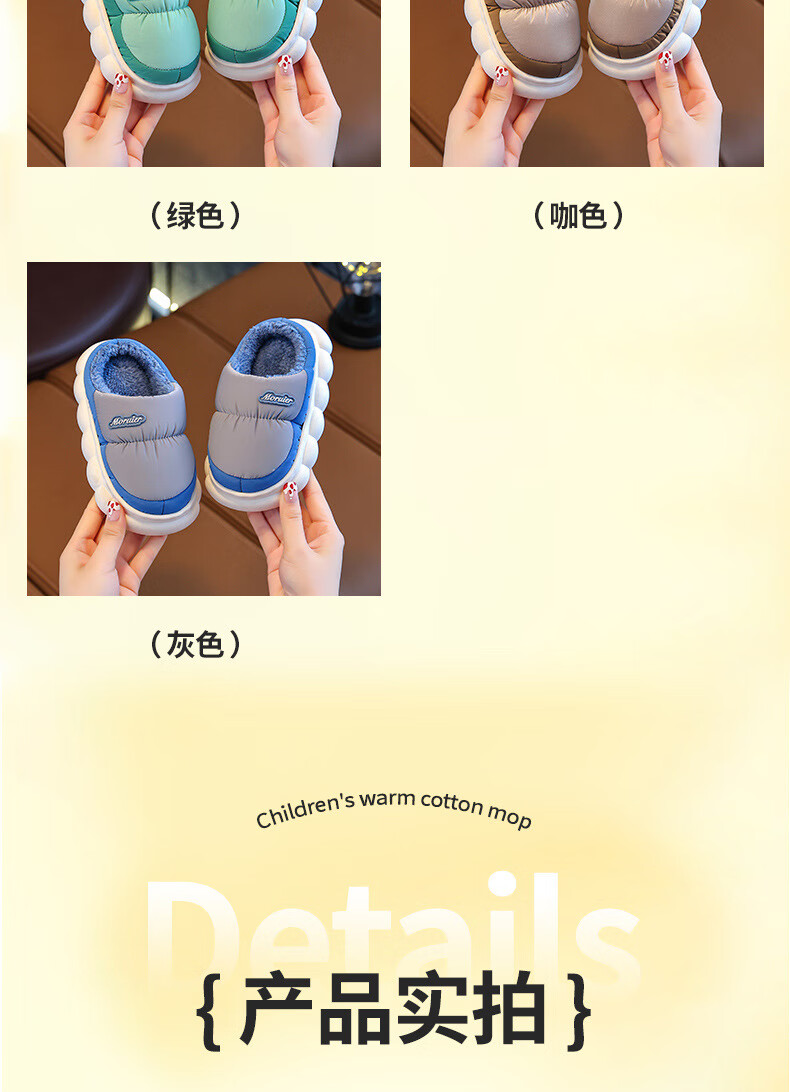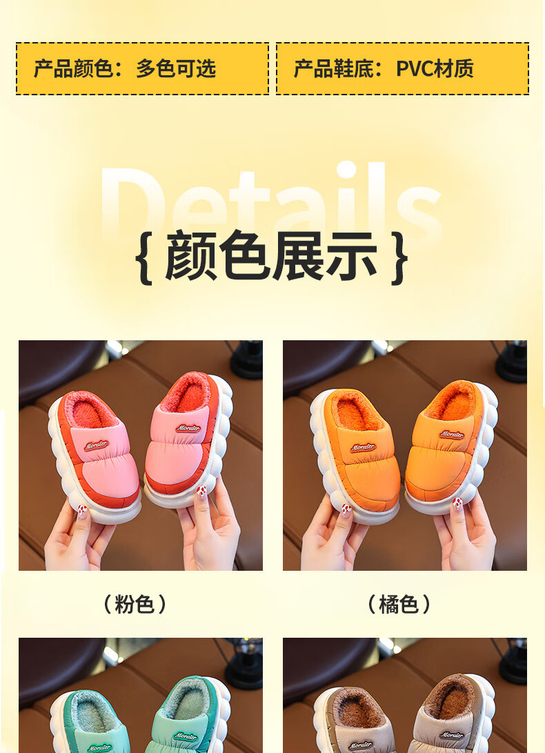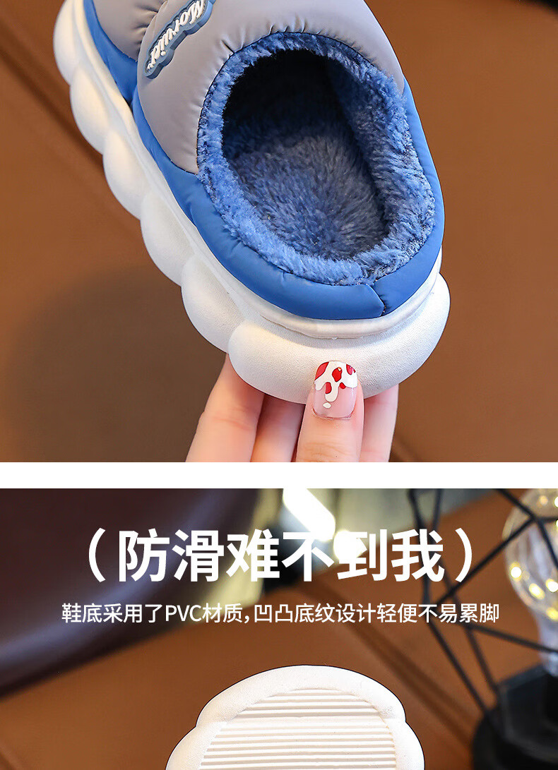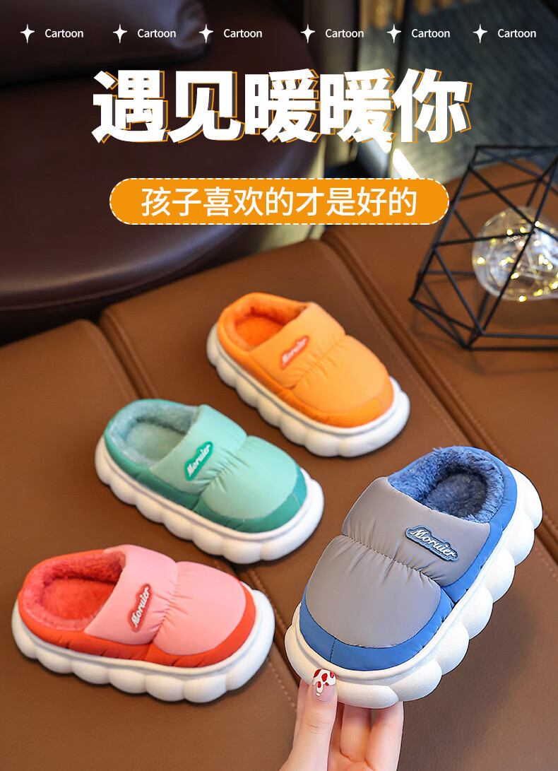 ABCTX winter children's cotton slippers bag with parent-child cotton shoes, big children's warm plus velvet thickened non-slip waterproof shoes for home pink slippers 24 25 yards inner length 15cm 2-3 years old