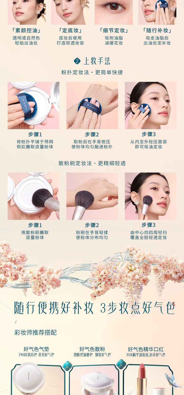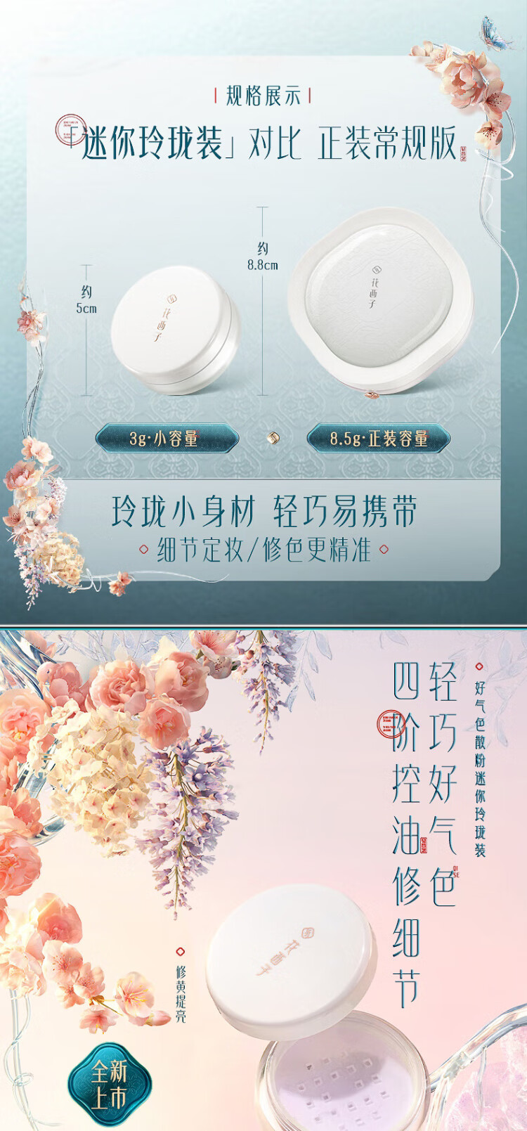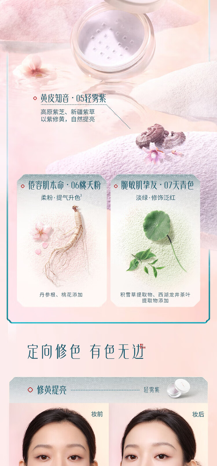 Hua Xizi Good Color Loose Powder Xiaodai Umbrella Makeup Pre-makeup Accompanying Pack Best Selling Trial Pack for Travel Portable Quick Touch-up Makeup Beginner's Guide Loose Powder 05 Light Mist Purple-3g + Xiaodai Umbrella 05 Huaxi Purple-5g