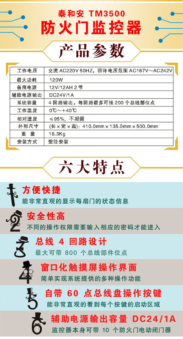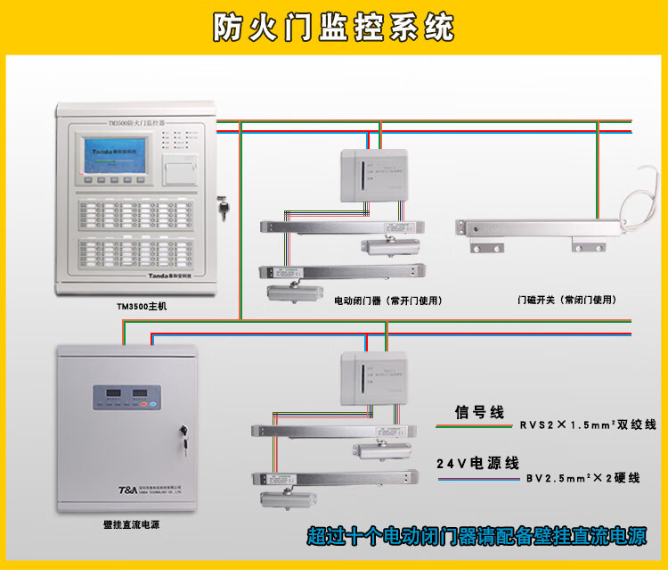 Taihean fire door monitoring system TM3500/200 normally open and normally closed electric door closer feedback closing host TM3500/200 points
