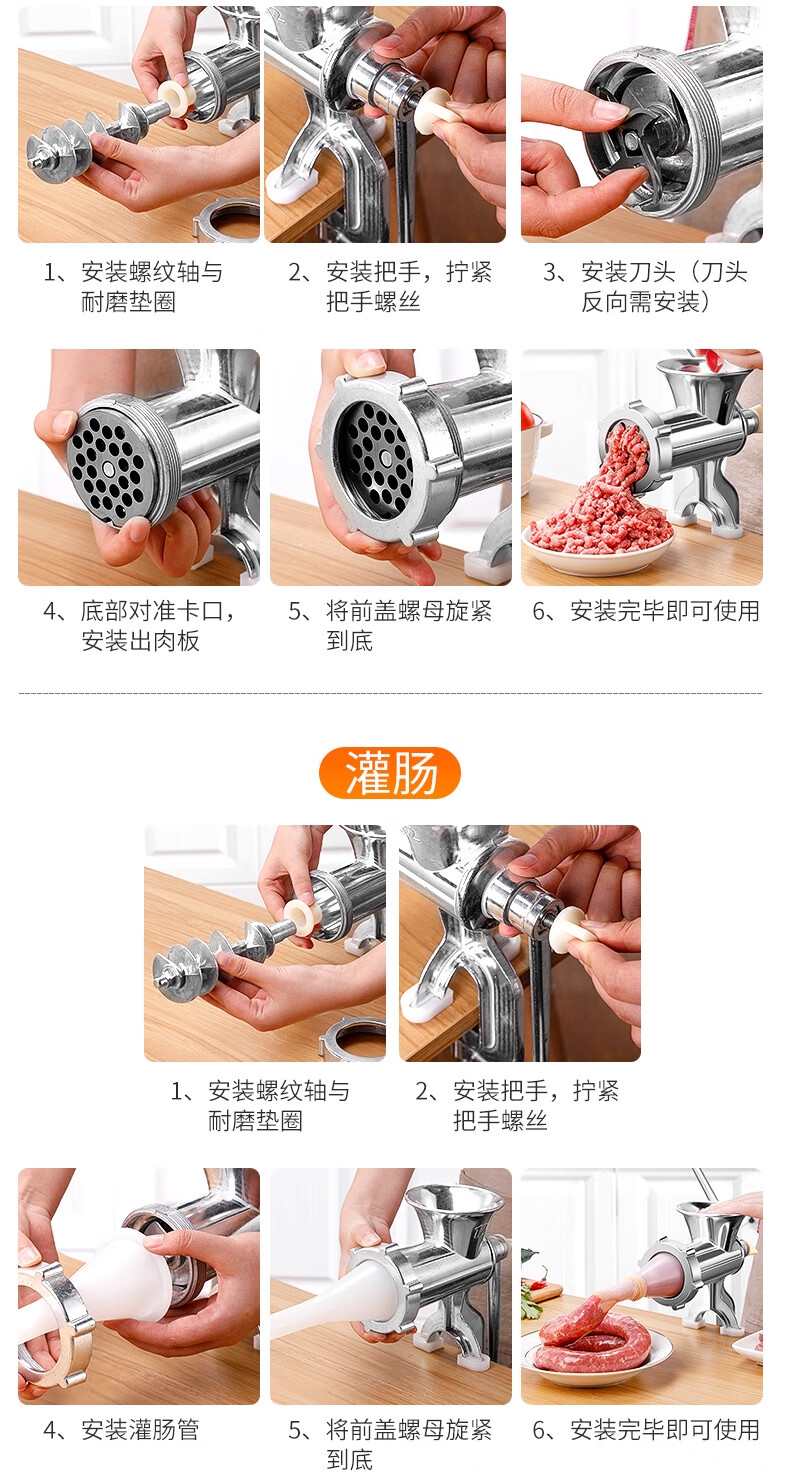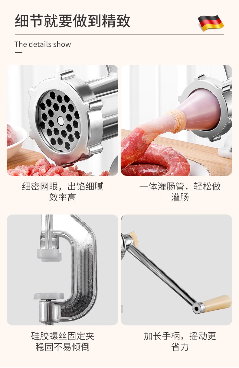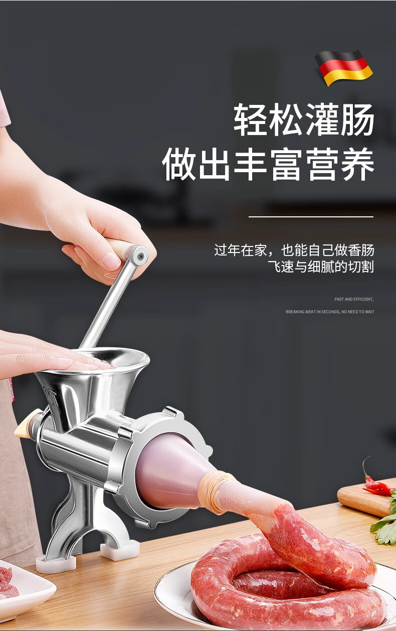 Deming sausage filling machine manual meat grinder sausage filling machine hand crank sausage filling artifact upgraded meat grinder casing can be filled with sausage/can be ground meat No. 10 - free casing cotton gloves