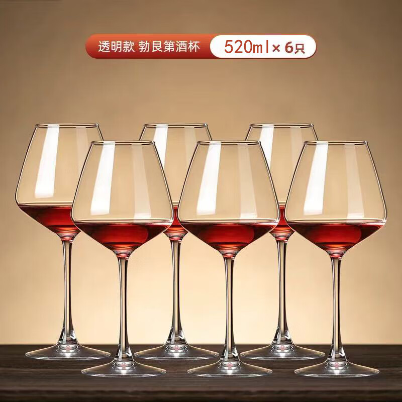Jindalai KING DEALAY red wine glass goblet household glass wine glass Burgundy wine glass wine set 2 pieces, strengthened and thickened Burgundy 520ml 2 pieces
