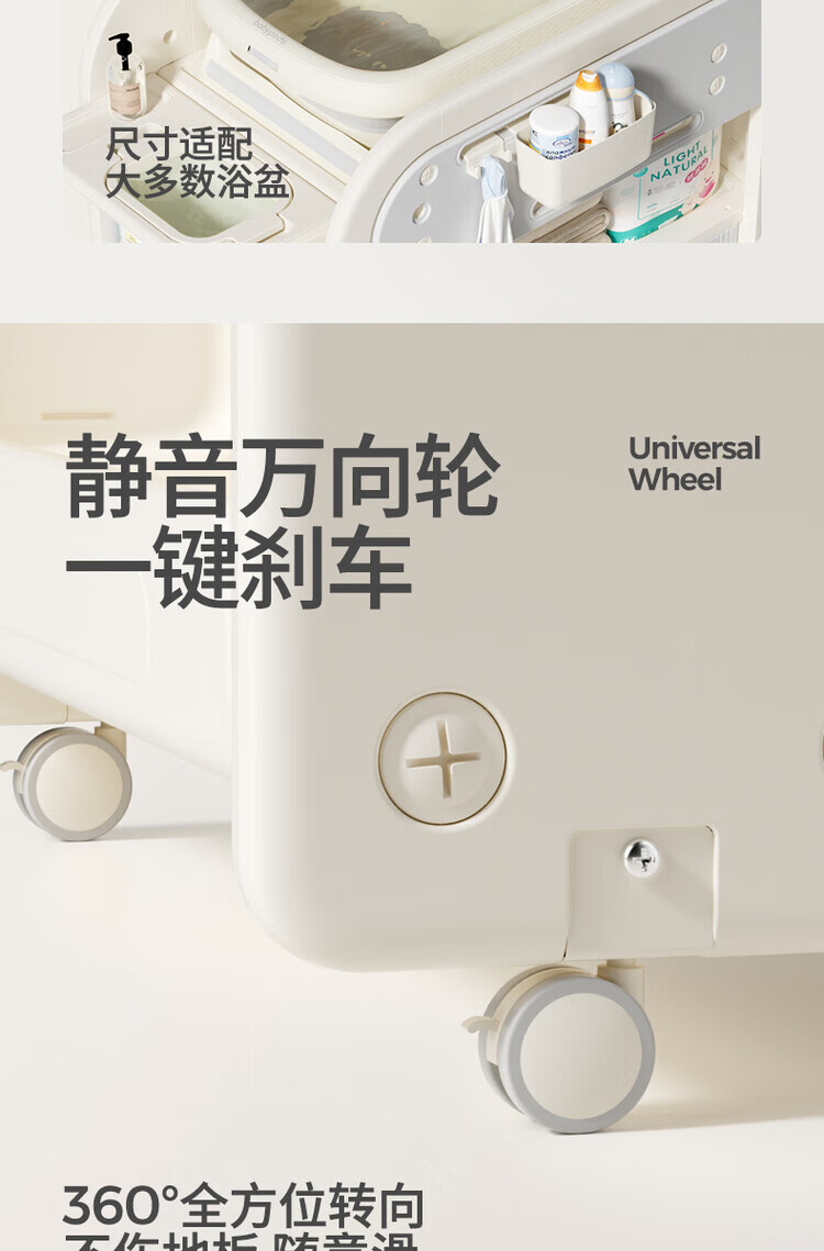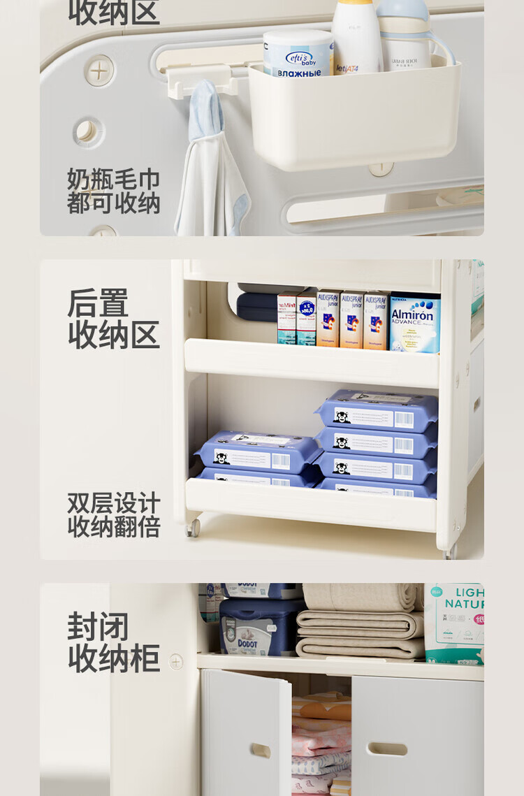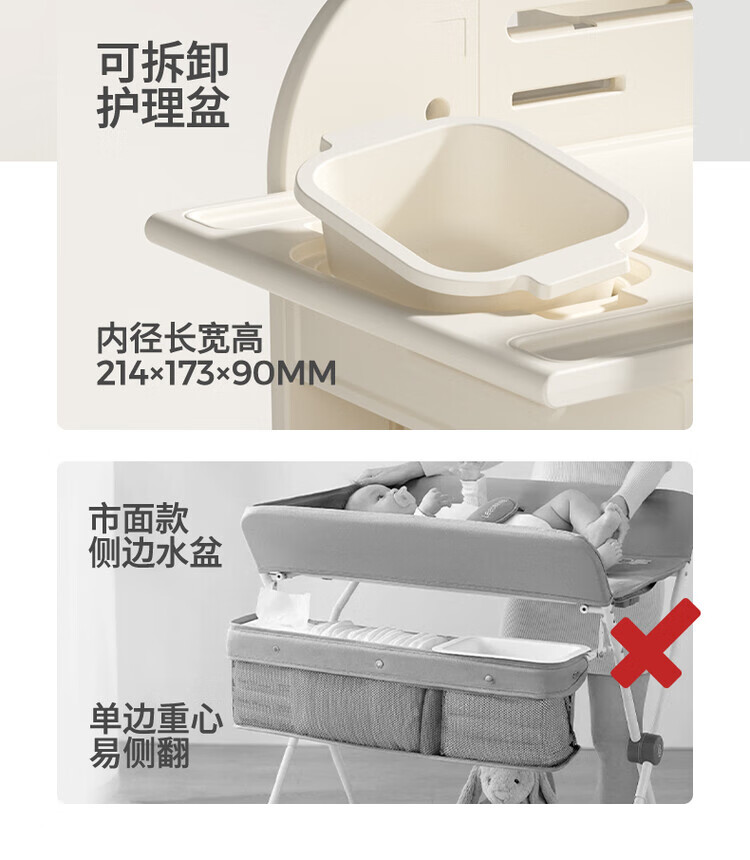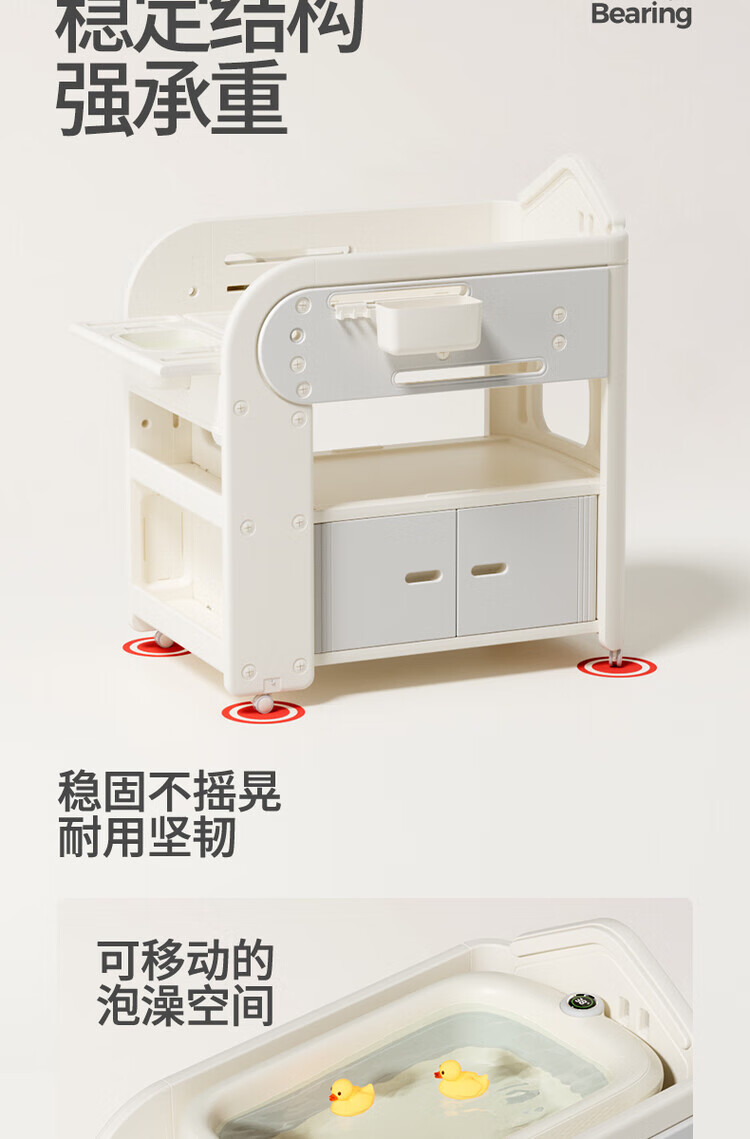 Diaper table, baby care table, newborn crib, multifunctional mobile diaper changing and toddler bathing table, multifunctional nursing table + silicone pad + 2 storage boxes