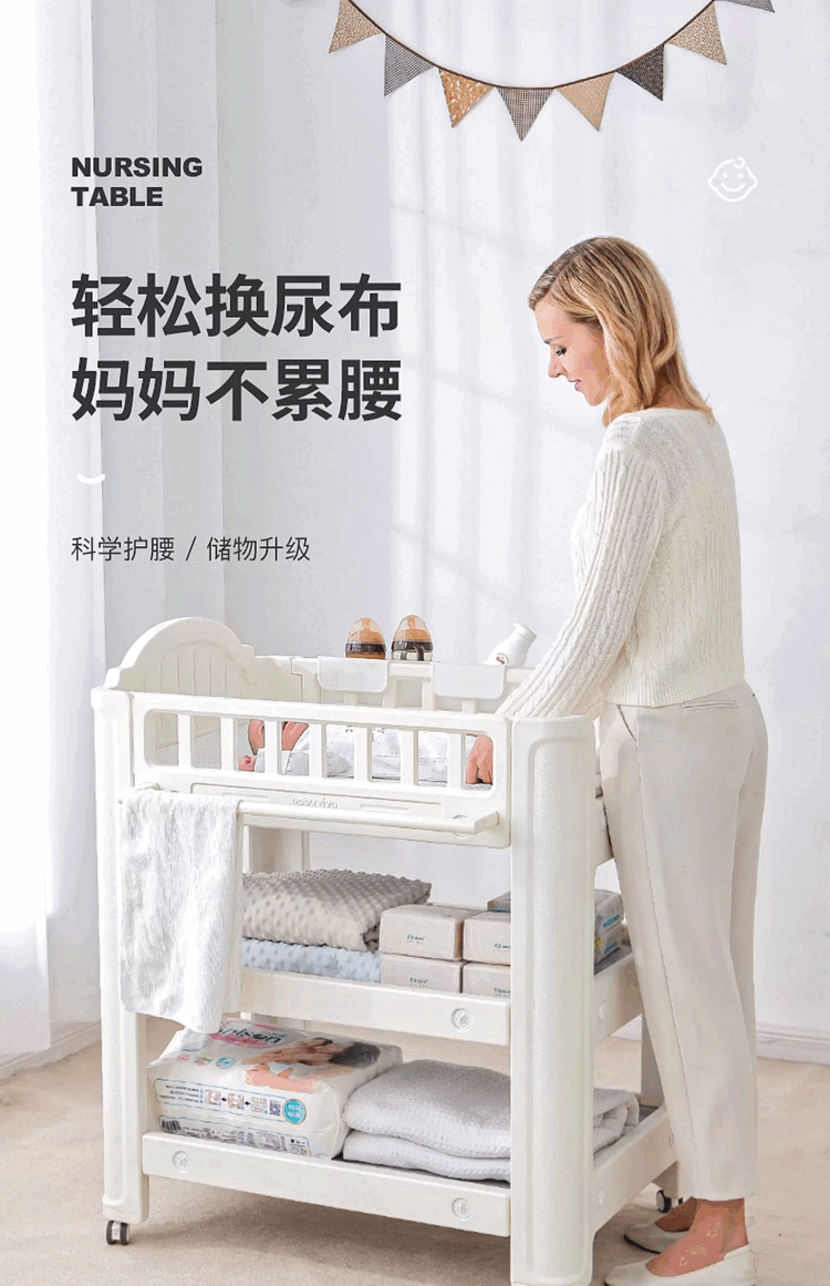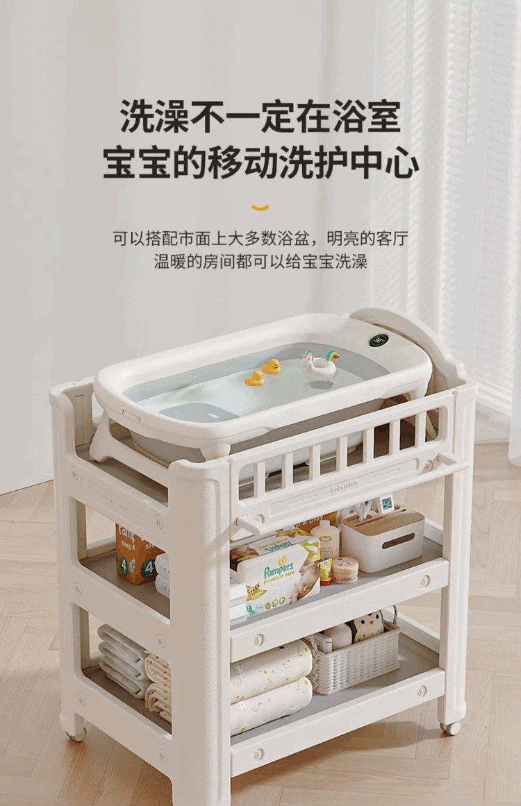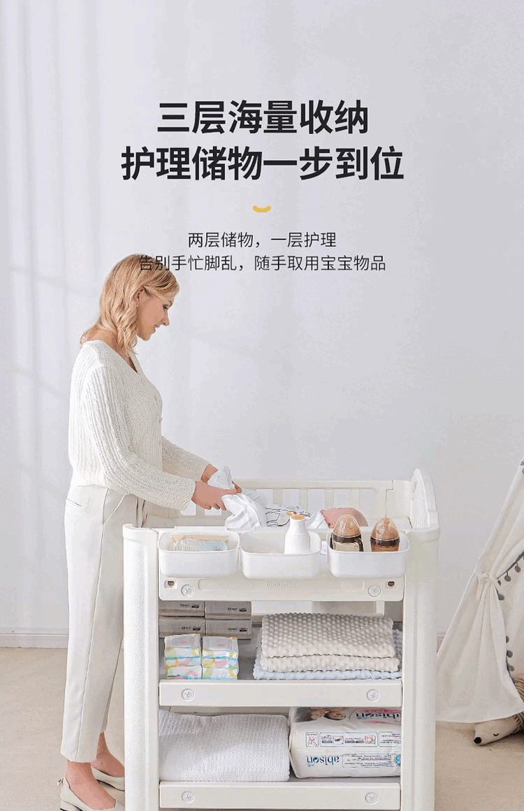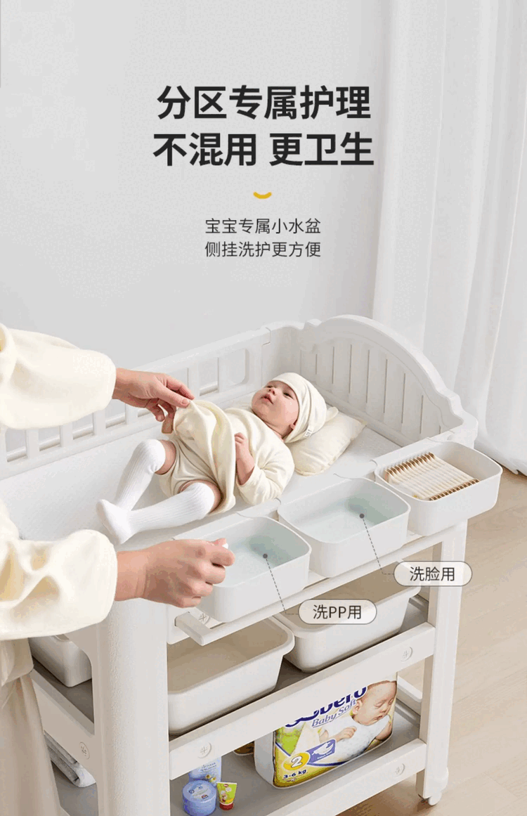 Babyviva baby changing table baby bath touch care table diaper changing removable newborn multifunctional changing table + latex pad + 6 storage boxes + 3 hanging boxes
