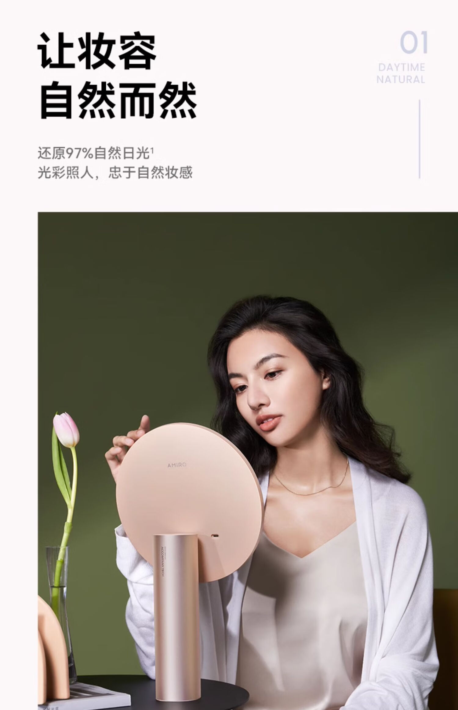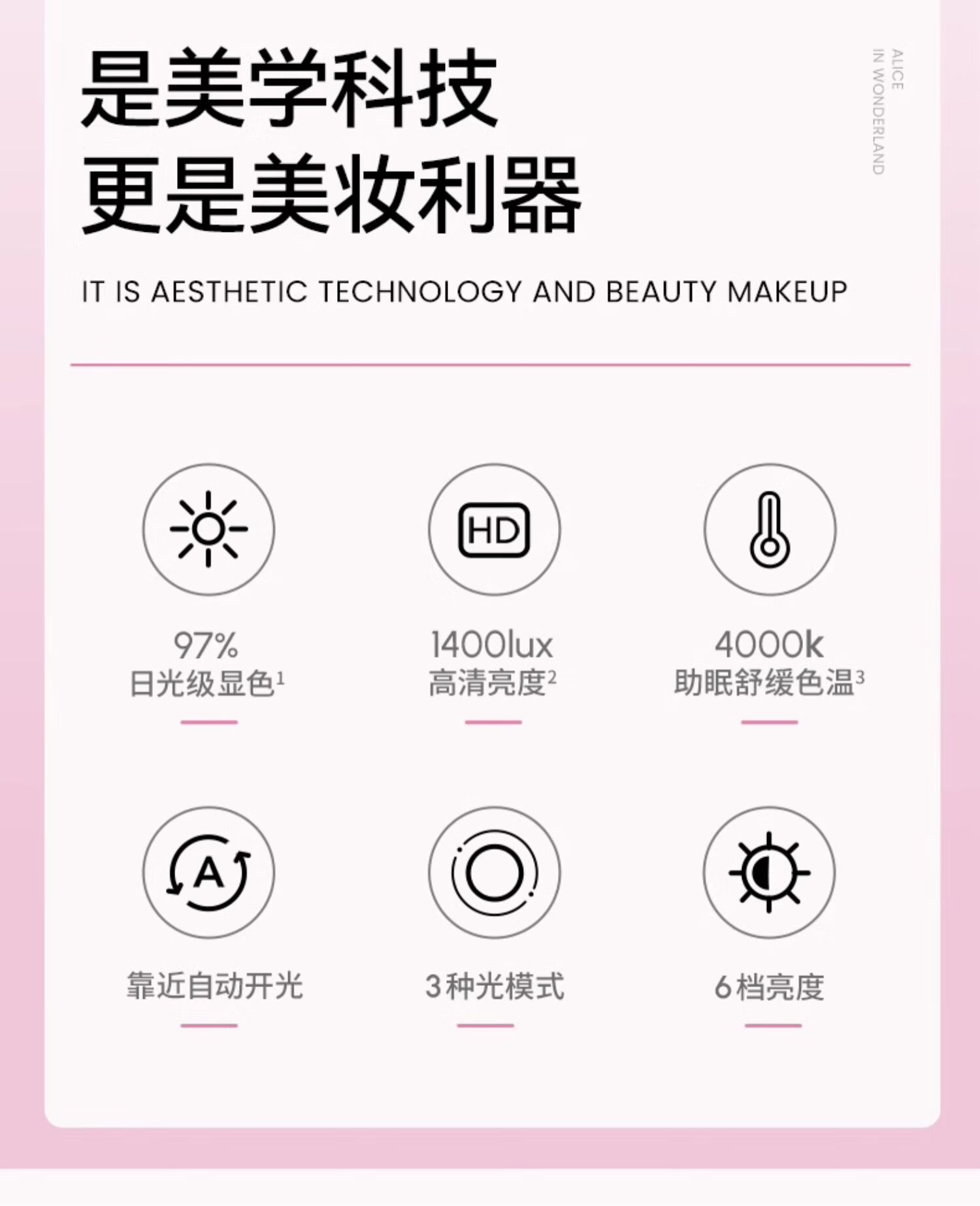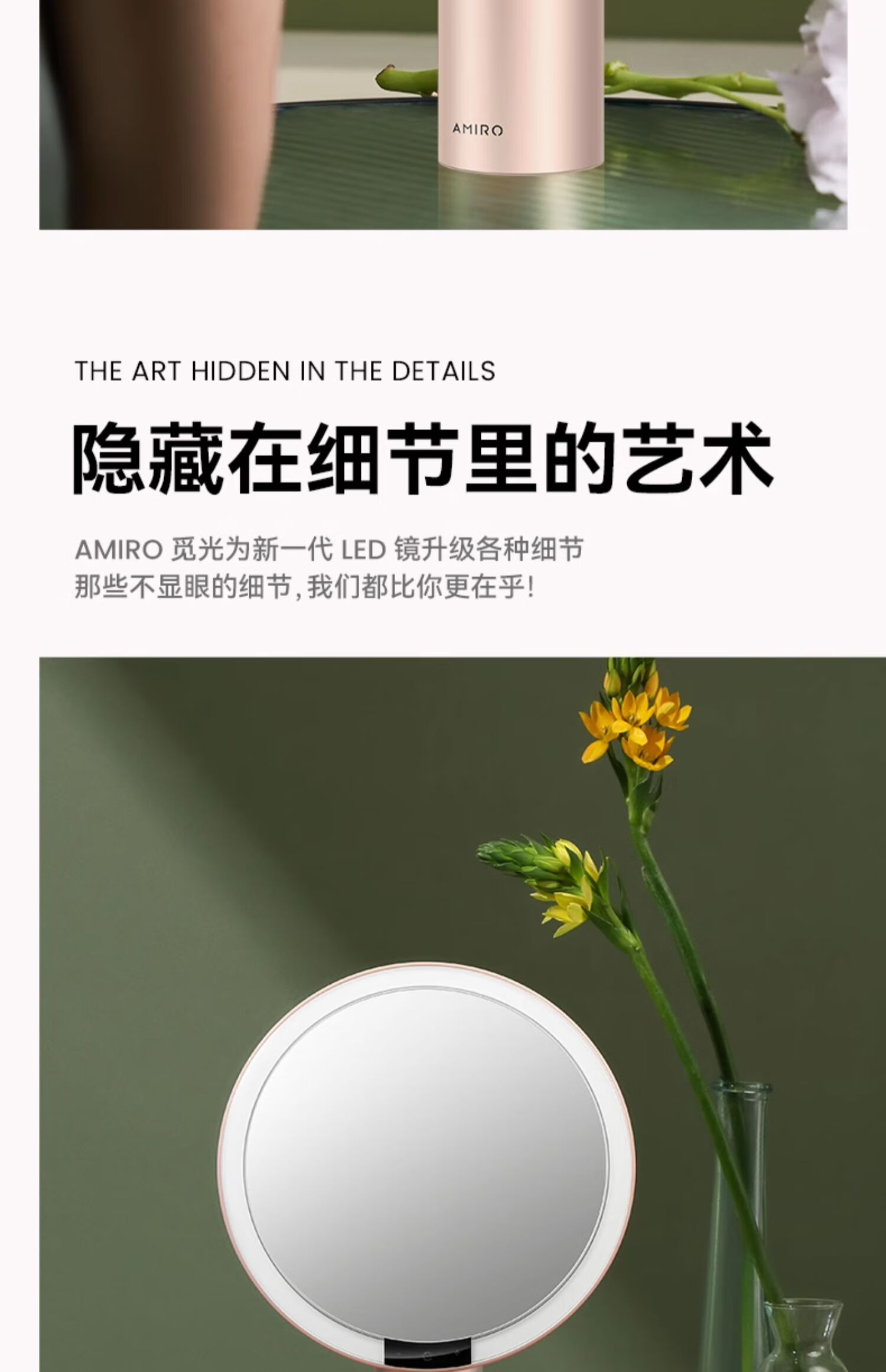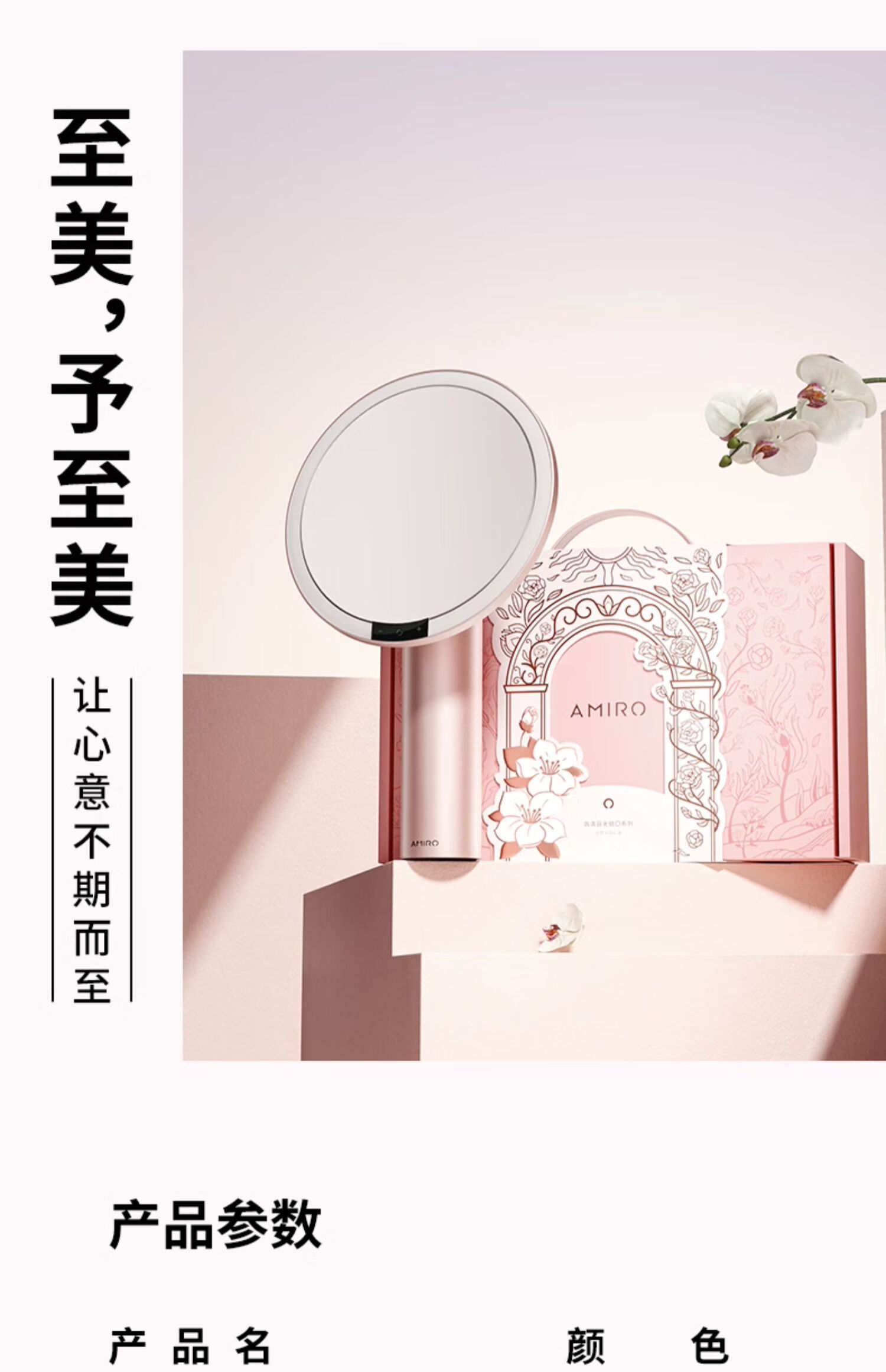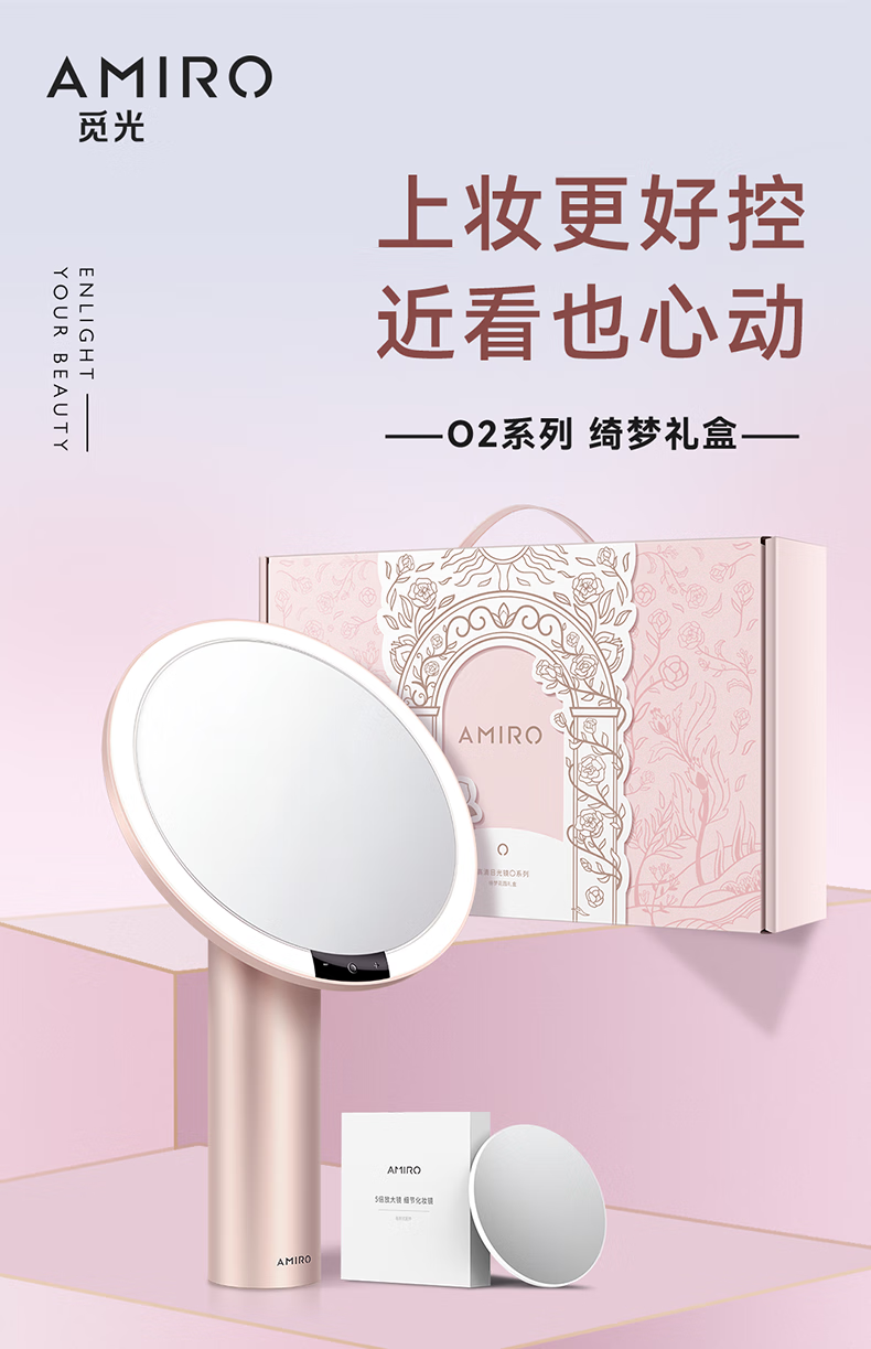 Miguang Sweet Dream Garden Gift Box AMIRO Miguang Makeup Mirror with Light LED Desktop Dressing Mirror Birthday Gift Sweet Dream Garden + Magnifying Mirror + Cosmetic Bag