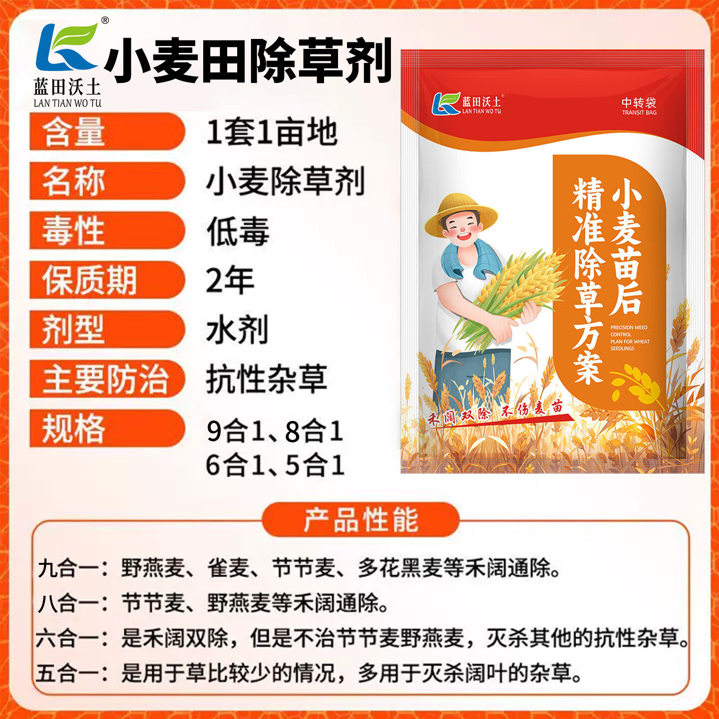 Herbicida de post-emergencia de trigo Jiejie Wheat and Wild Oats, Kanmainiang Hekuo doble matanza sin dañar las plántulas de trigo, paquete de deshierbe de trigo C paquete conjunto de 8 paquetes, elimina Jiejie trigo, bromo, avena silvestre versión mejorada 1 juego
