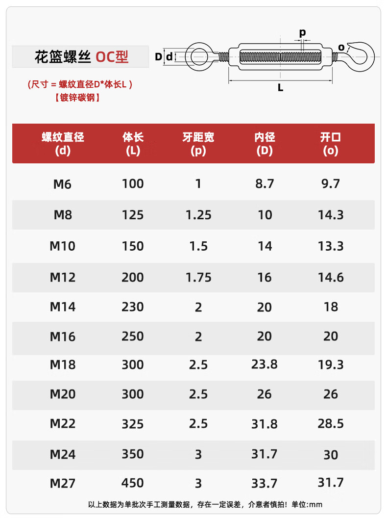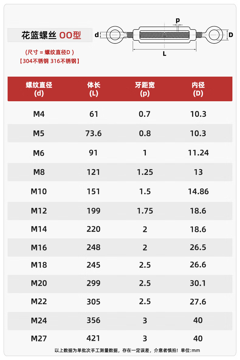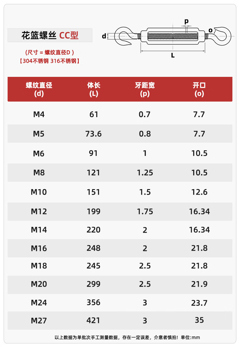 Dani 304/316 stainless steel flower basket screw wire tightener wire rope tensioner wire tightener wire tightener turnbuckle M10 (O C type) 304 material