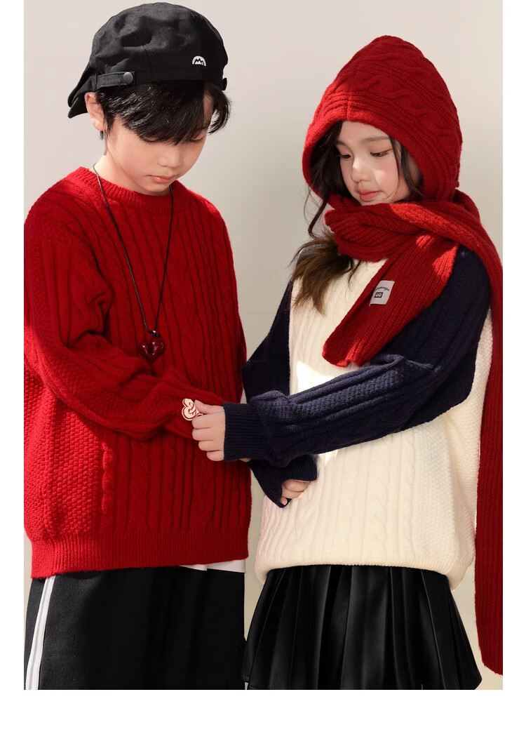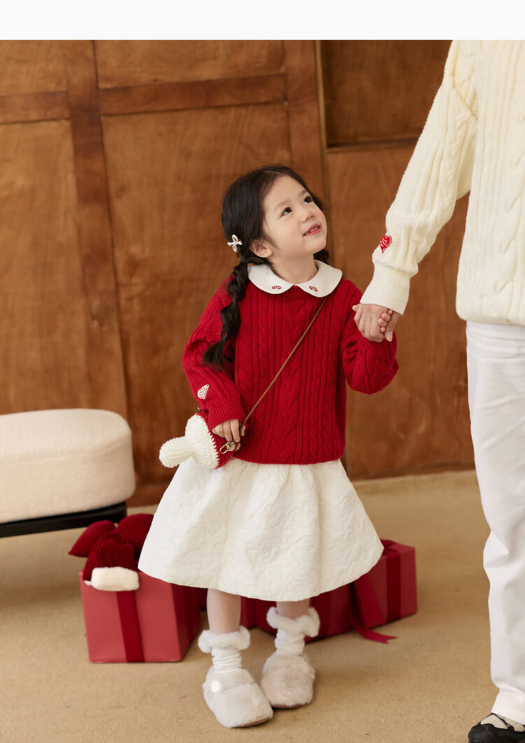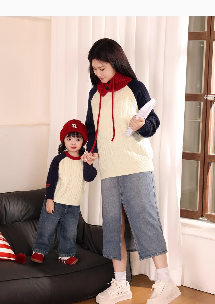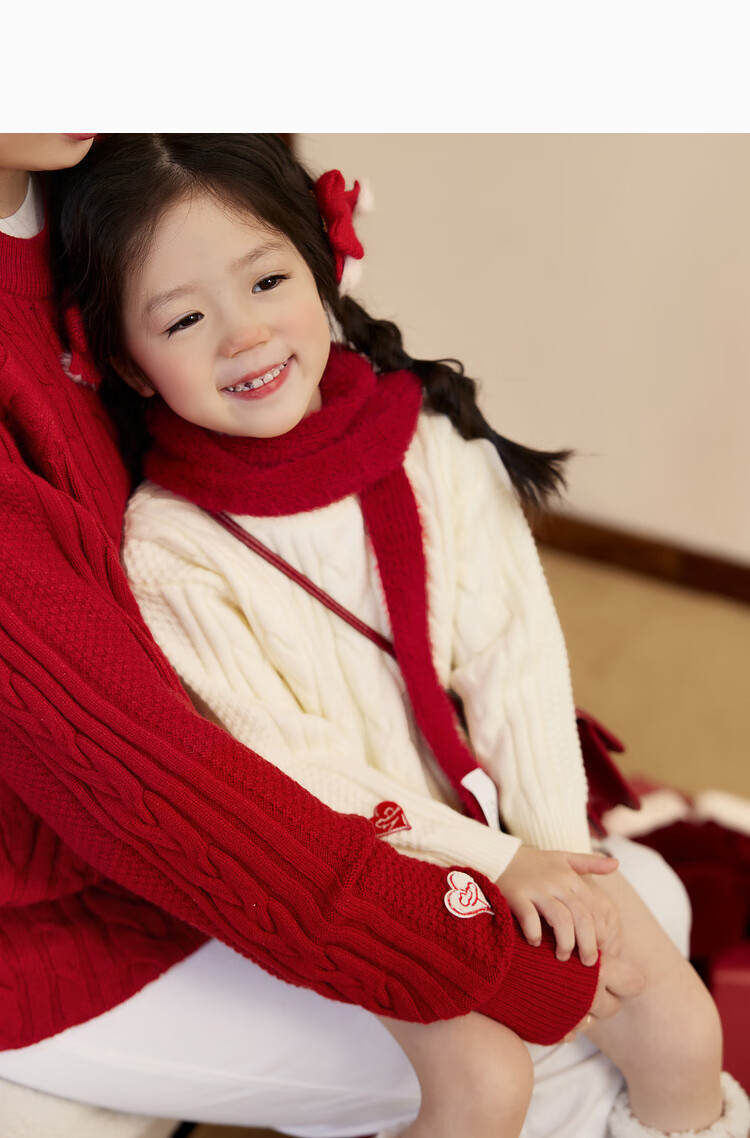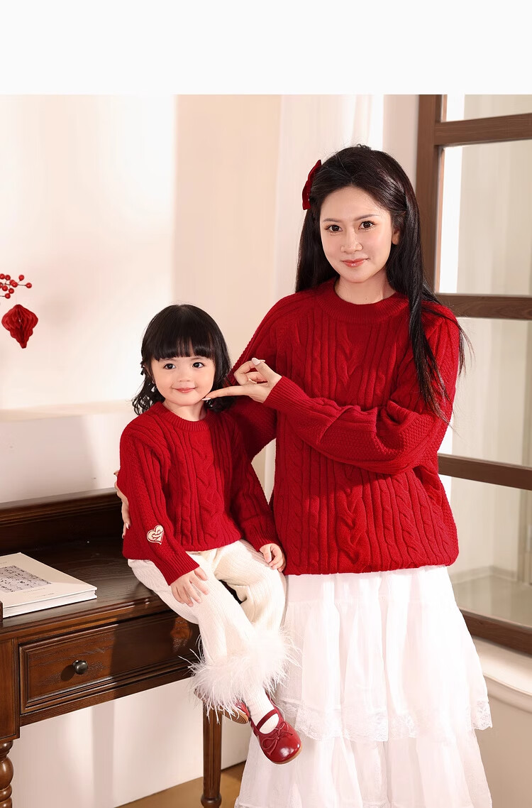 LUSON Boys' Sweater Parent-Child Wear Autumn and Winter 2026 New Children's New Year Red Sweater New Year Red Adult Style 170 Adult Style M