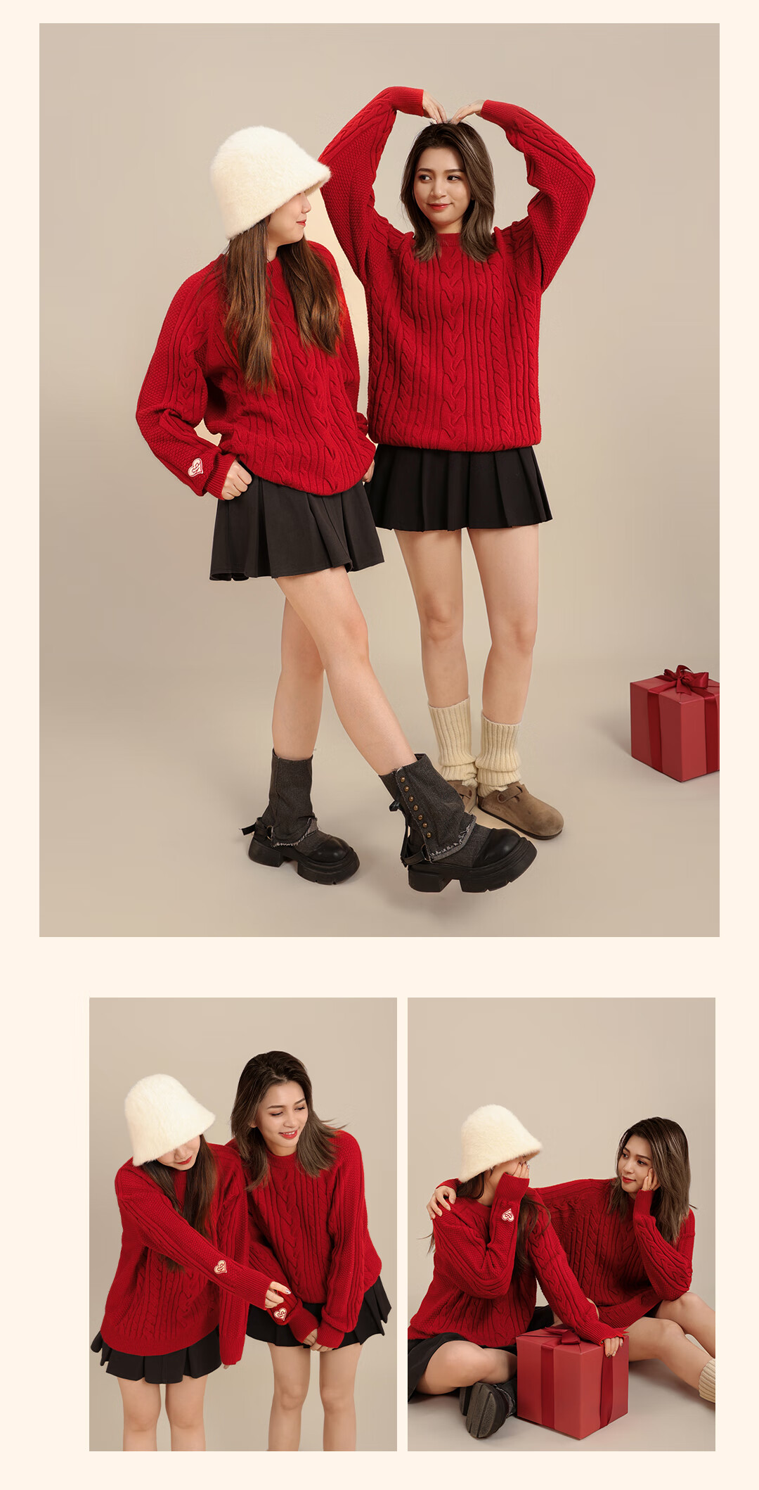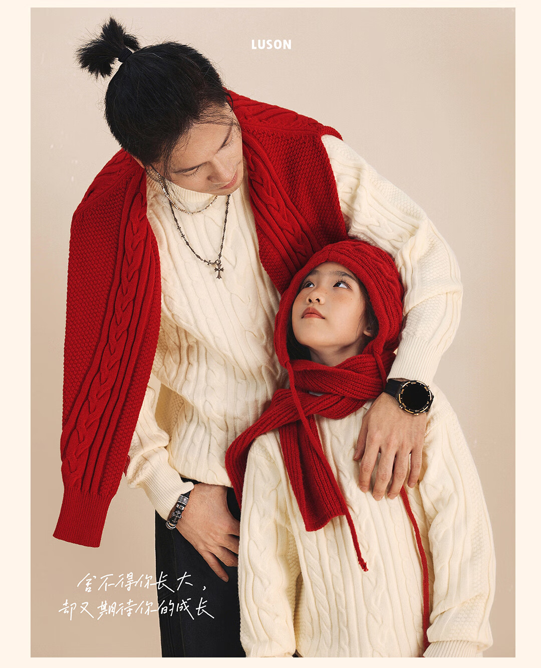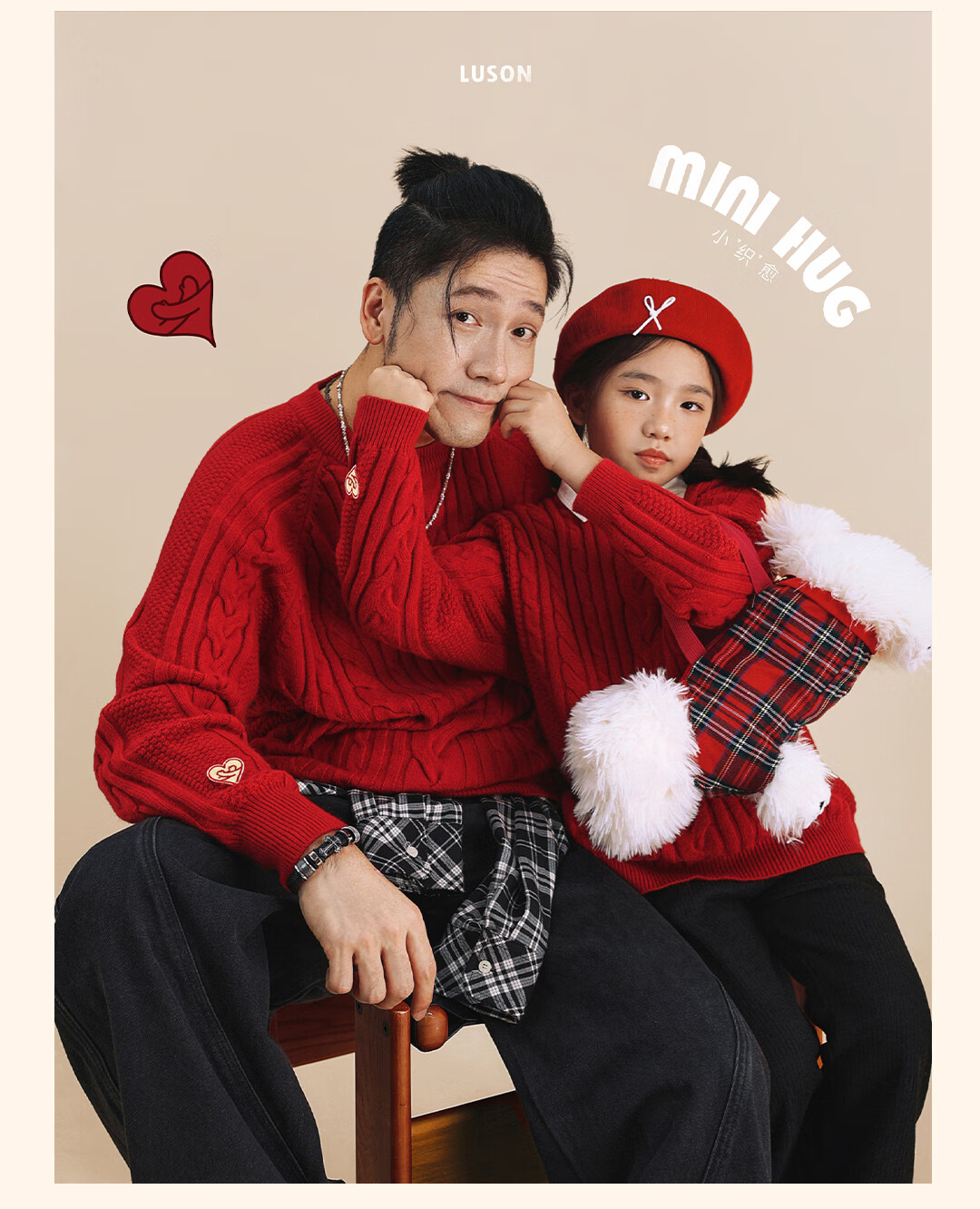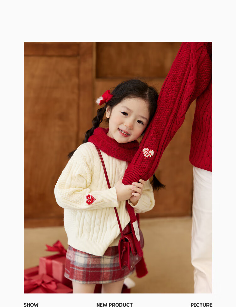LUSON Boys' Sweater Parent-Child Wear Autumn and Winter 2026 New Children's New Year Red Sweater New Year Red Adult Style 170 Adult Style M