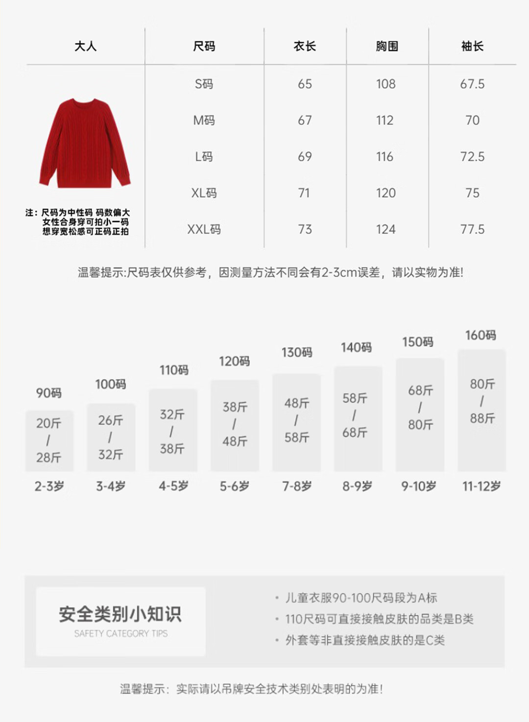 China (cm) 160-165/84-86 165-170 / 88-90 167-172 / 92-96 168-173 / 98-102 170-176 / 106-110