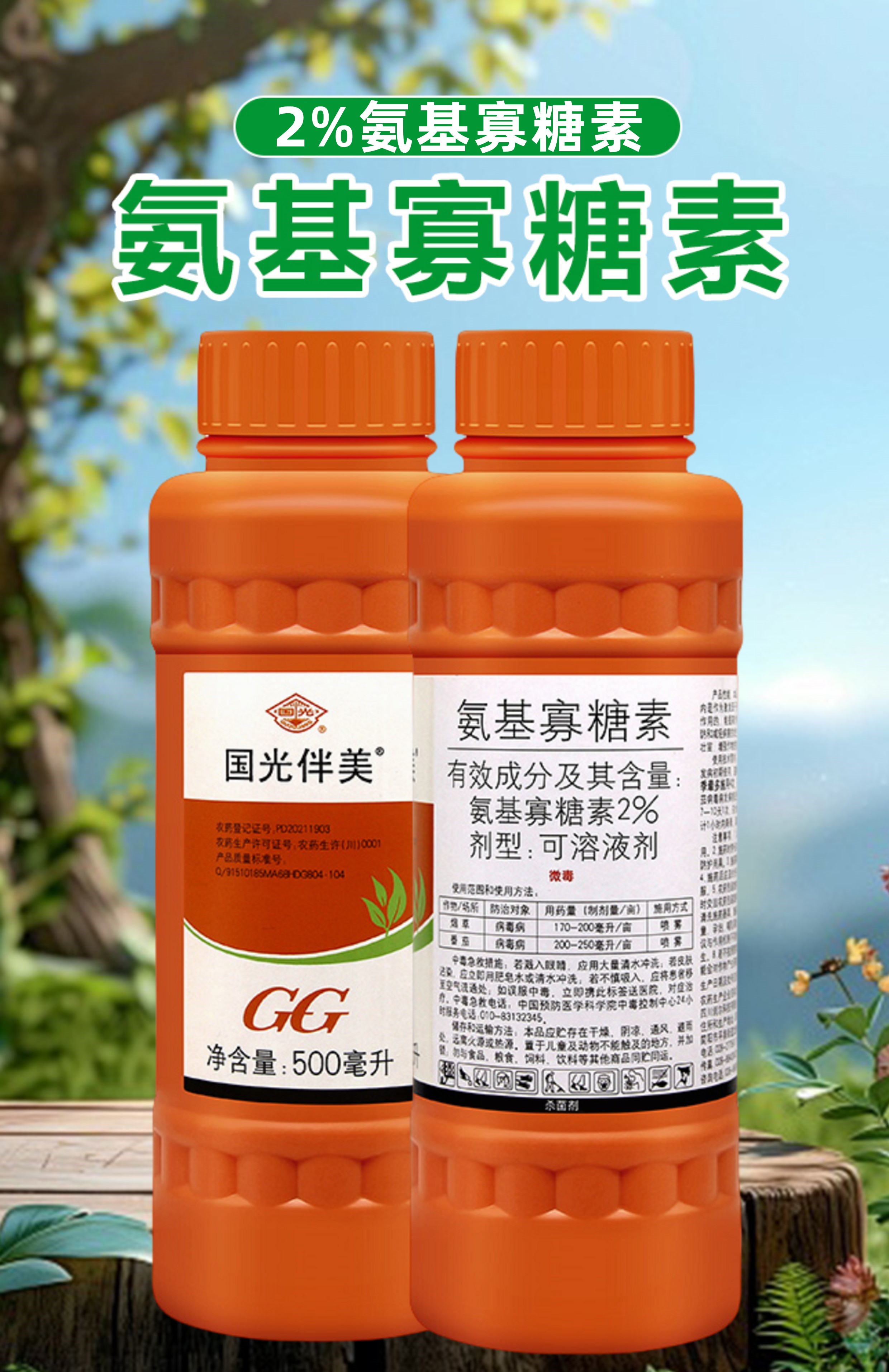 Guoguang Banmei 2% amino oligosaccharide tobacco tomato virus disease yam salvia miltiorrhiza notoginseng disease pesticide fungicide 500ml*2 bottles