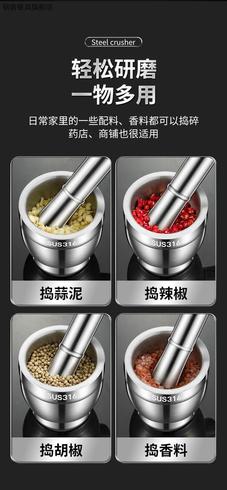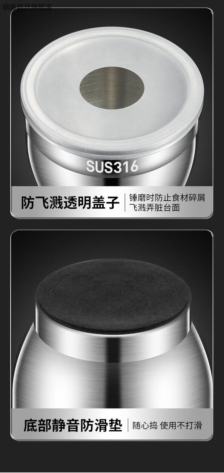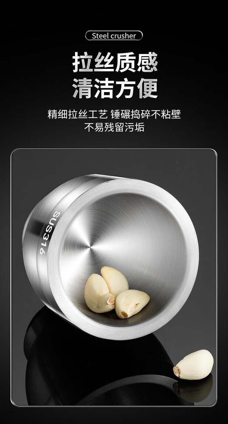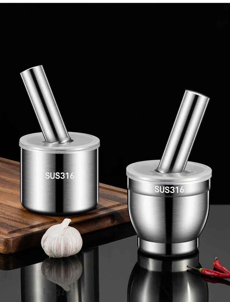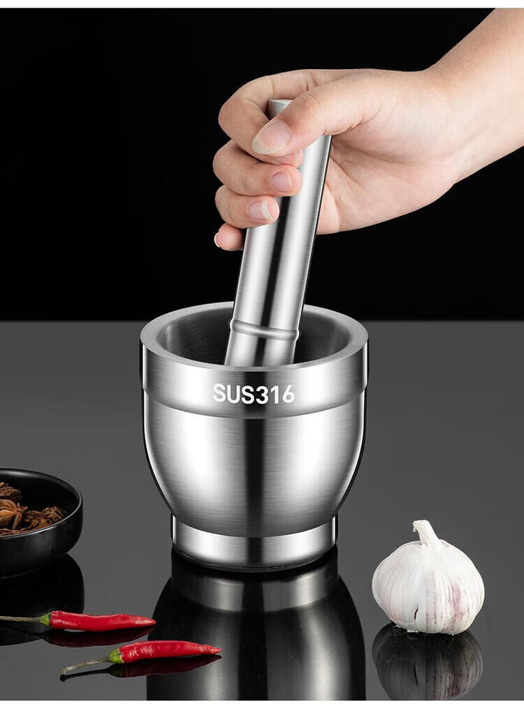 Shili 316 stainless steel garlic pounder medicine grinder stone mortar mashing jar mortar garlic mortar 316 stainless steel straight 10CM garlic pounder bottom