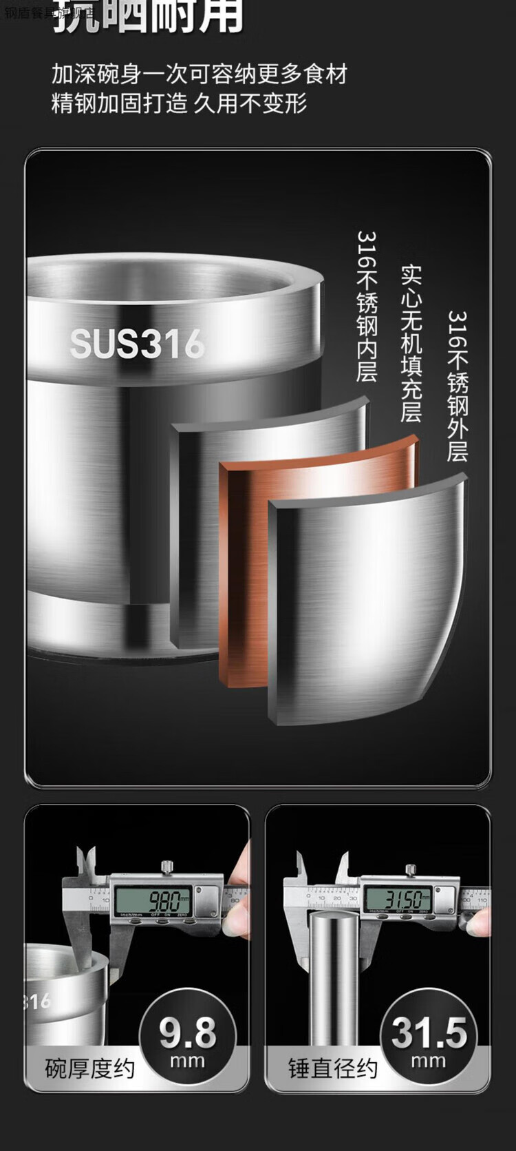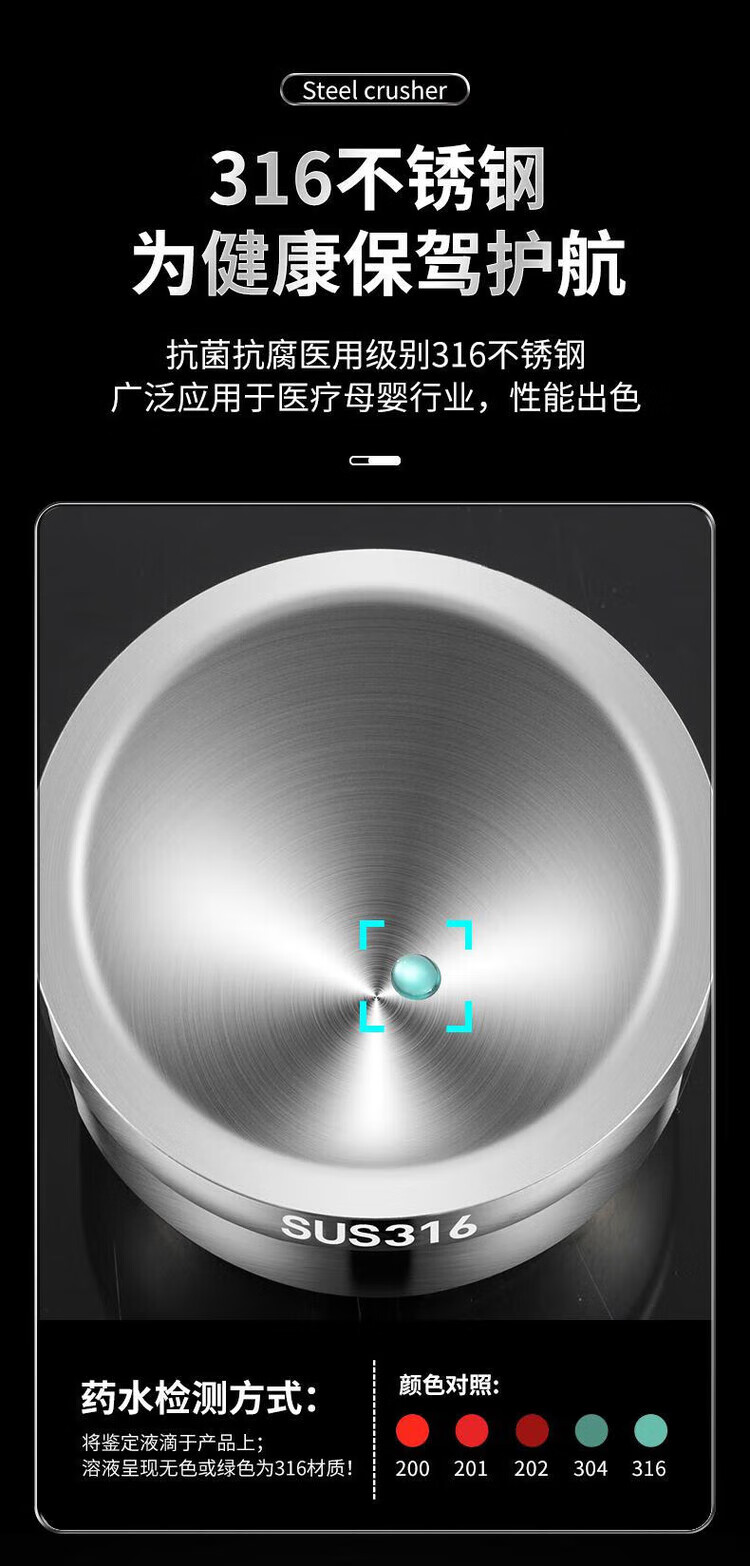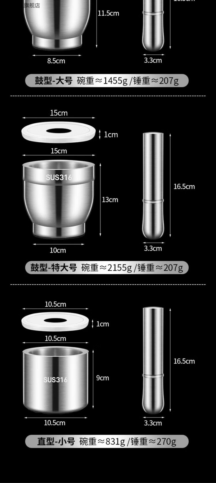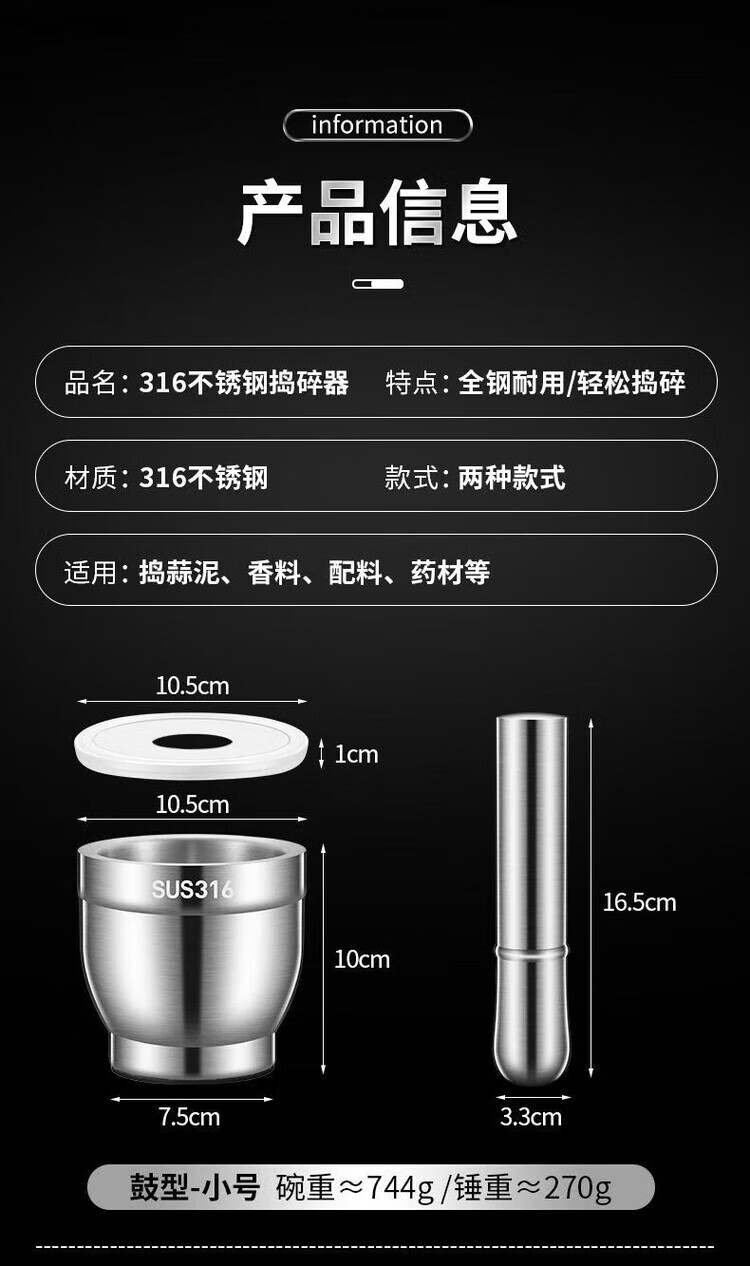 Shili 316 stainless steel garlic pounder medicine grinder stone mortar mashing jar mortar garlic mortar 316 stainless steel straight 10CM garlic pounder bottom