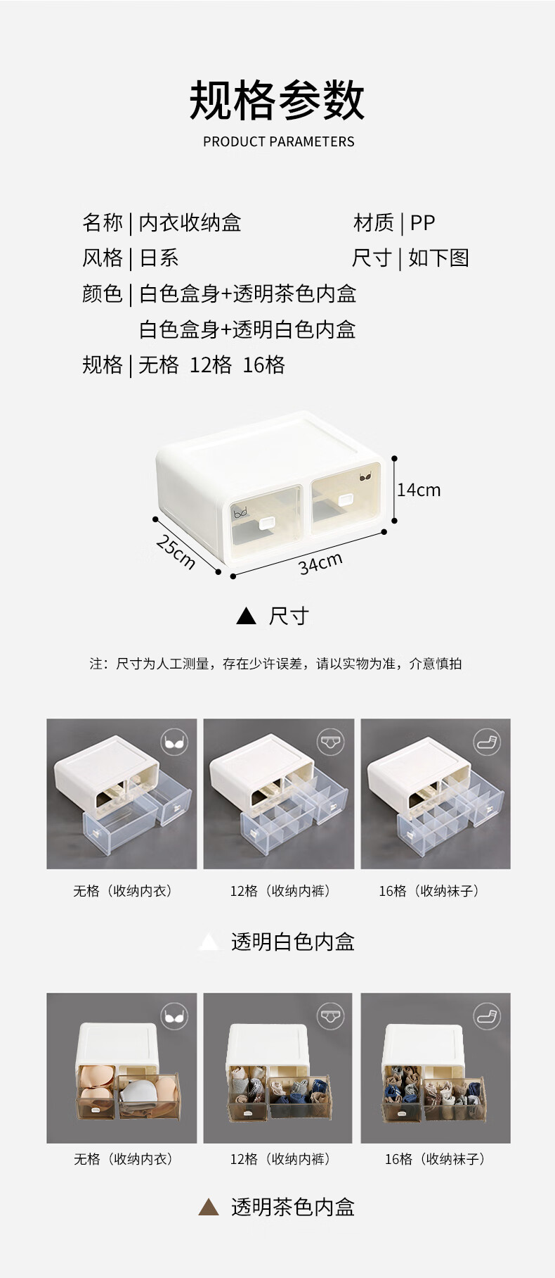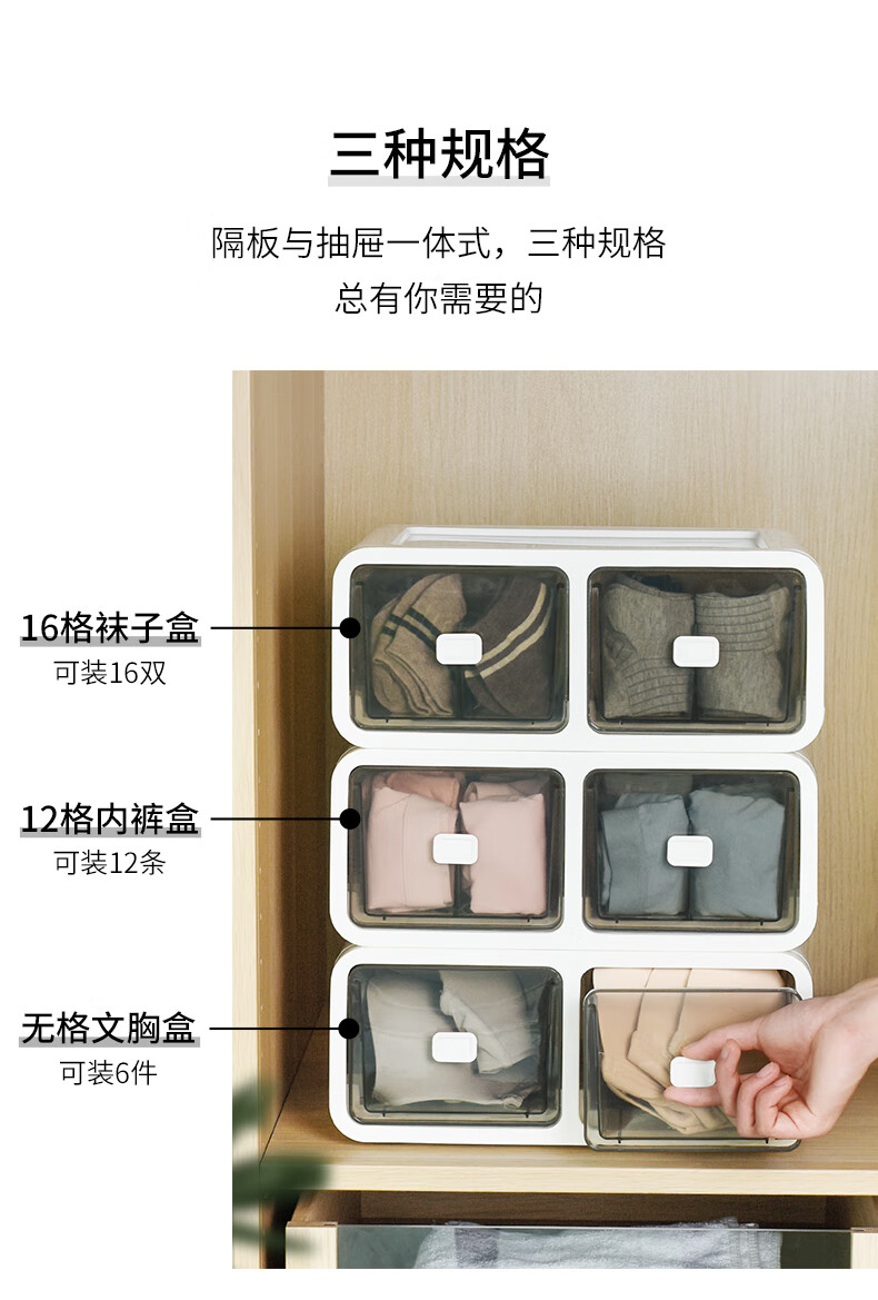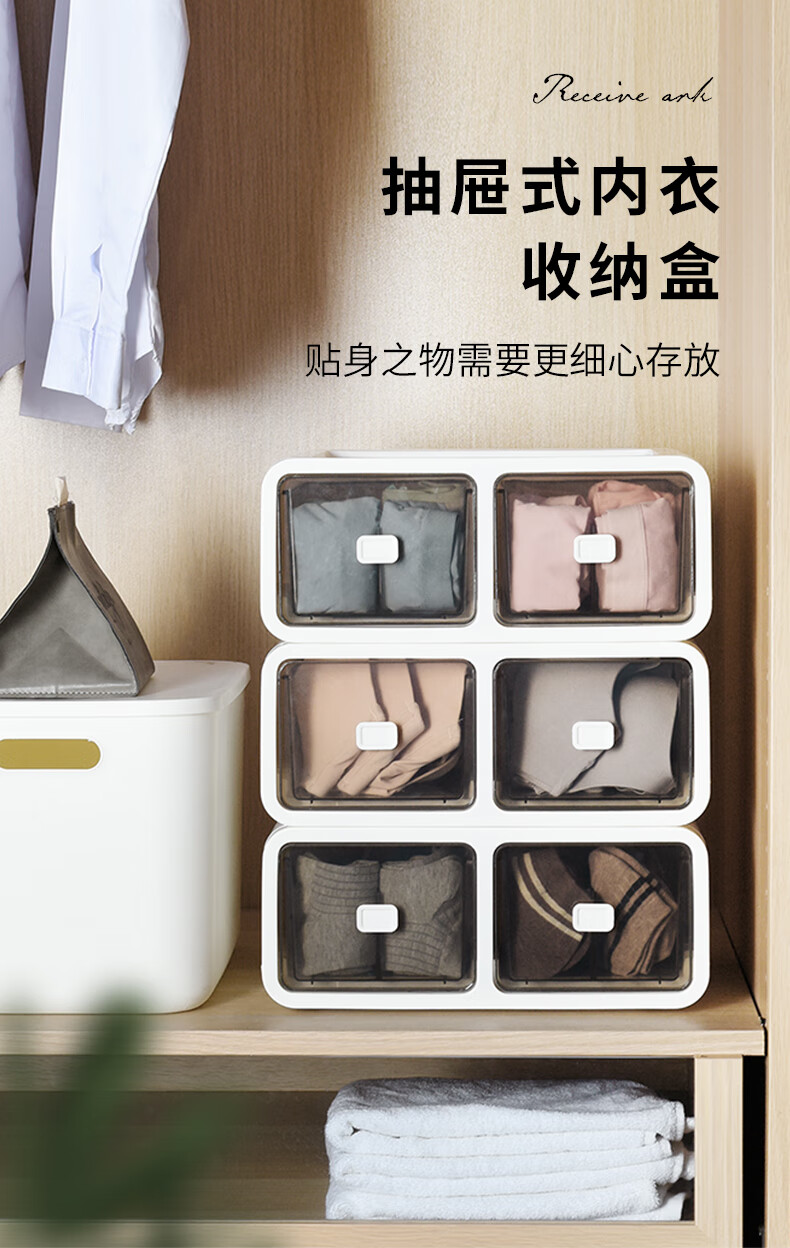 Bantang Jinse underwear storage box underwear storage box underwear socks storage box three-in-one bra drawer type household storage compartments white huge cost-effective three-piece set