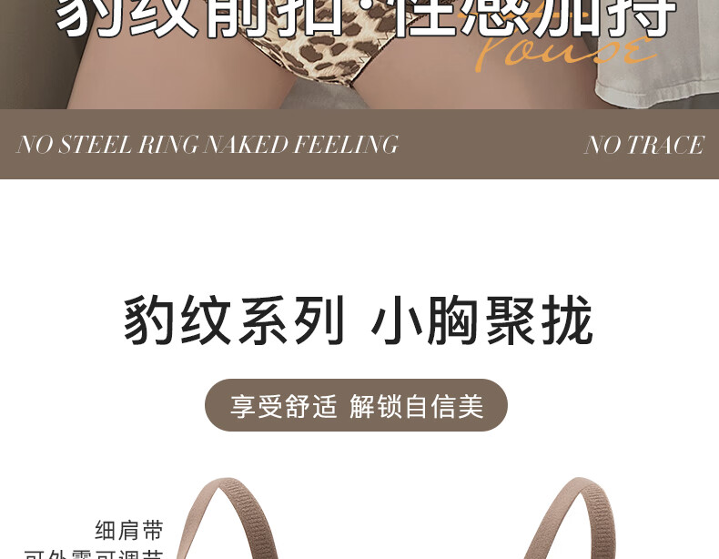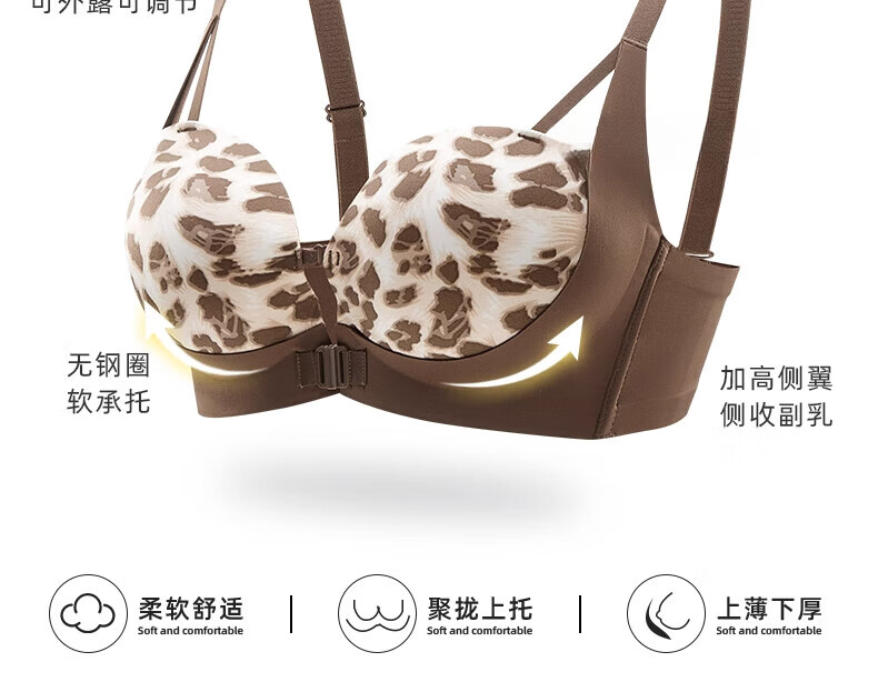 LangSha Sexy Leopard Print Seamless Front Button Underwear Women's Push Up Thickened Small Bra No Wire Ring Side Breast Reducing Bra Set Leopard Print Set 70A 32