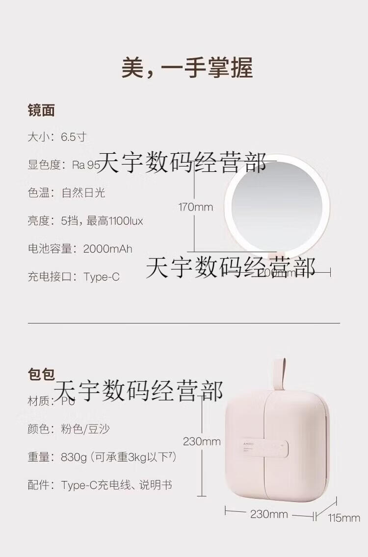 AMIRO bag mirror led lighted makeup mirror portable daylight mirror portable makeup bag makeup mirror pink bag mirror + magnifying mirror + cosmetic bag +