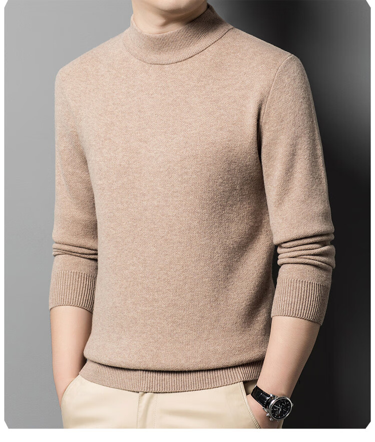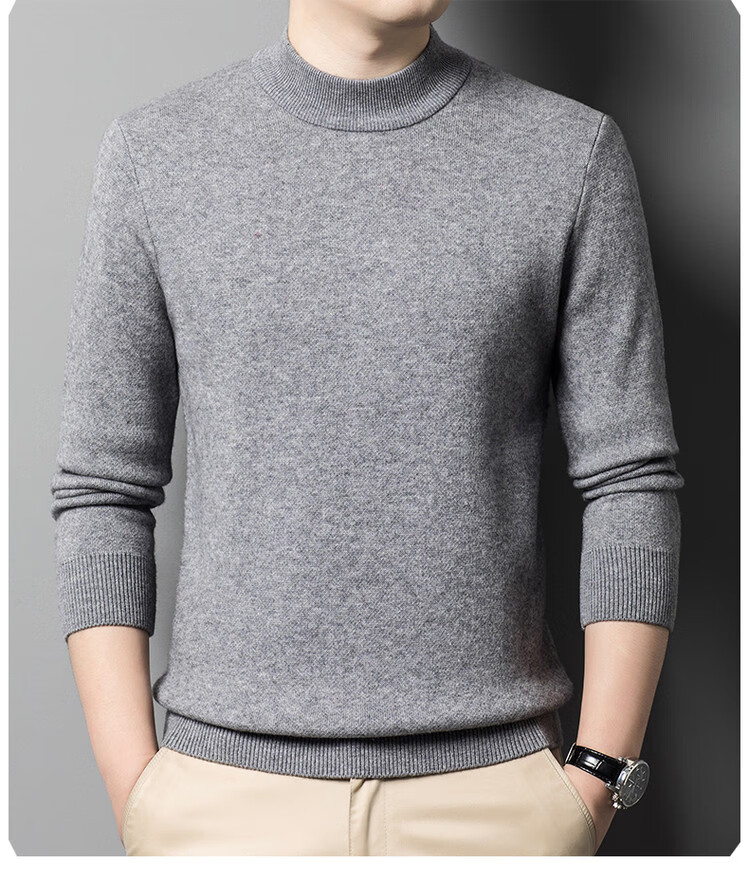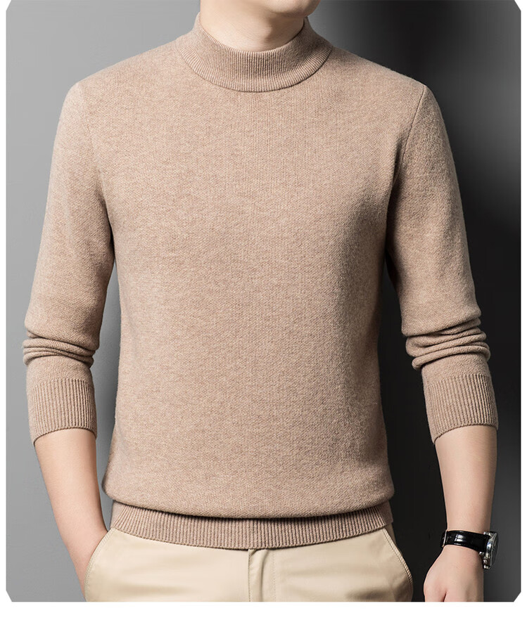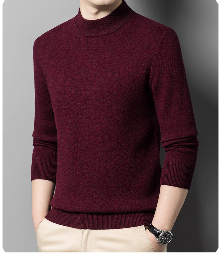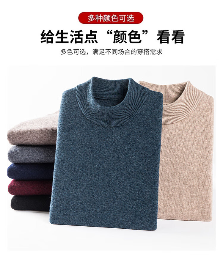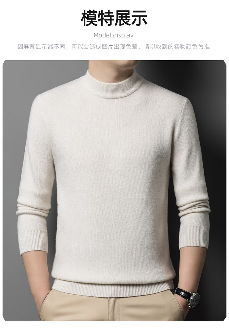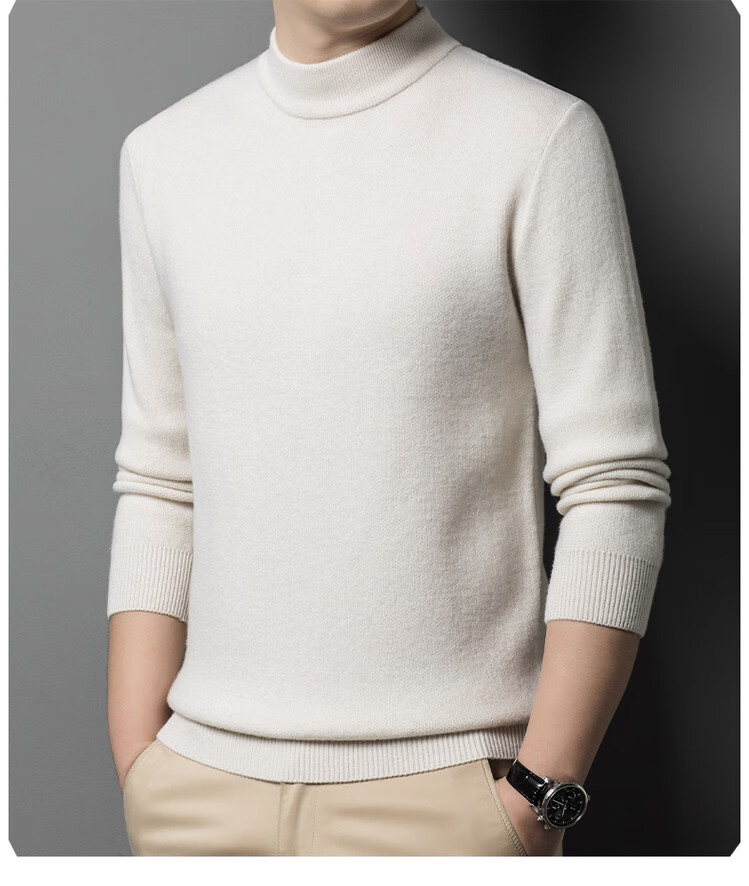 Hengyuanxiang 100% pure wool sweater men's half turtleneck sweater men's autumn and winter thickened warm dad sweater bottoming shirt white M