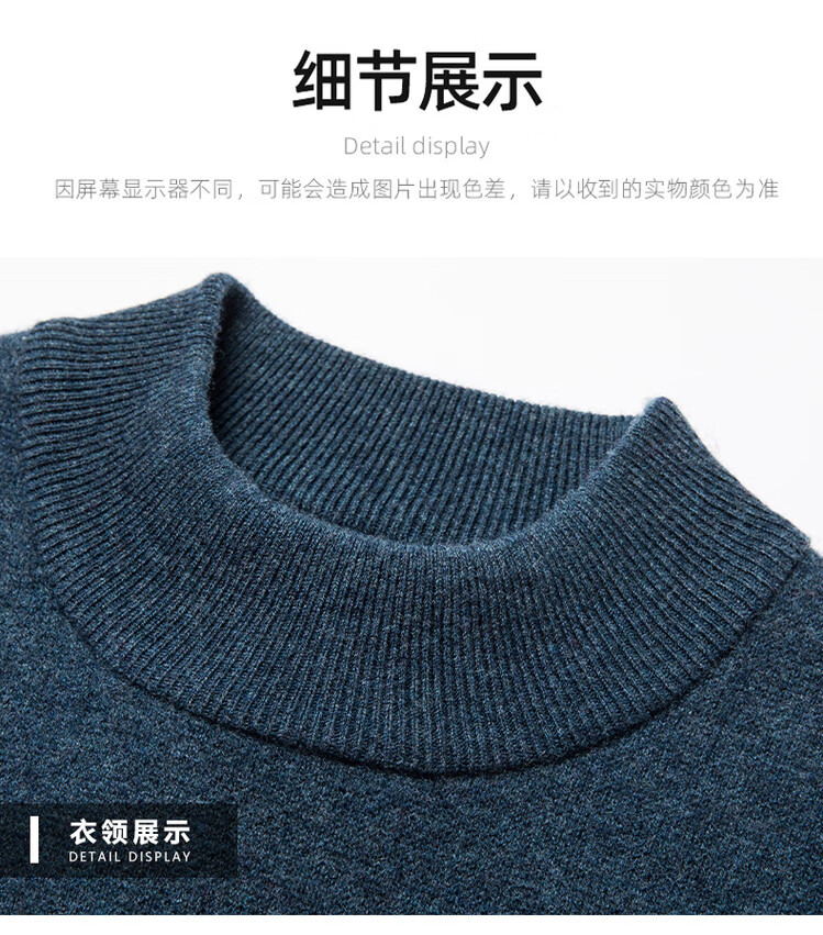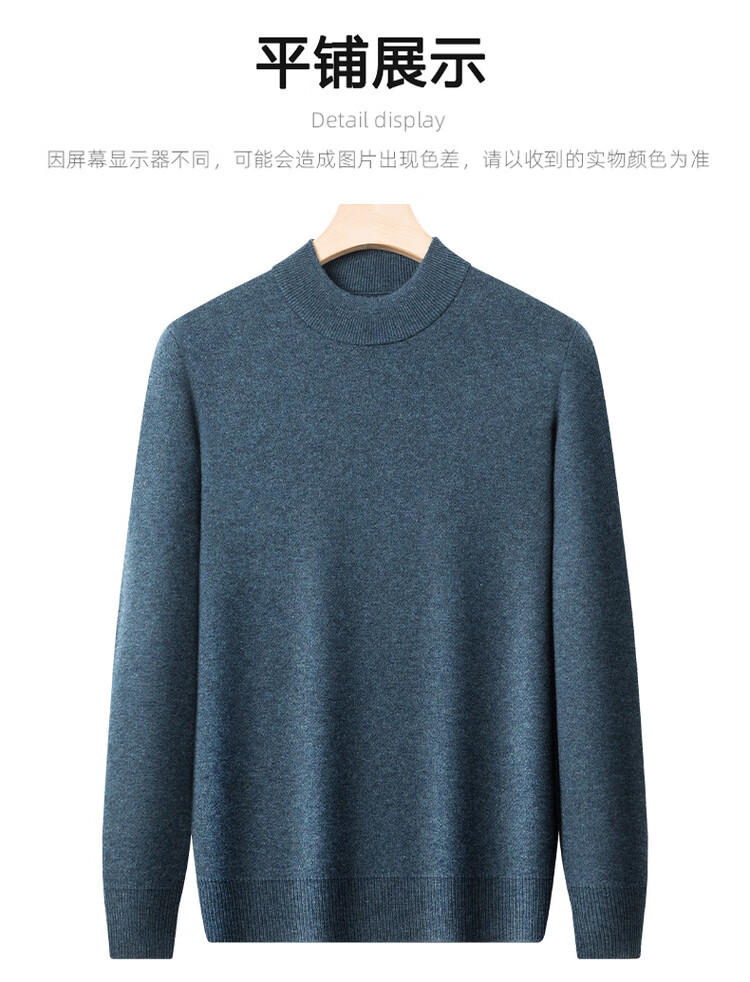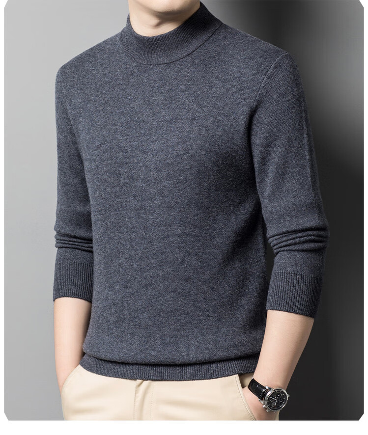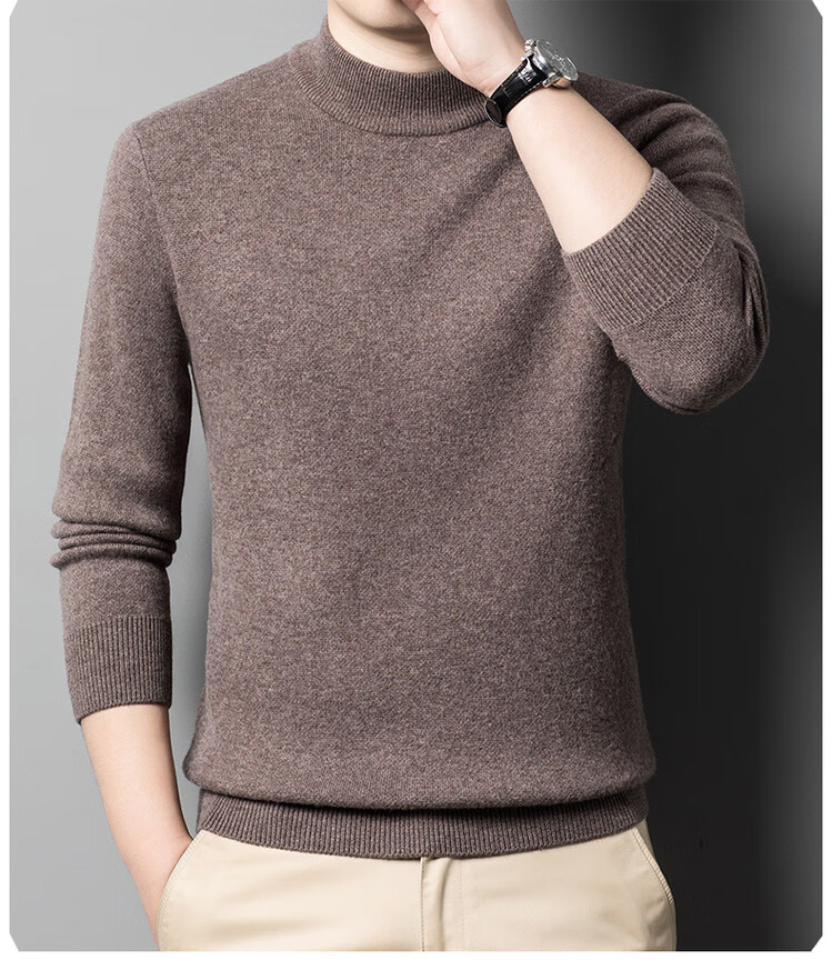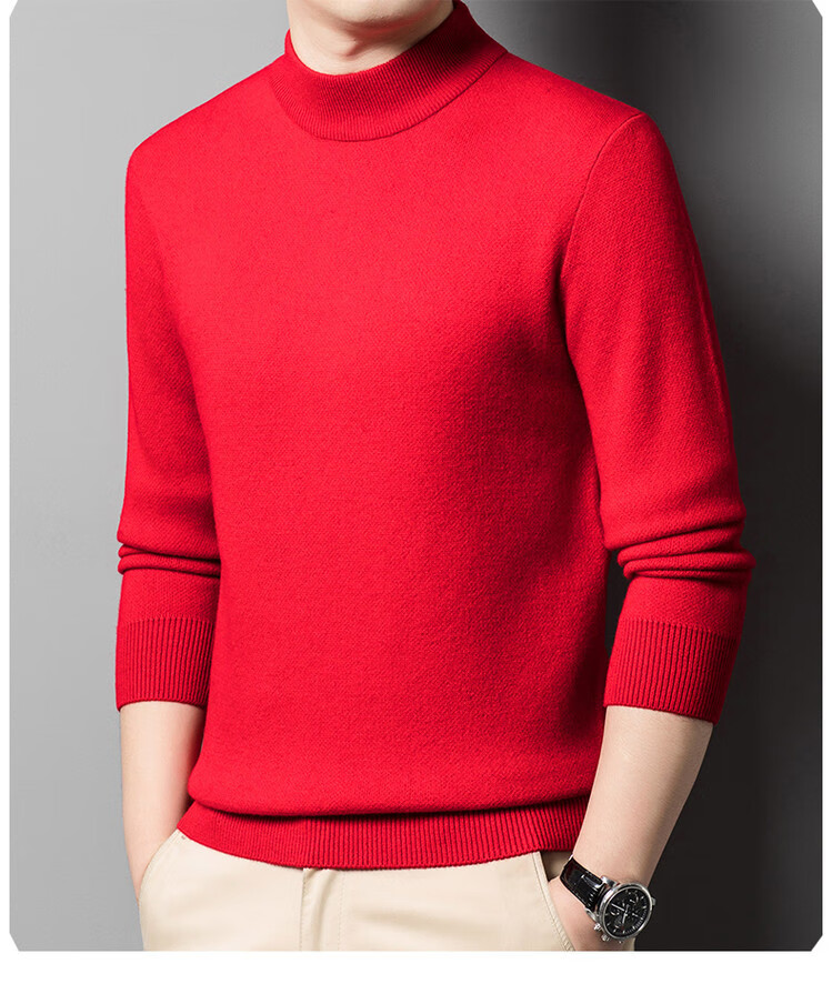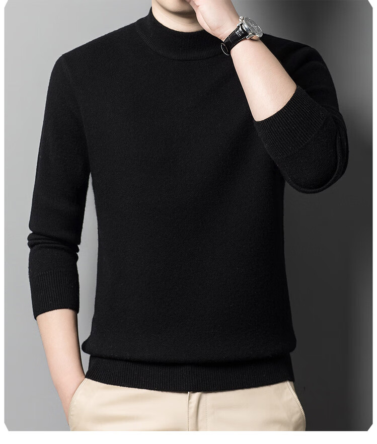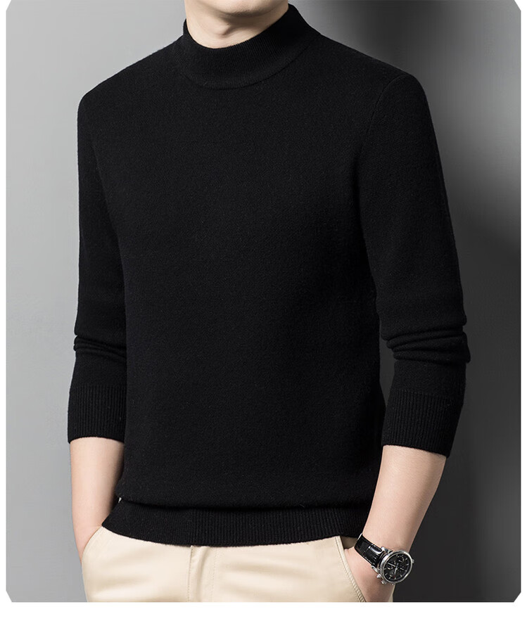 Hengyuanxiang 100% pure wool sweater men's half turtleneck sweater men's autumn and winter thickened warm dad sweater bottoming shirt white M