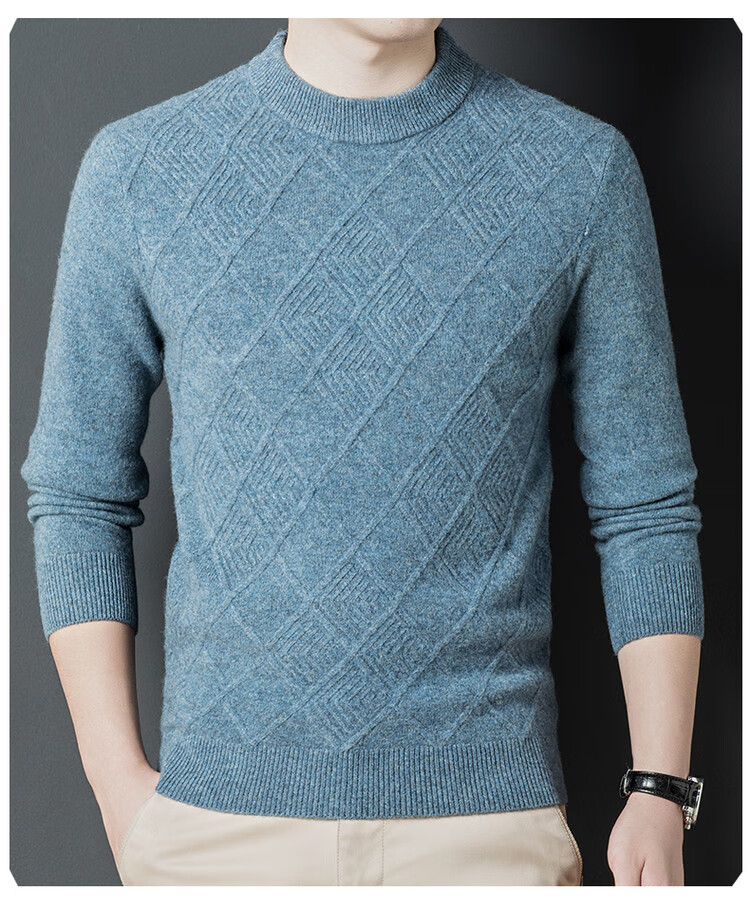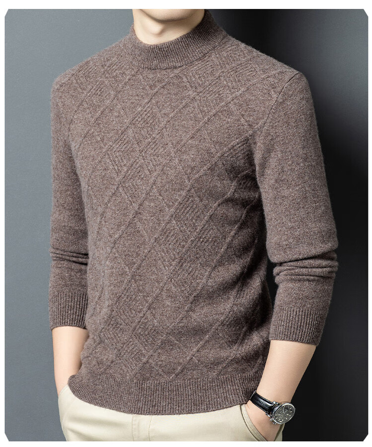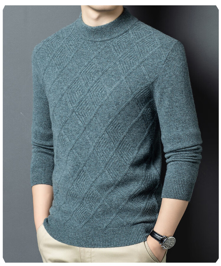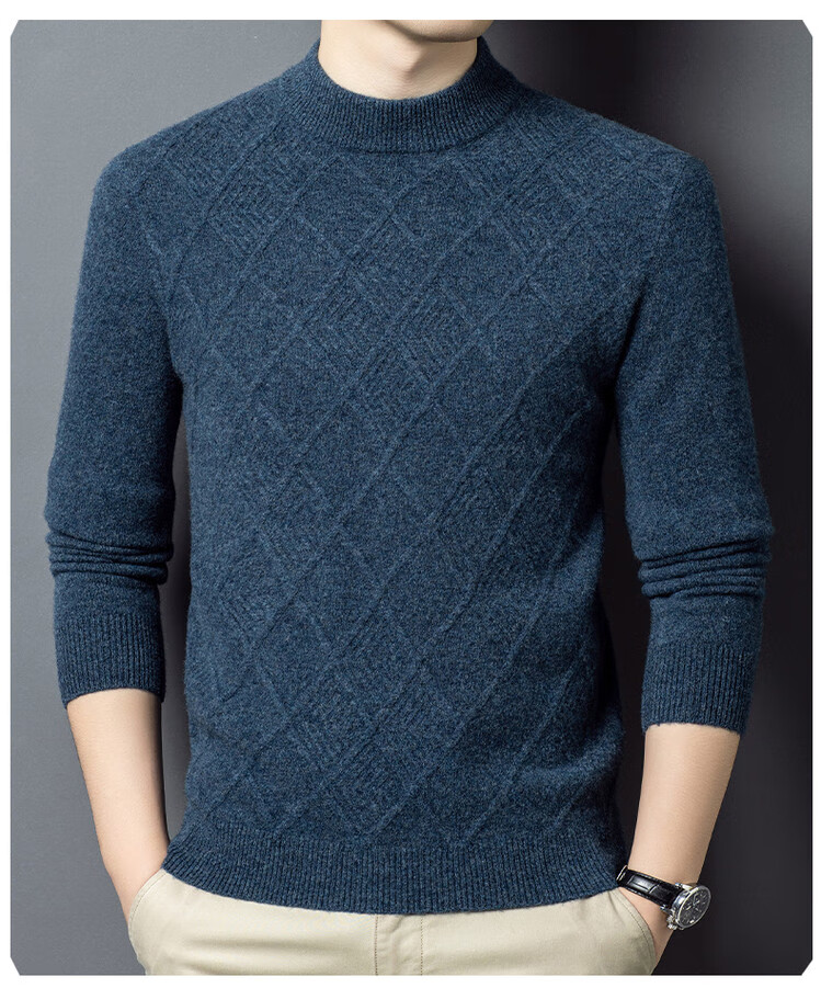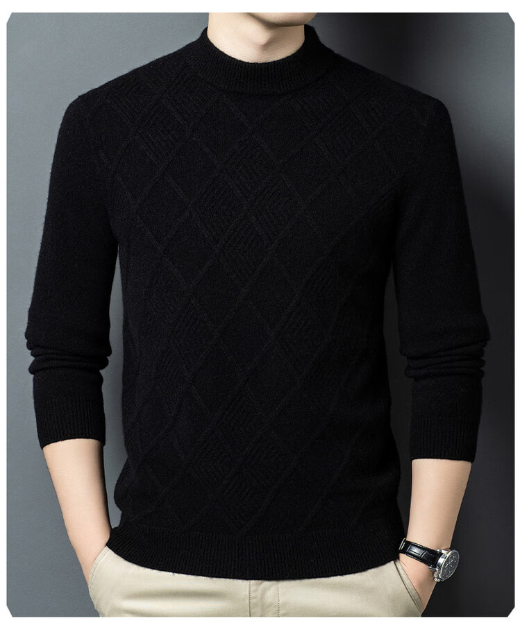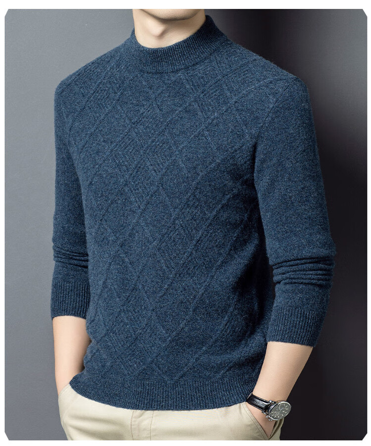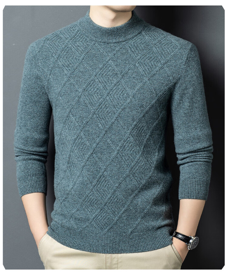 Hengyuanxiang double-ply thickened 100% pure wool sweater men's half turtleneck jacquard sweater men's winter thickened warm base shirt Huacailan M