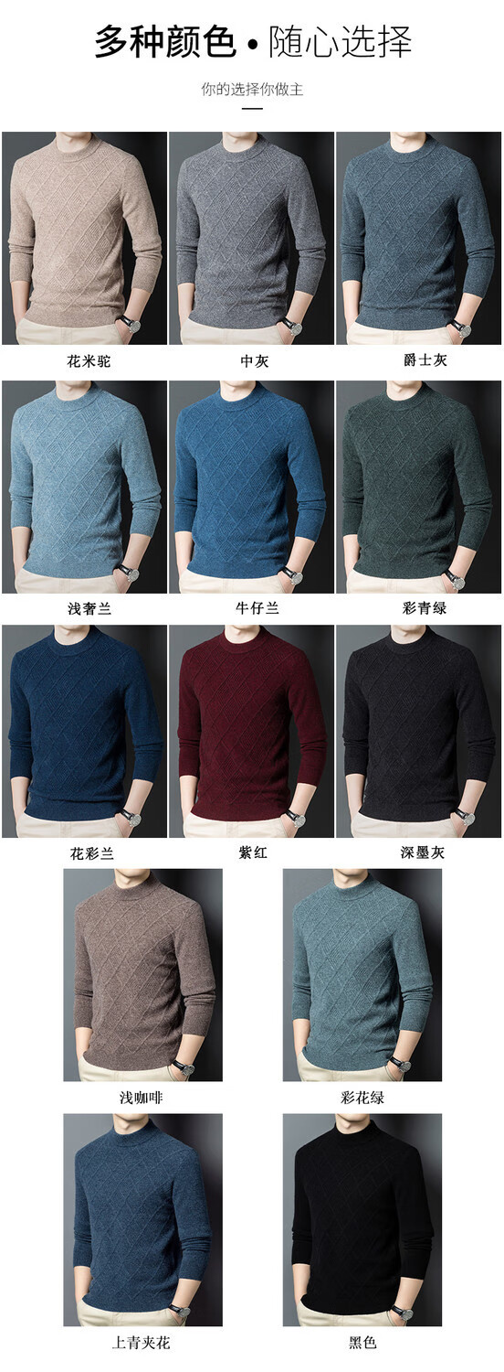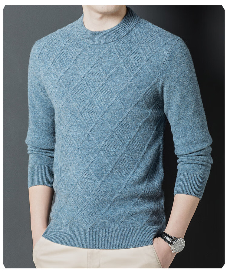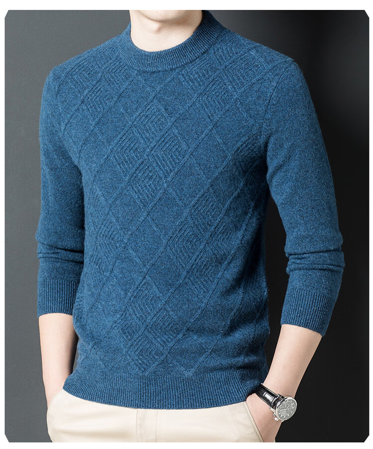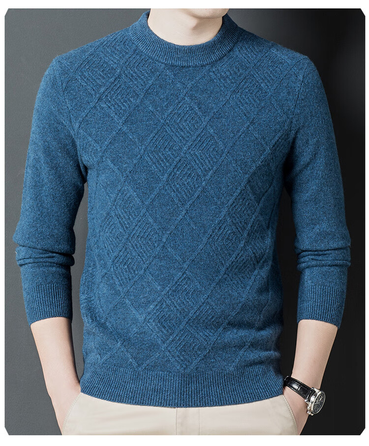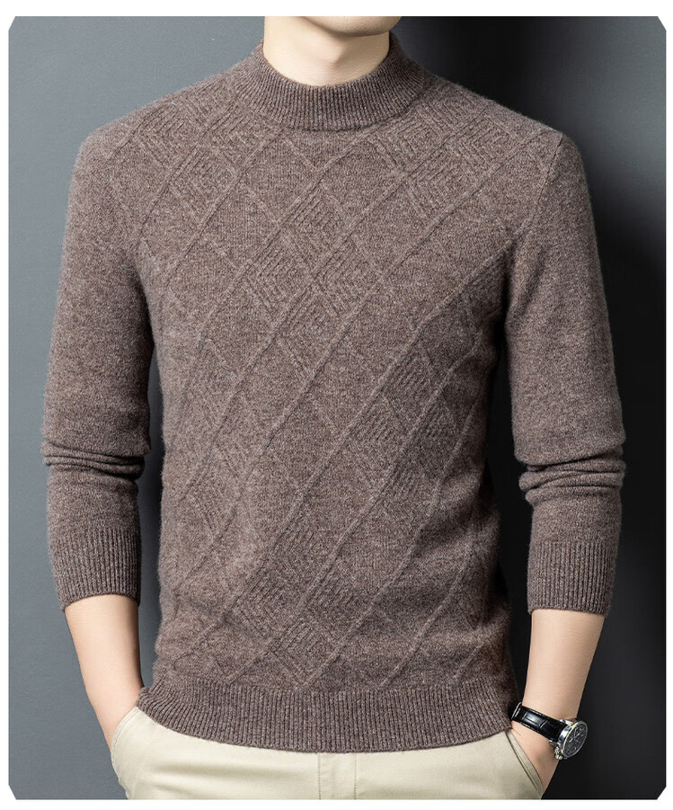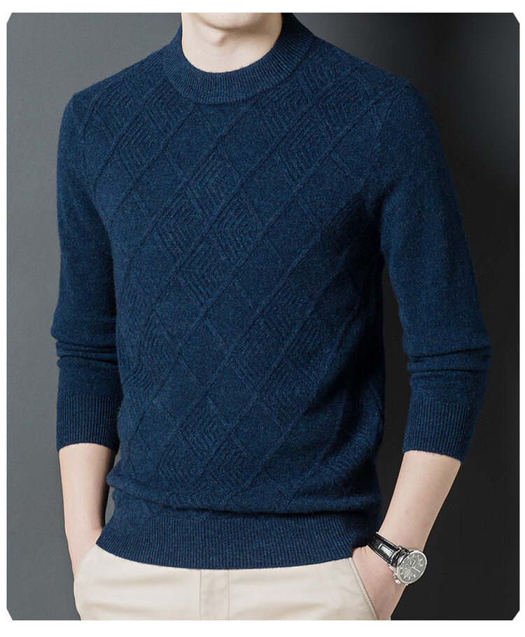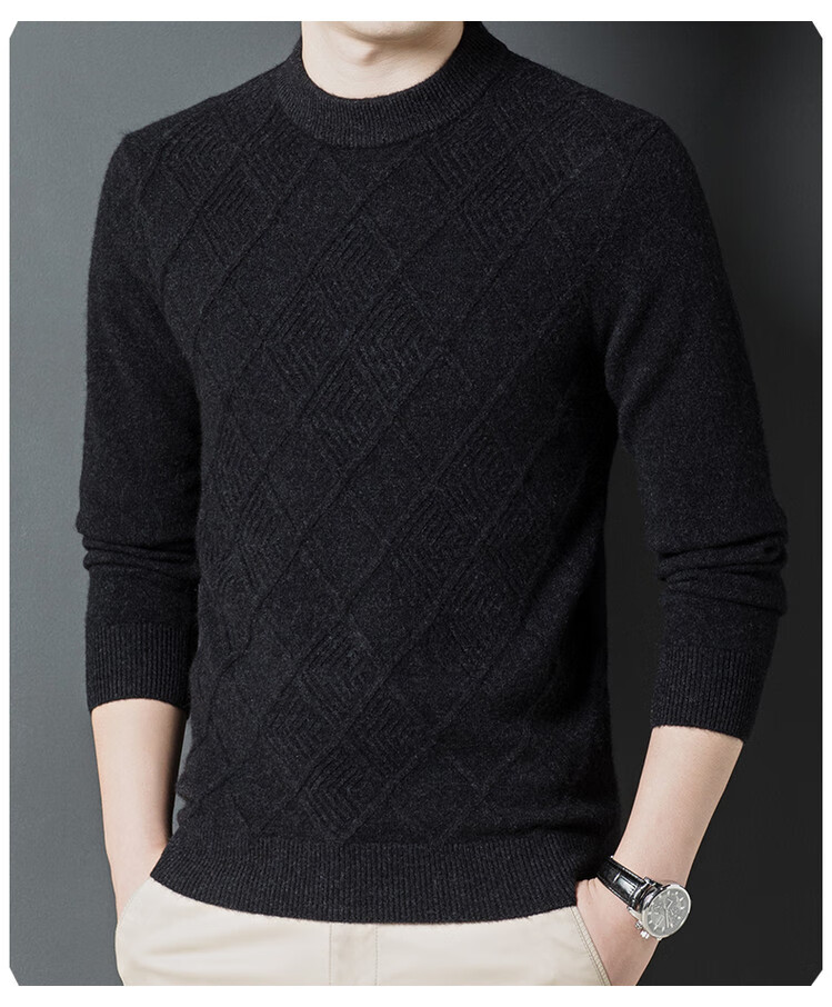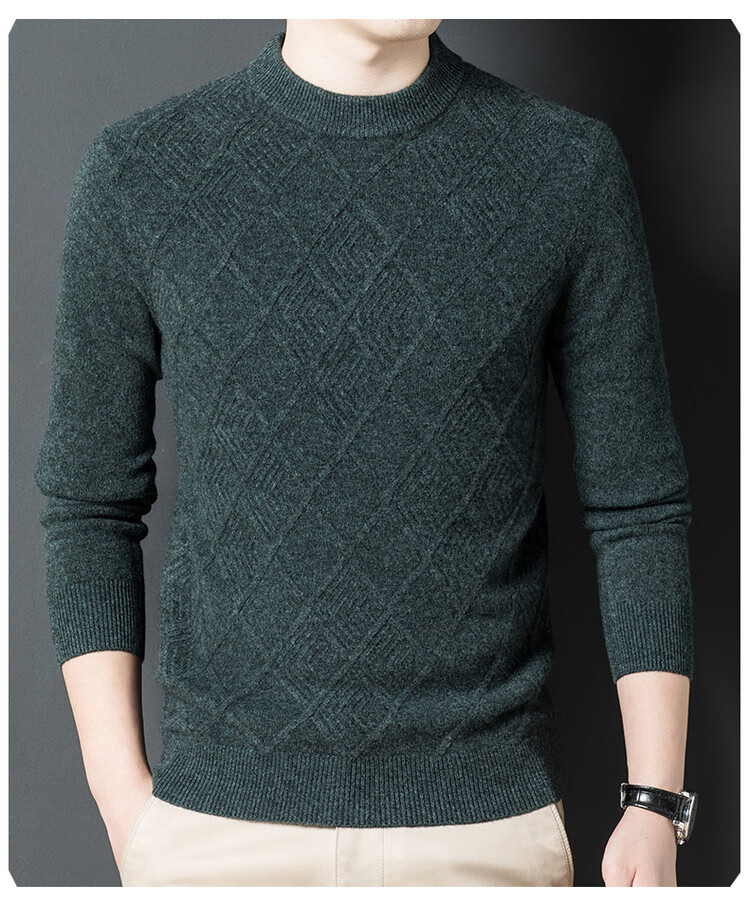 Hengyuanxiang double-ply thickened 100% pure wool sweater men's half turtleneck jacquard sweater men's winter thickened warm base shirt Huacailan M