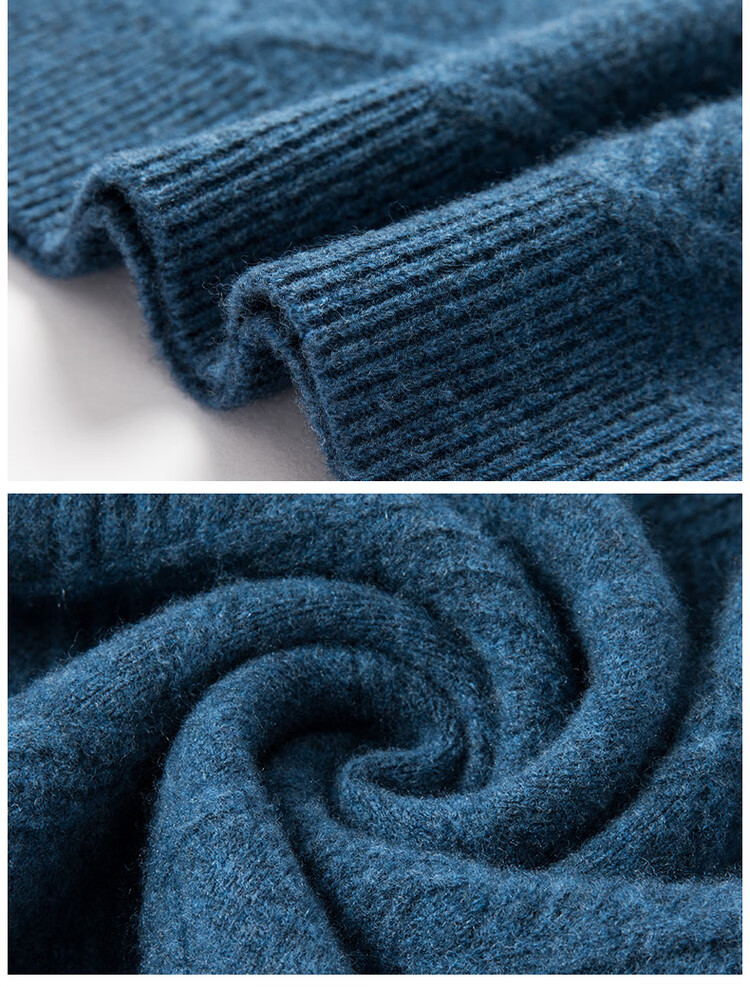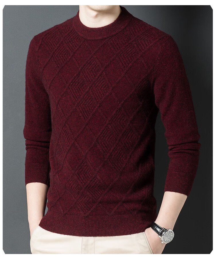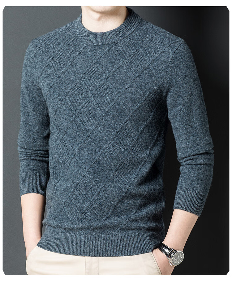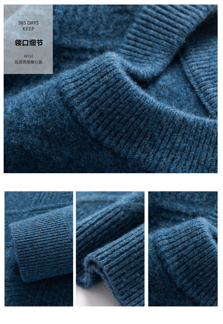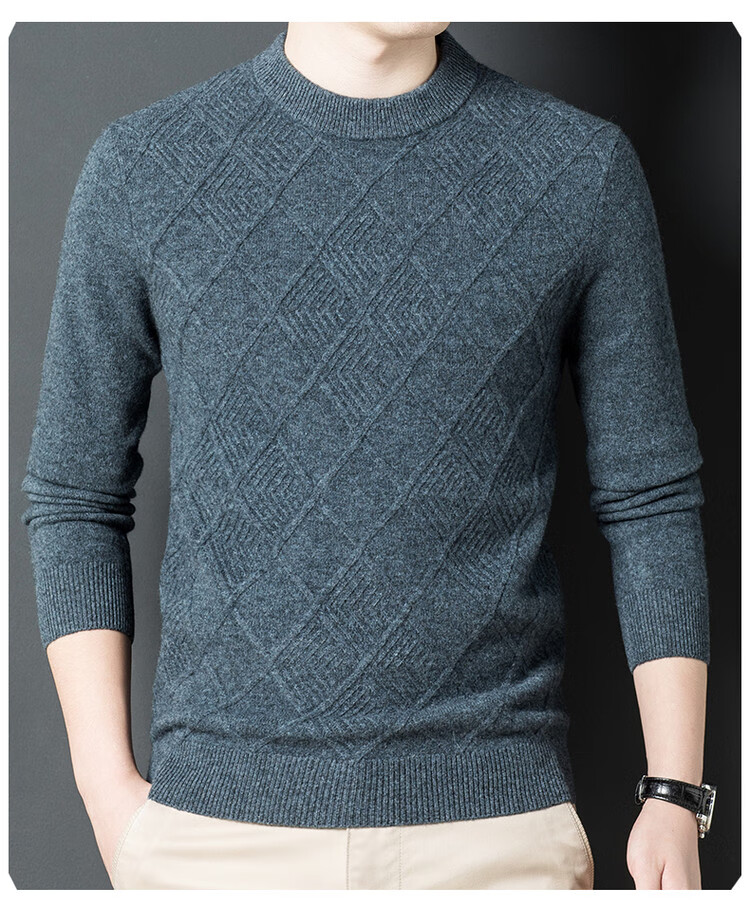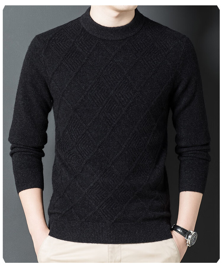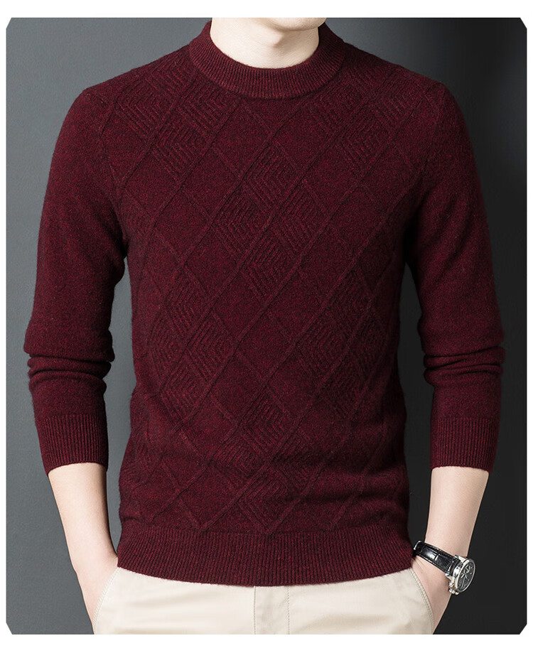 Hengyuanxiang double-ply thickened 100% pure wool sweater men's half turtleneck jacquard sweater men's winter thickened warm base shirt Huacailan M
