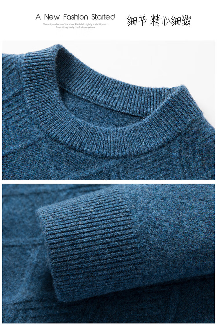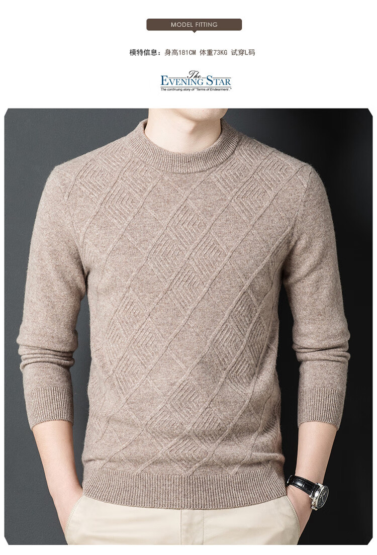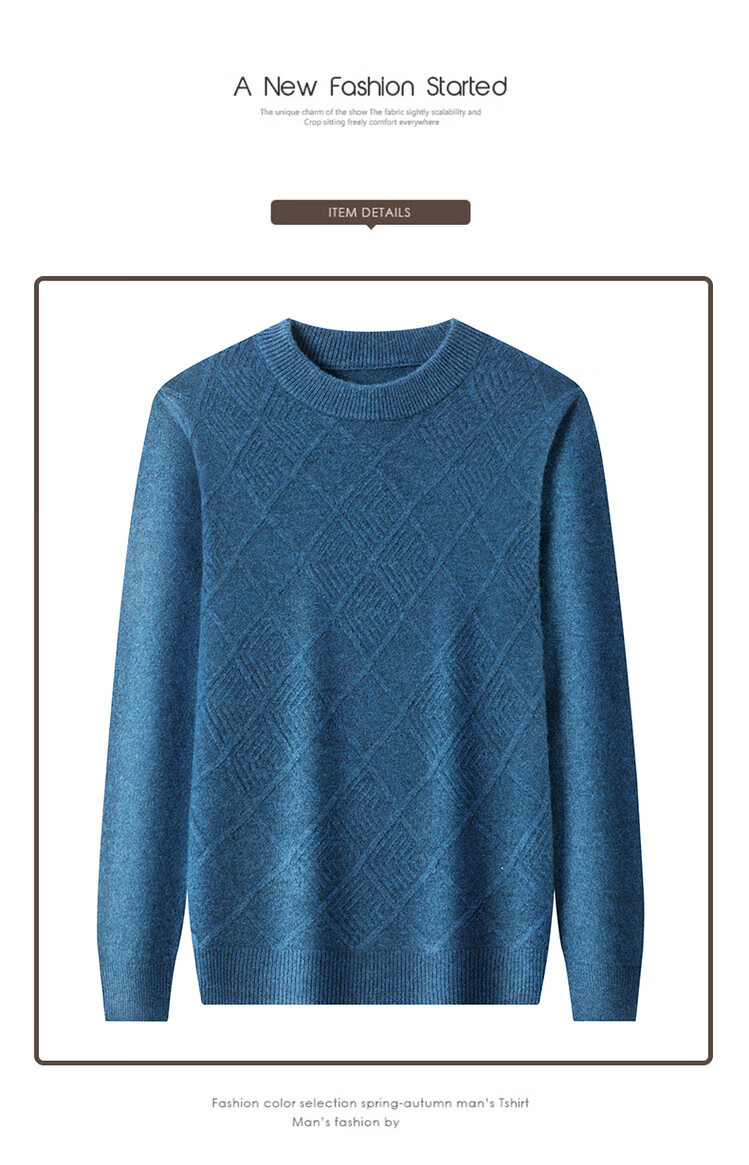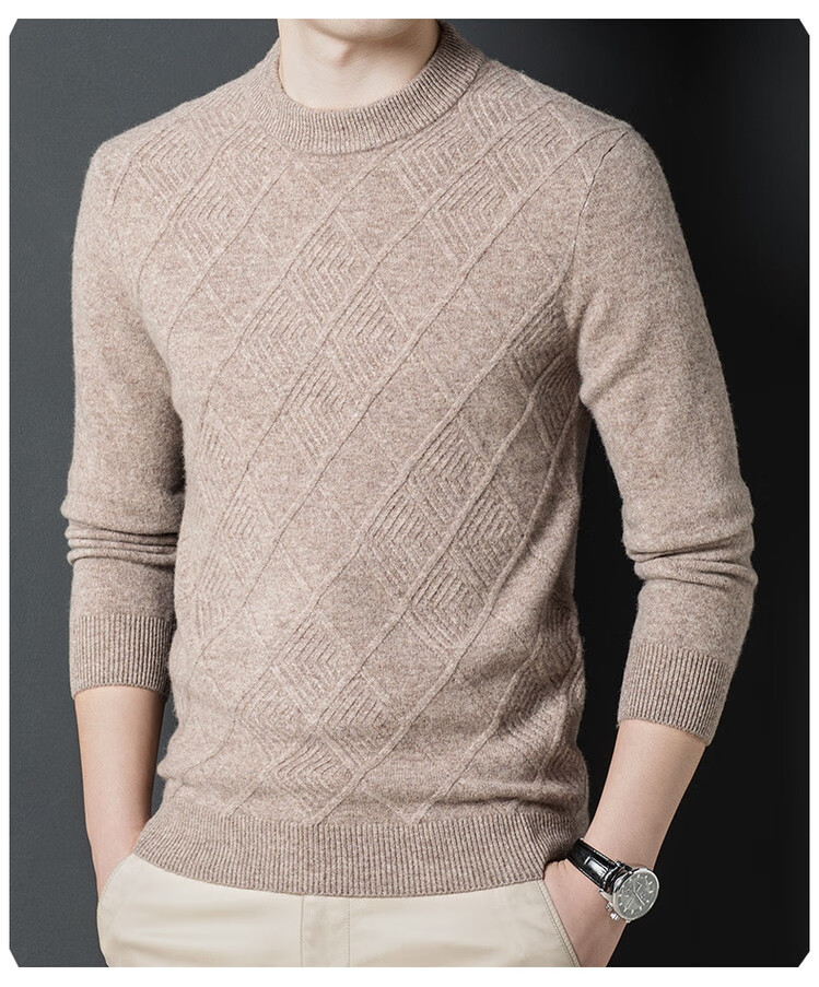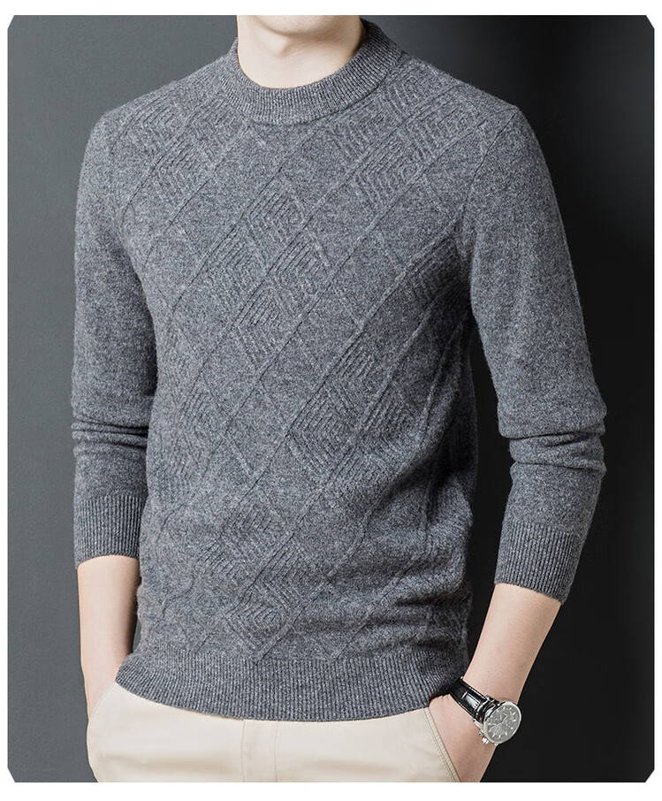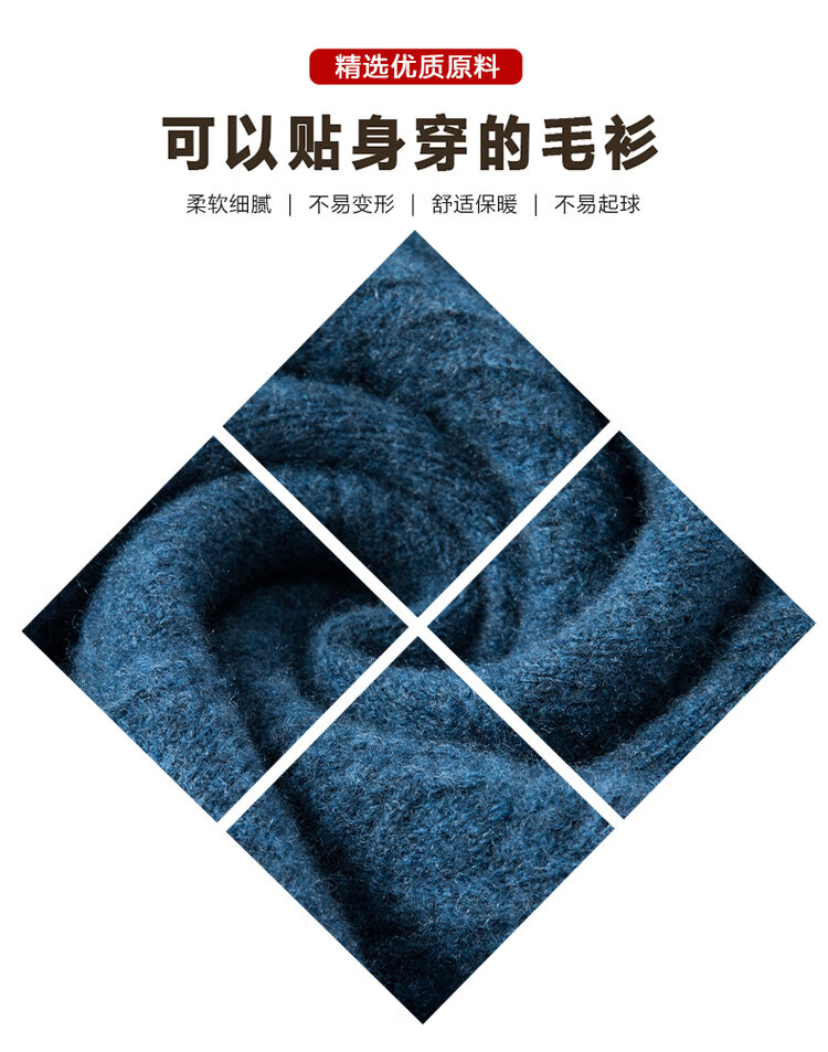 Hengyuanxiang double-ply thickened 100% pure wool sweater men's half turtleneck jacquard sweater men's winter thickened warm base shirt Huacailan M
