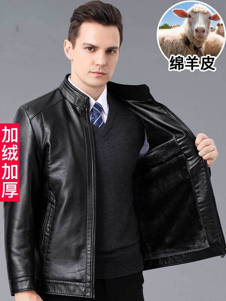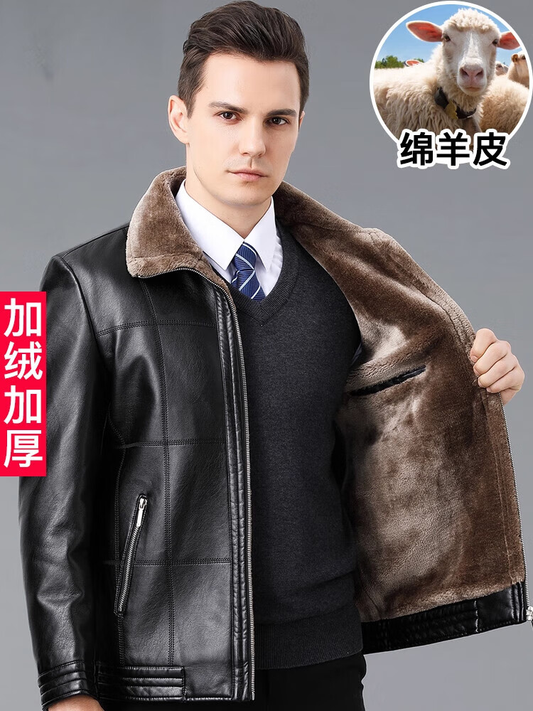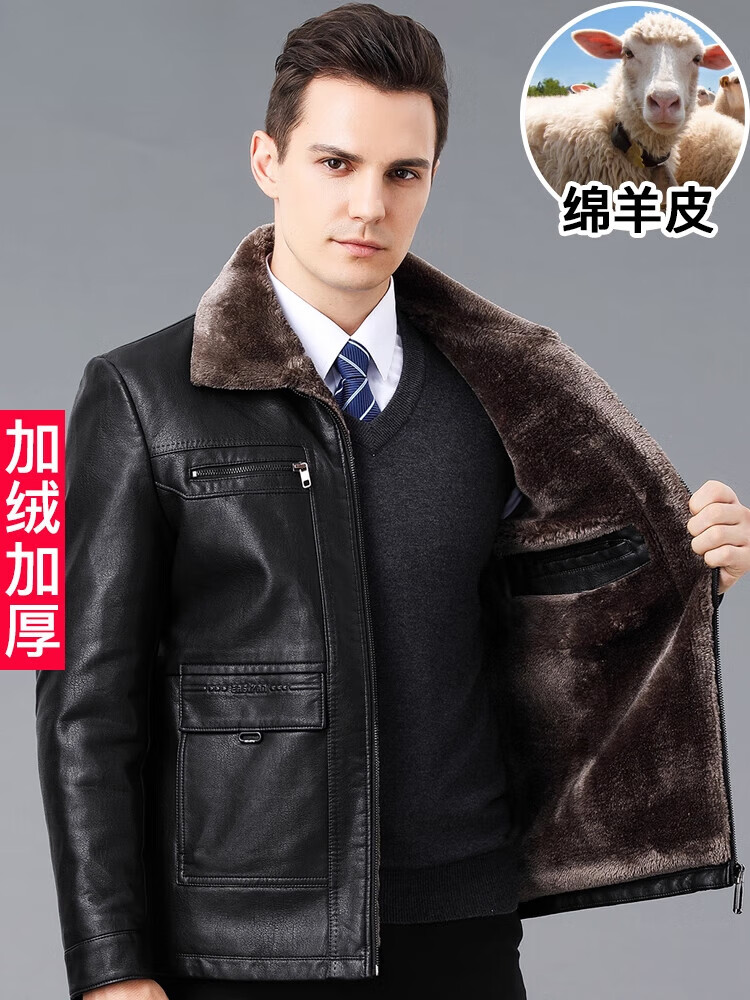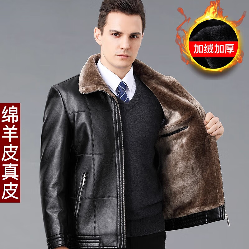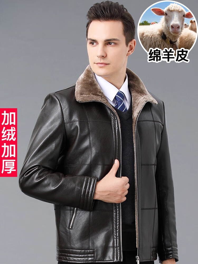 Playboy (PLAYBOY) middle-aged genuine leather jacket men Haining first layer sheepskin jacket dad velvet thickened coat winter A16 brown velvet thickened 2XL 185 (recommended 155-170Jin Jin equals 0.5 kg)