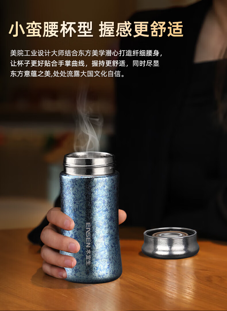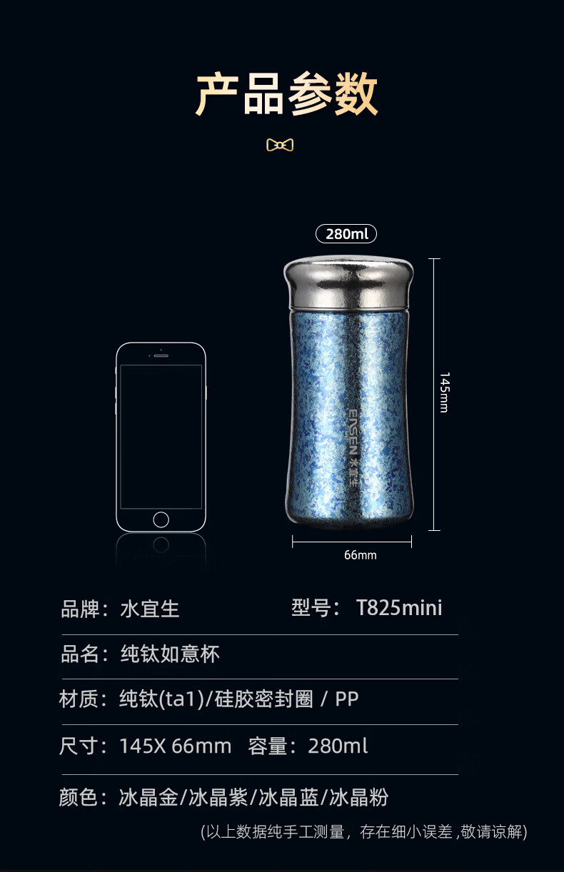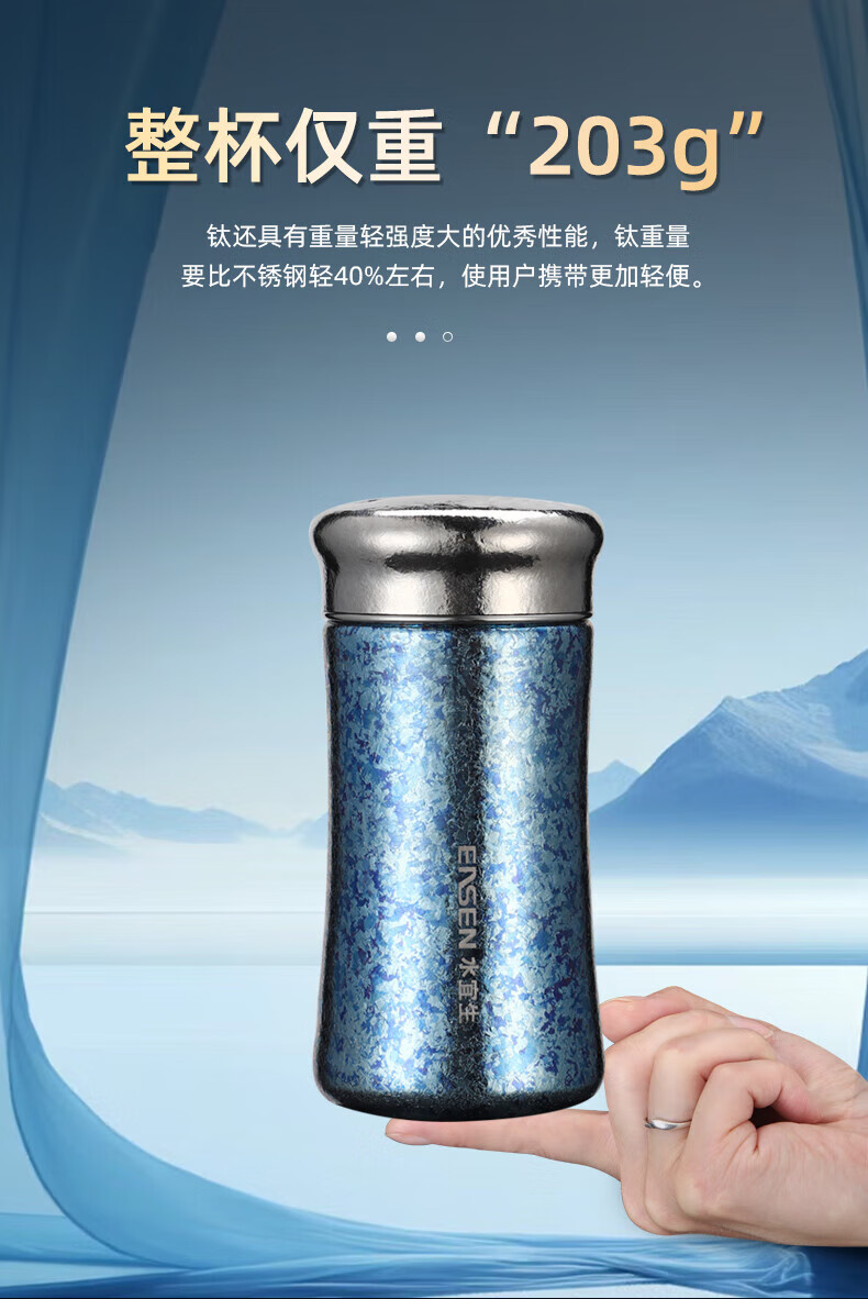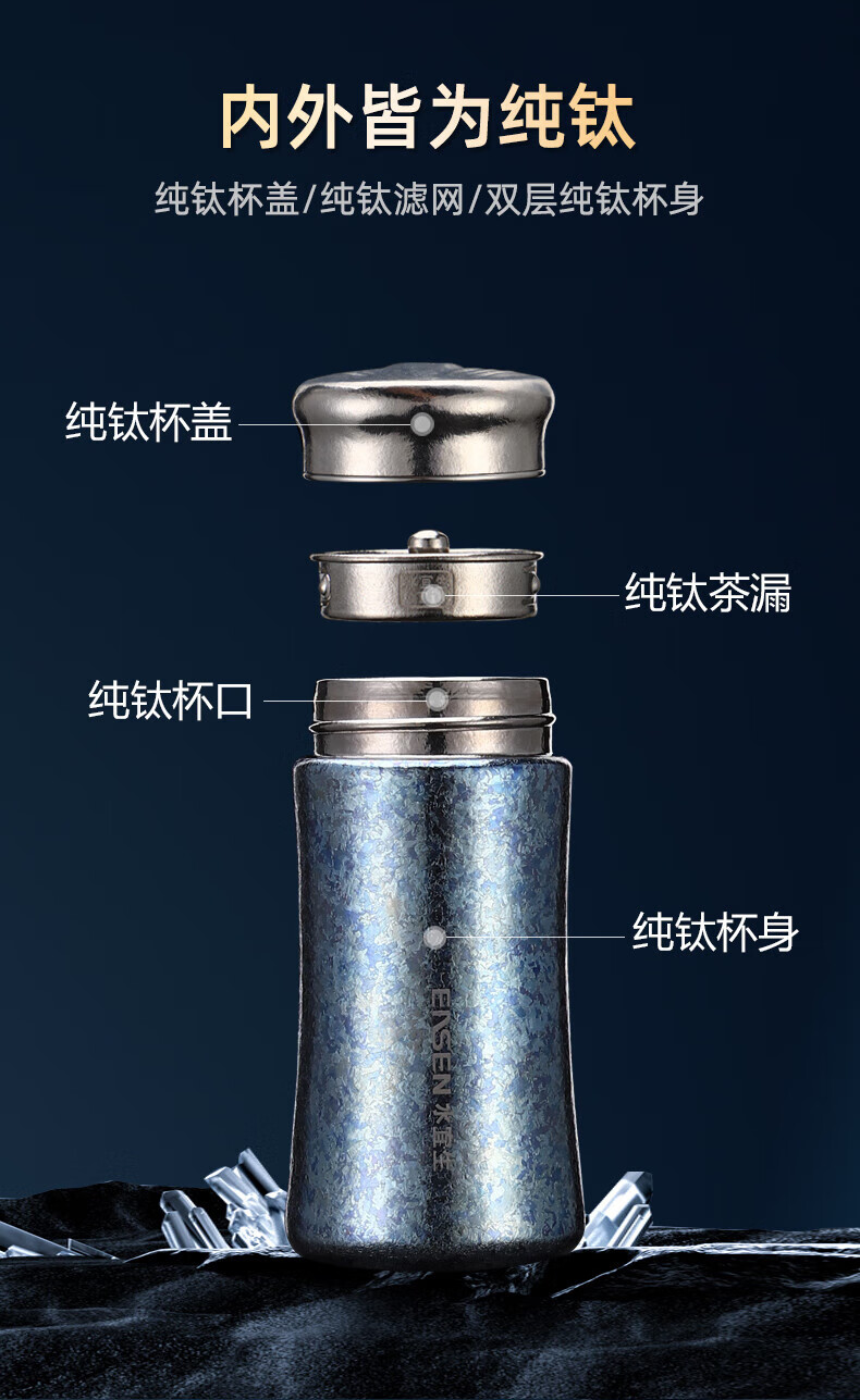 Shuiyisheng pure titanium thermos cup for men and women, high-end titanium cup, office tea and water separation, stew tea cup, portable car cup, ice crystal blue 280ml