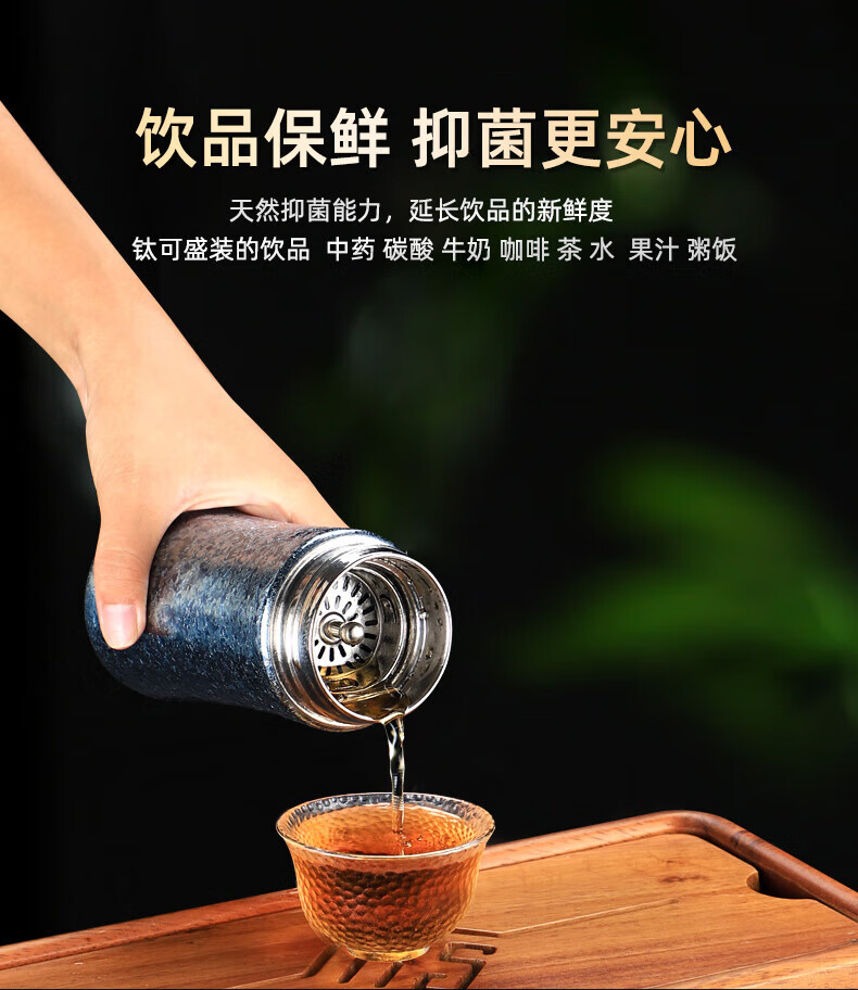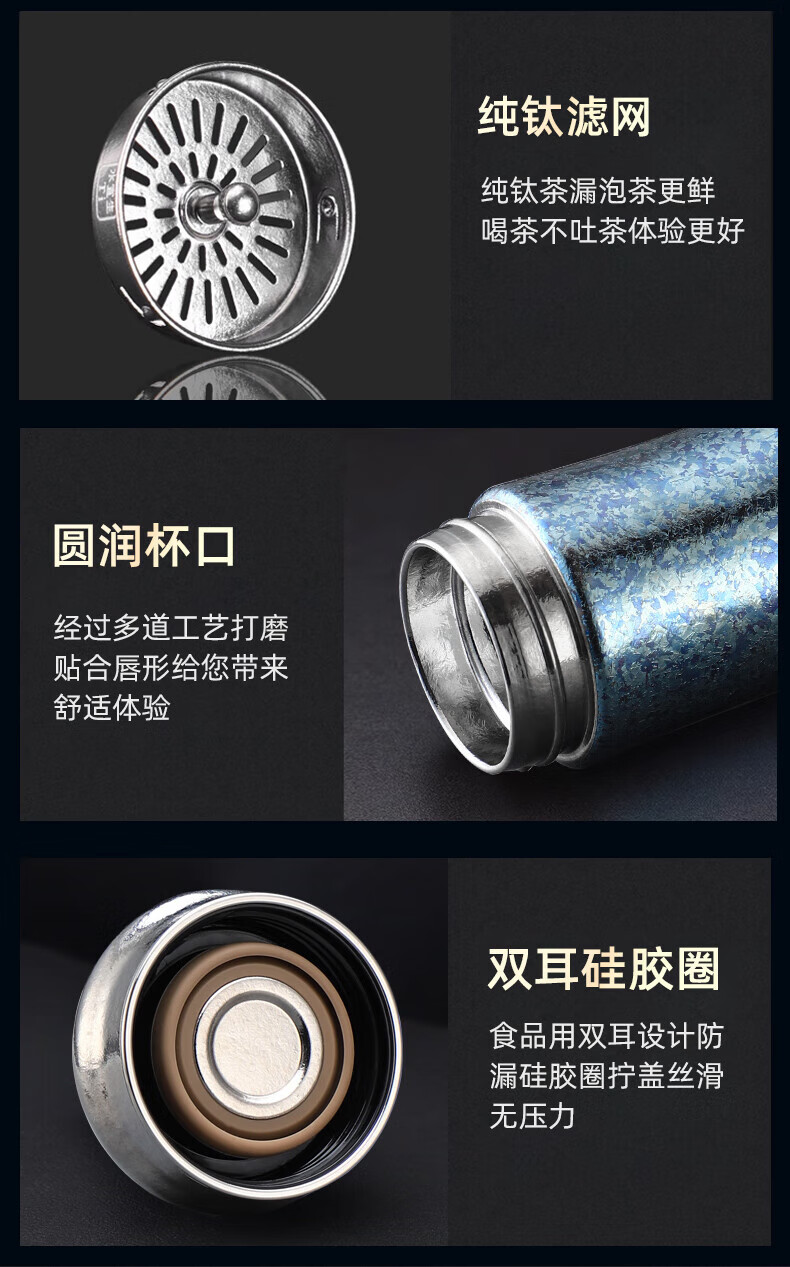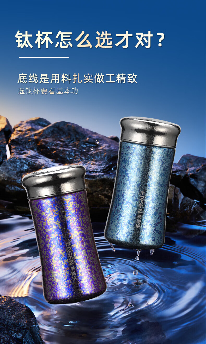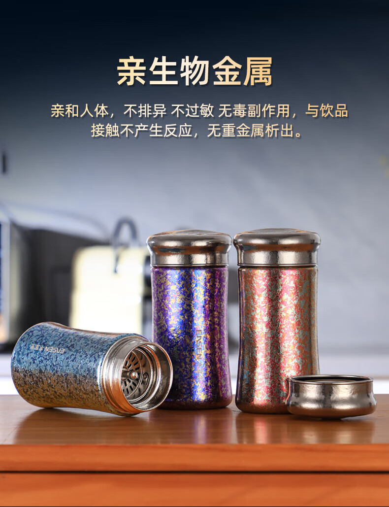 Shuiyisheng pure titanium thermos cup for men and women, high-end titanium cup, office tea and water separation, stew tea cup, portable car cup, ice crystal blue 280ml