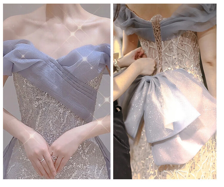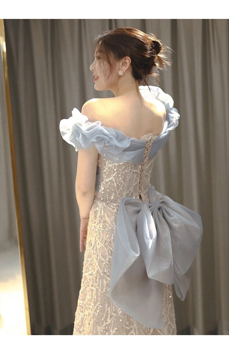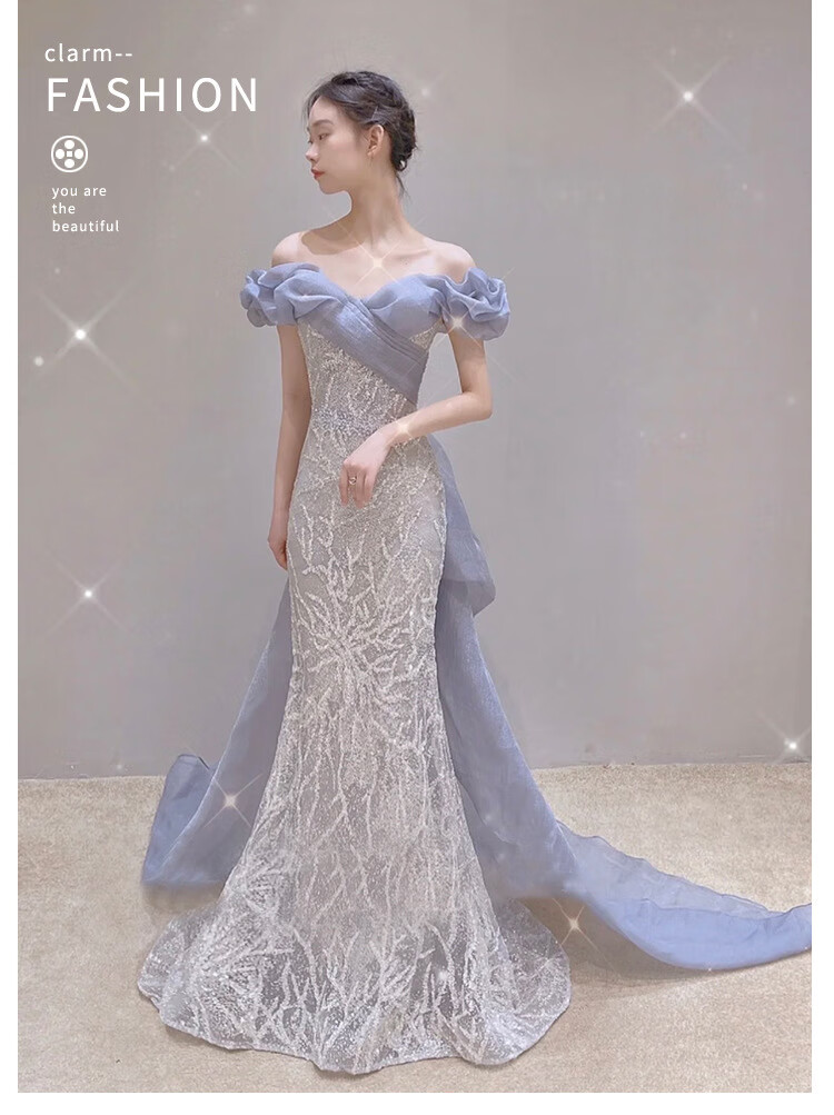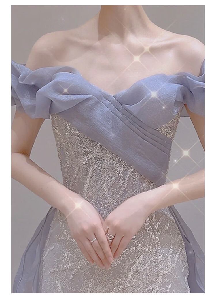 Misid New Year's Eve New Year's Eve party dress for women, new sequined fishtail skirt, French high-end one-shoulder slim dress, fishtail skirt, XS, one size fits all