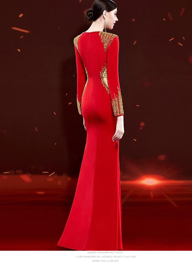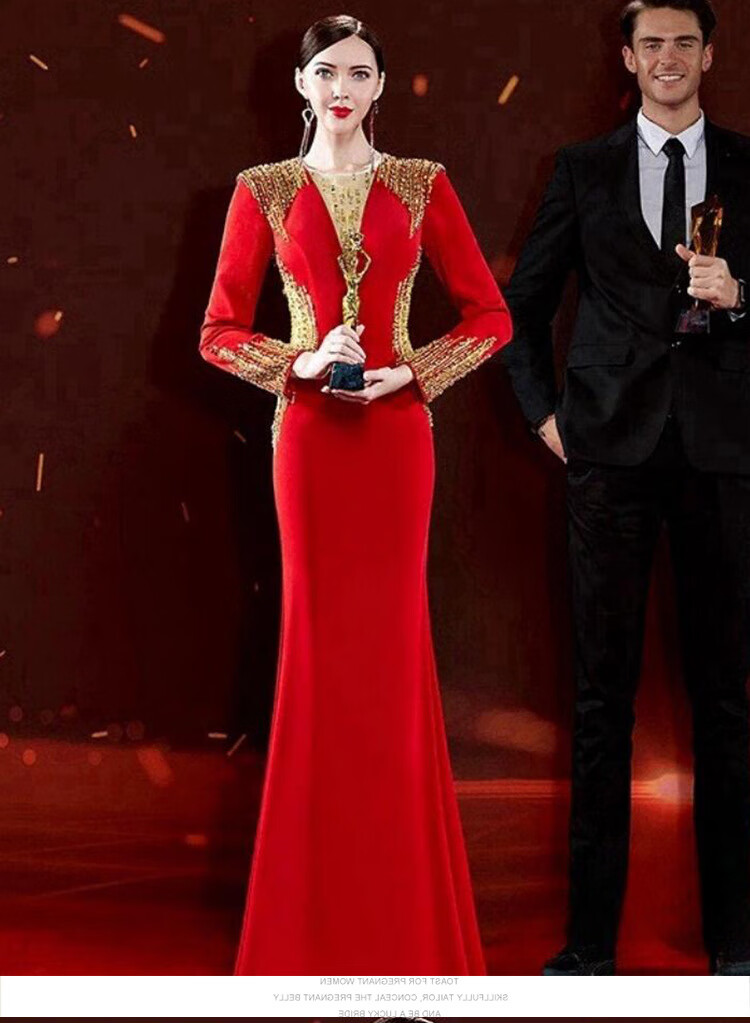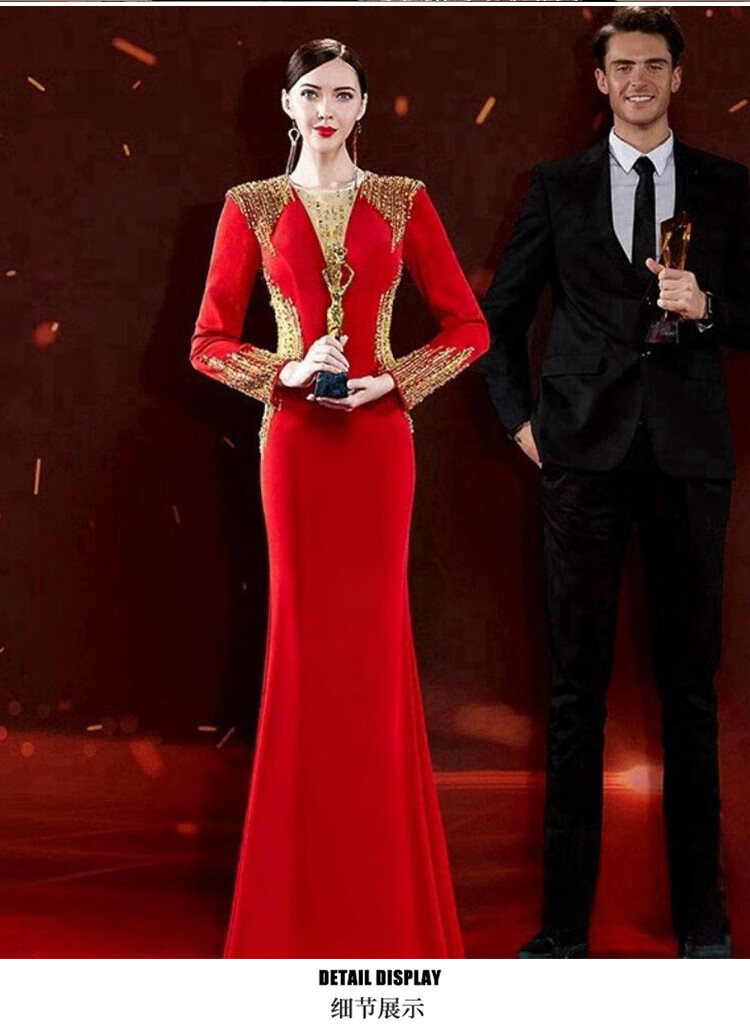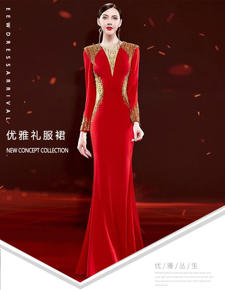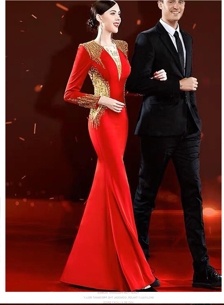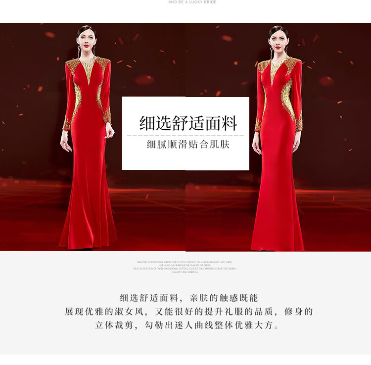 Mishid Annual Meeting Host Dress Skirt Women's Banquet Evening Dress Skirt 2025 New Fishtail Niche Feel Host Performance Costume Red XS One Size