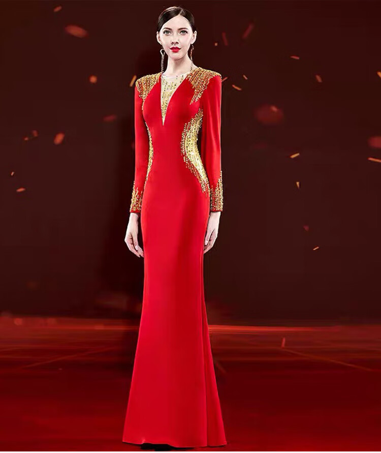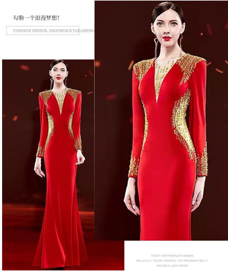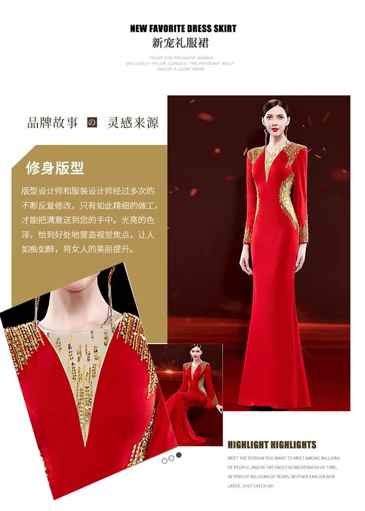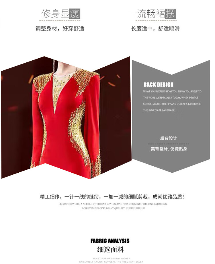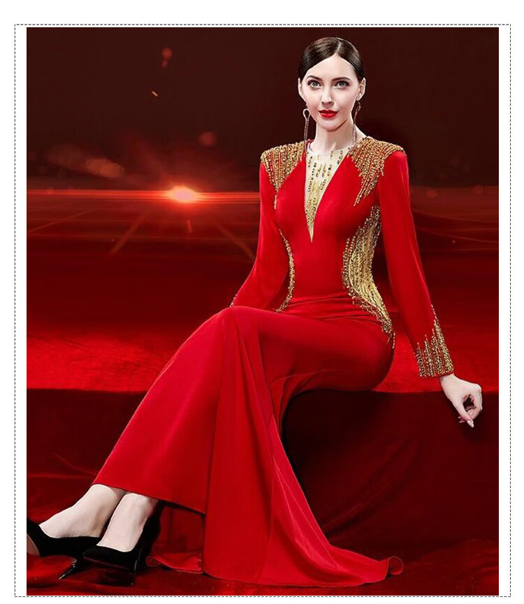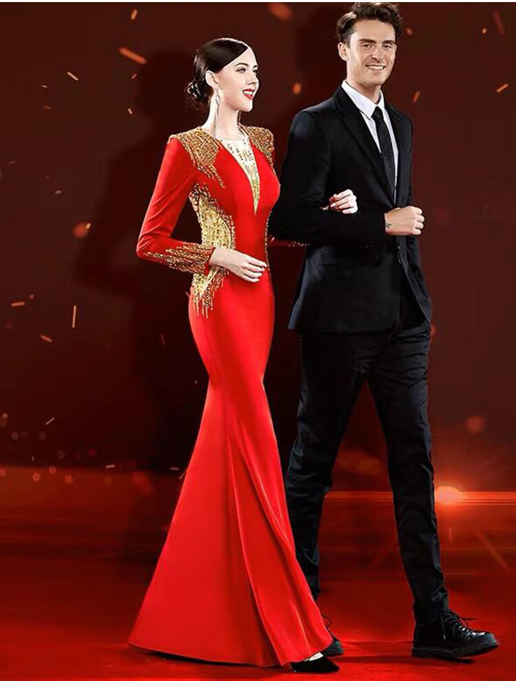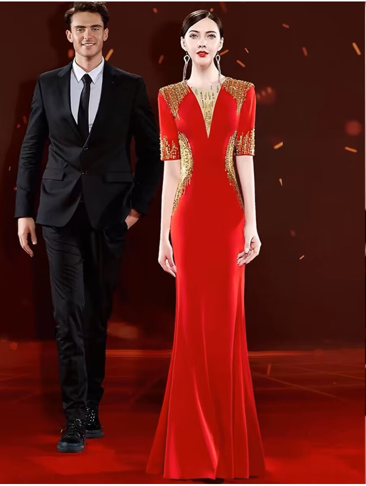 Mishid Annual Meeting Host Dress Skirt Women's Banquet Evening Dress Skirt 2025 New Fishtail Niche Feel Host Performance Costume Red XS One Size