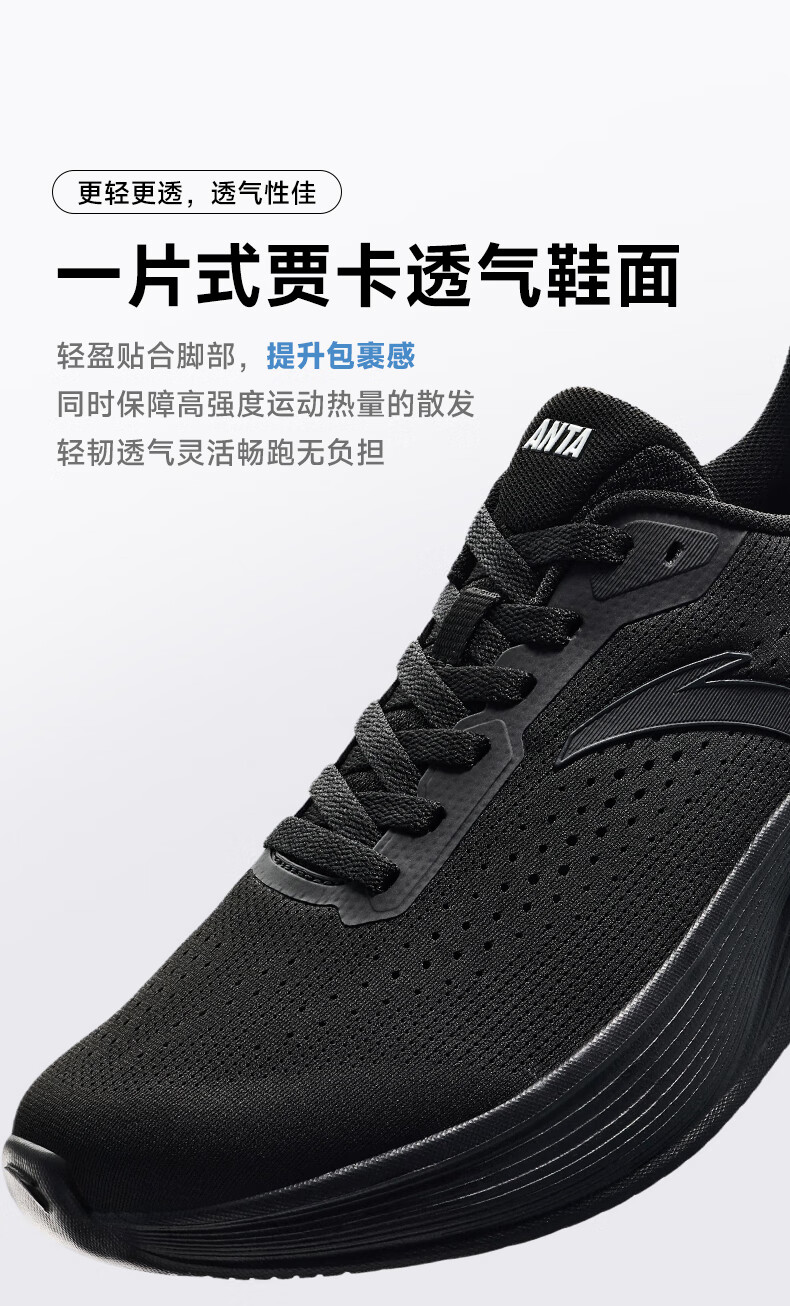 ANTA Volley丨Men's Shoes Sports Shoes Men's 2025 Winter New Soft Sole Cushioning Running Shoes Black Sports Casual Shoes Basic Black-4 40