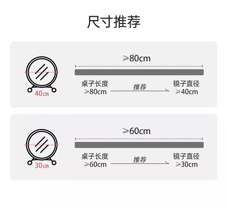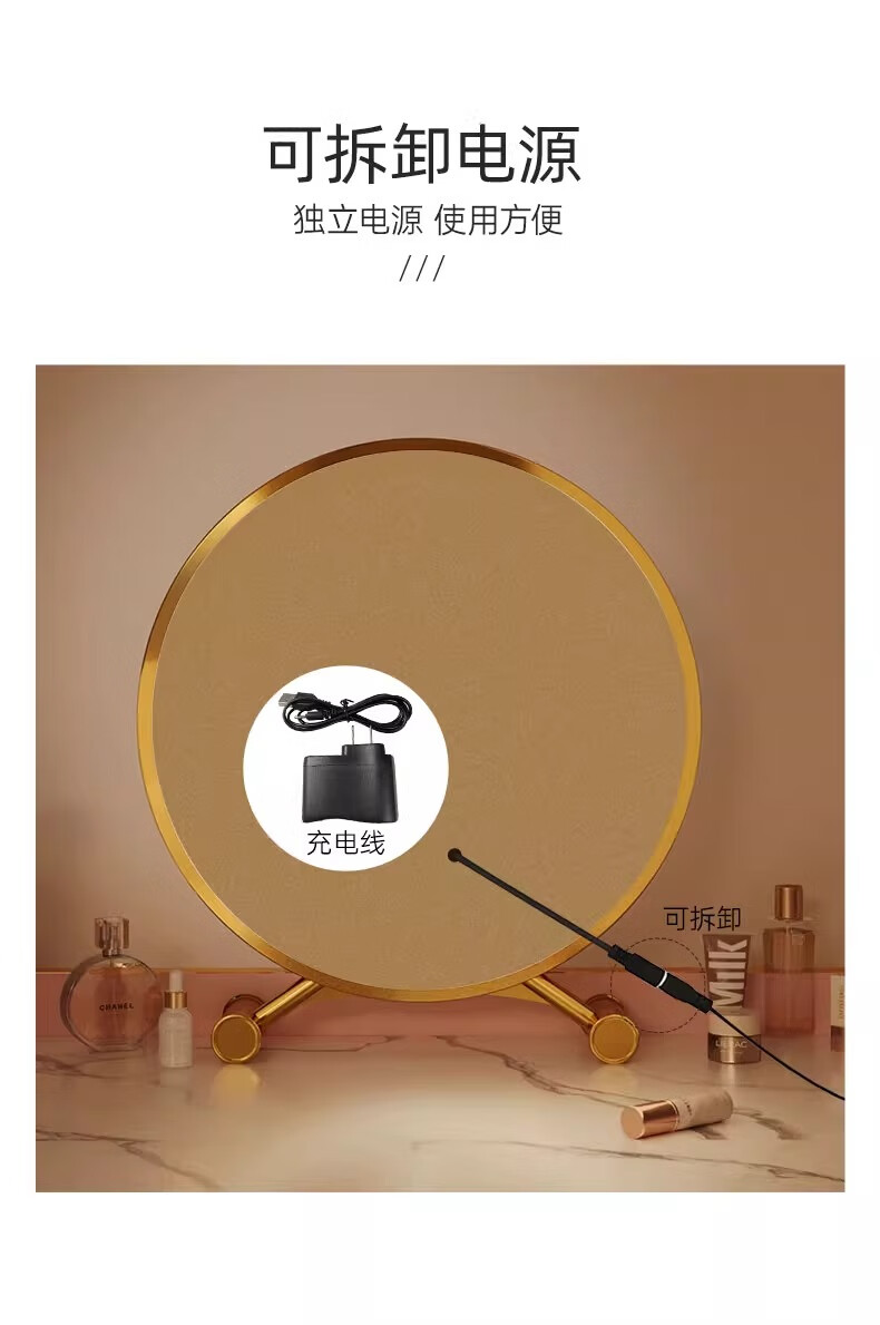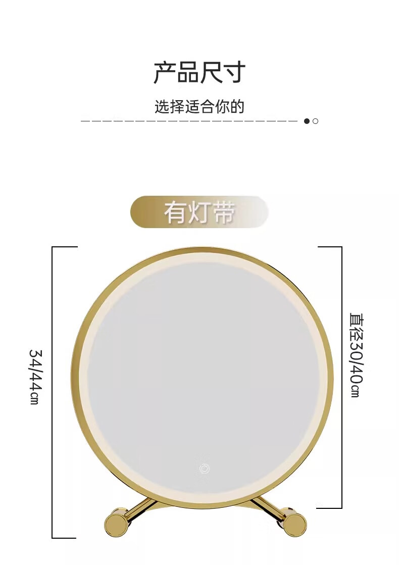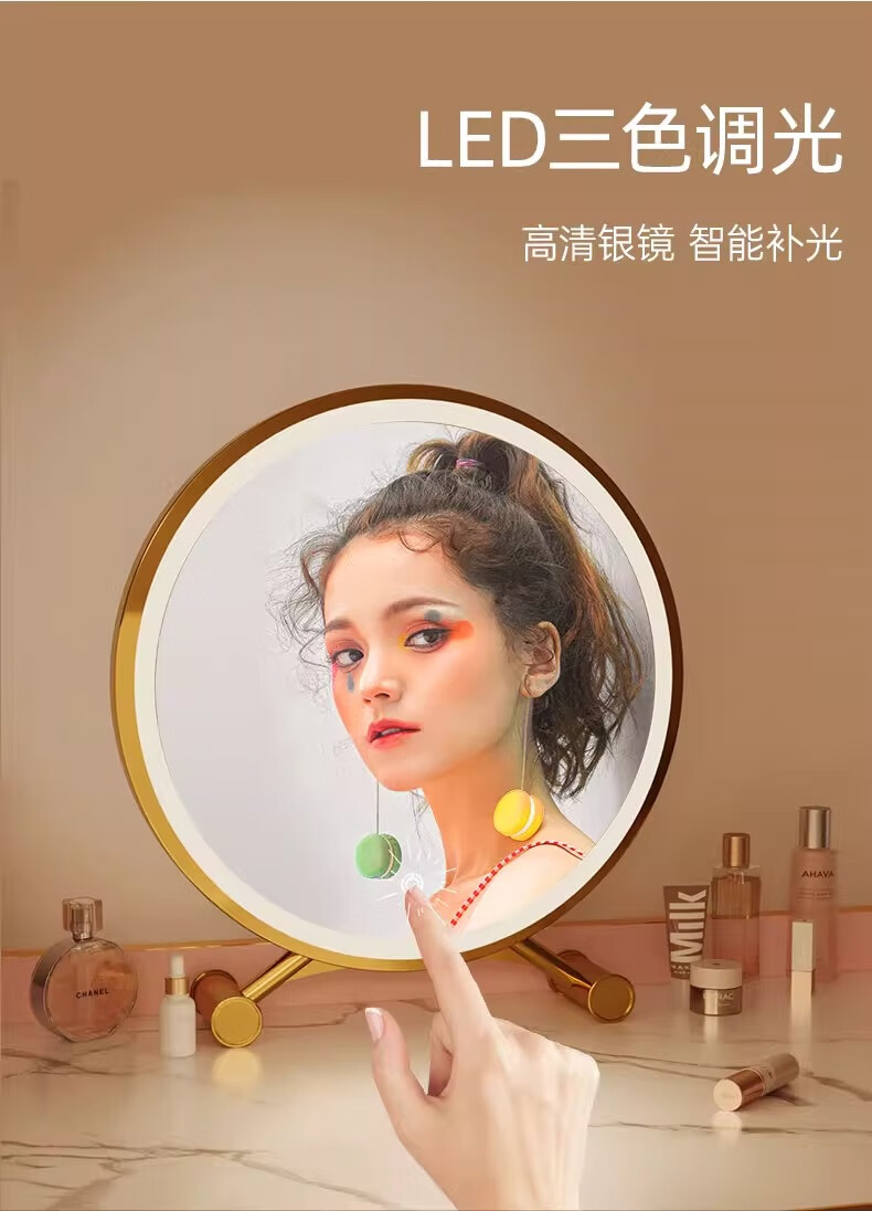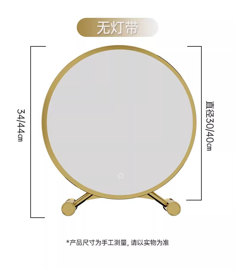 Desktop smart LED makeup mirror with light for home bedroom makeup table mirror student dormitory desktop ins makeup mirror standard three-color light + brightness adjustable white 40cm 24