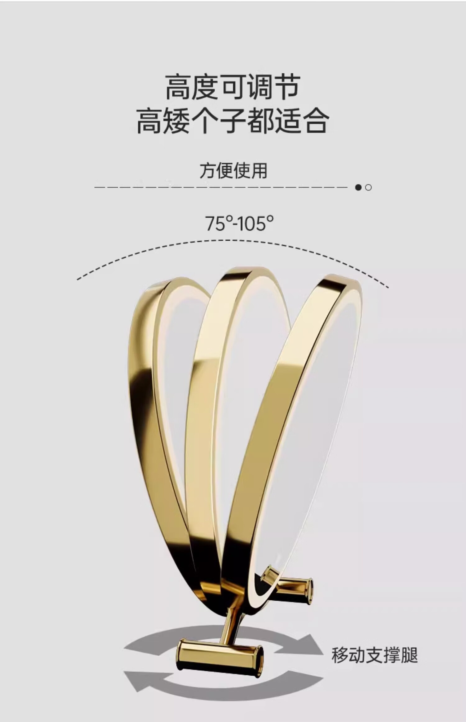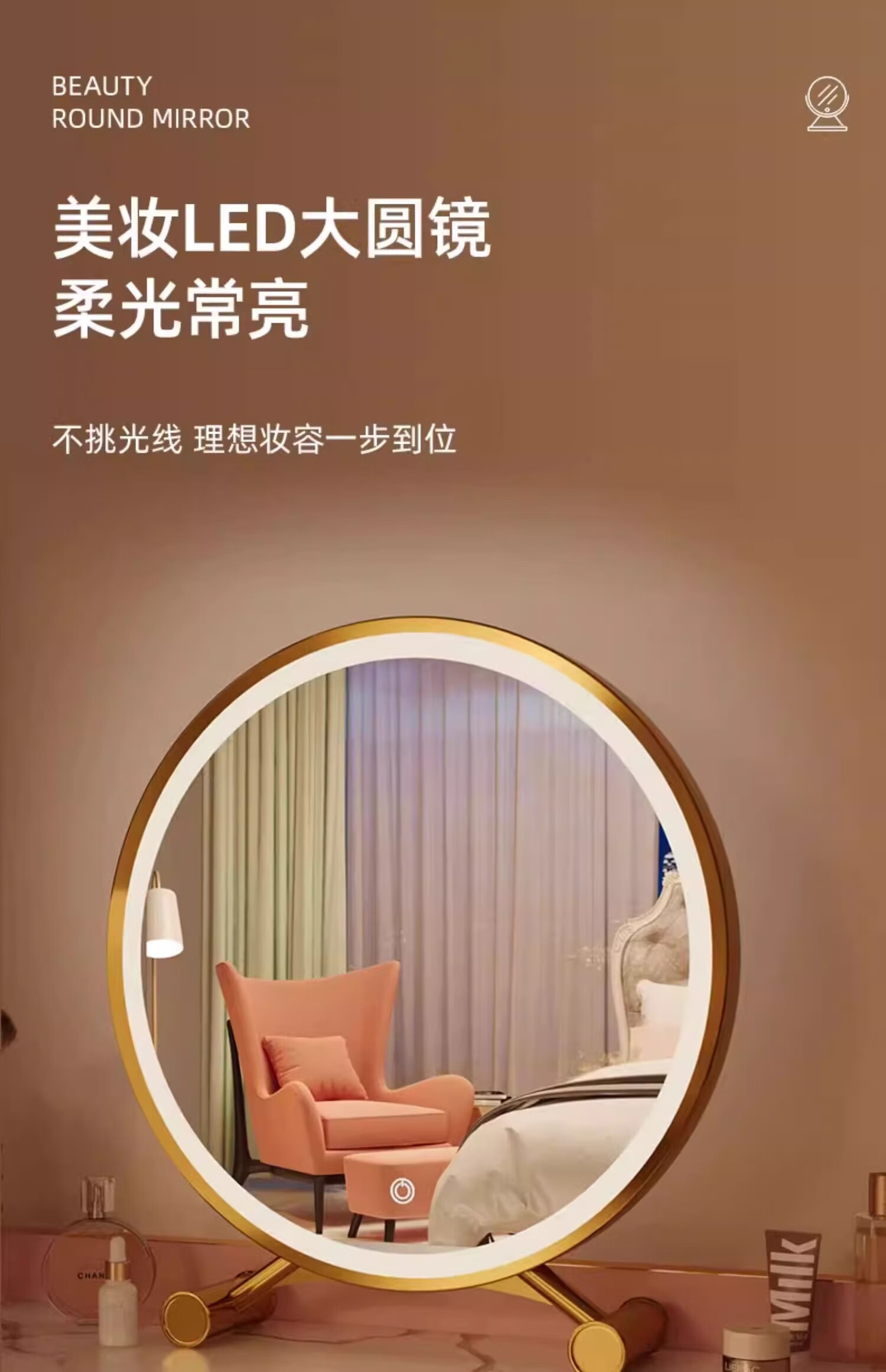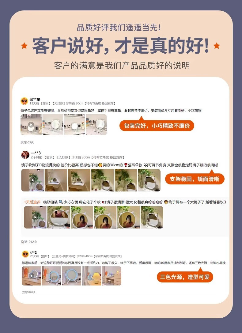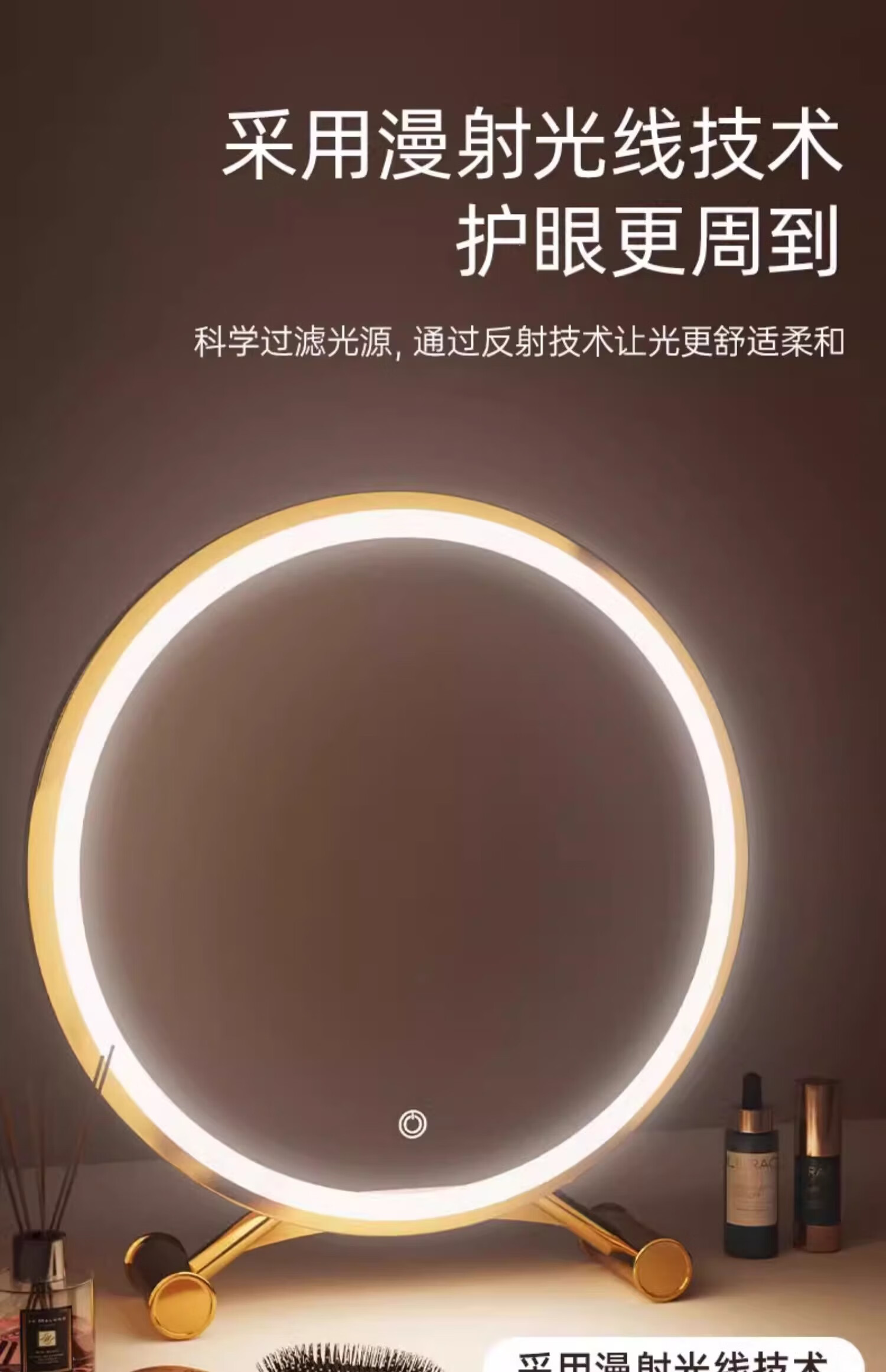 Desktop smart LED makeup mirror with light for home bedroom makeup table mirror student dormitory desktop ins makeup mirror standard three-color light + brightness adjustable white 40cm 24