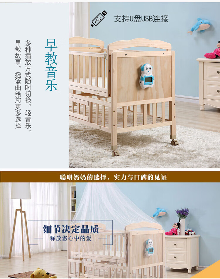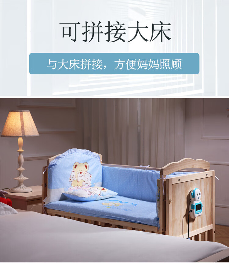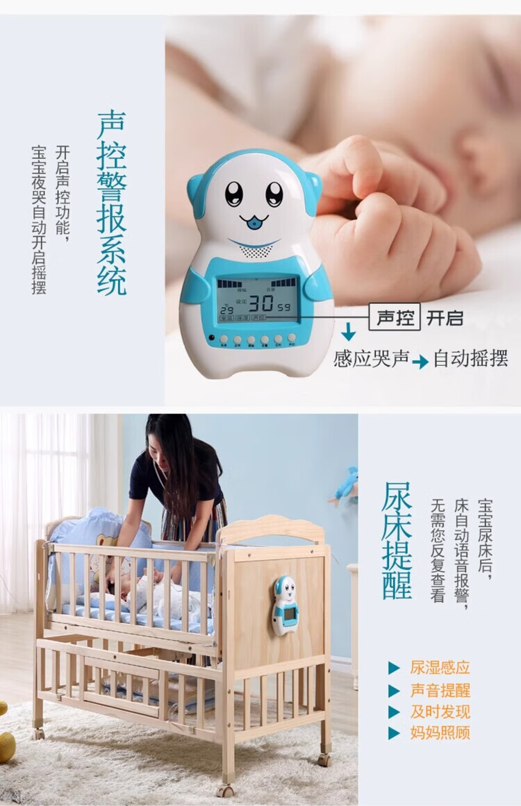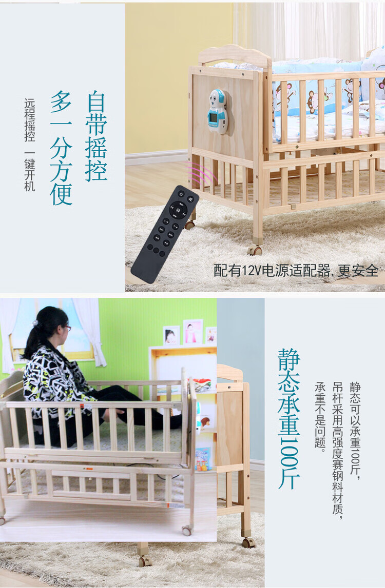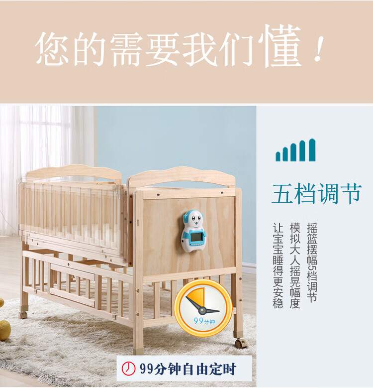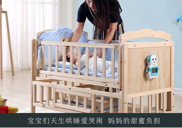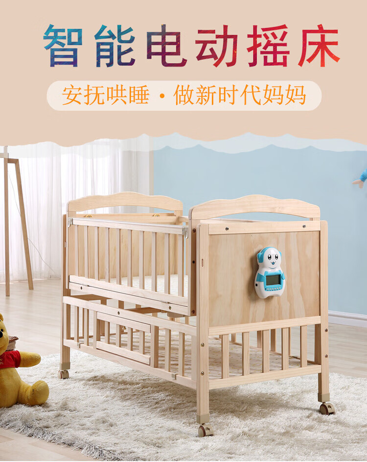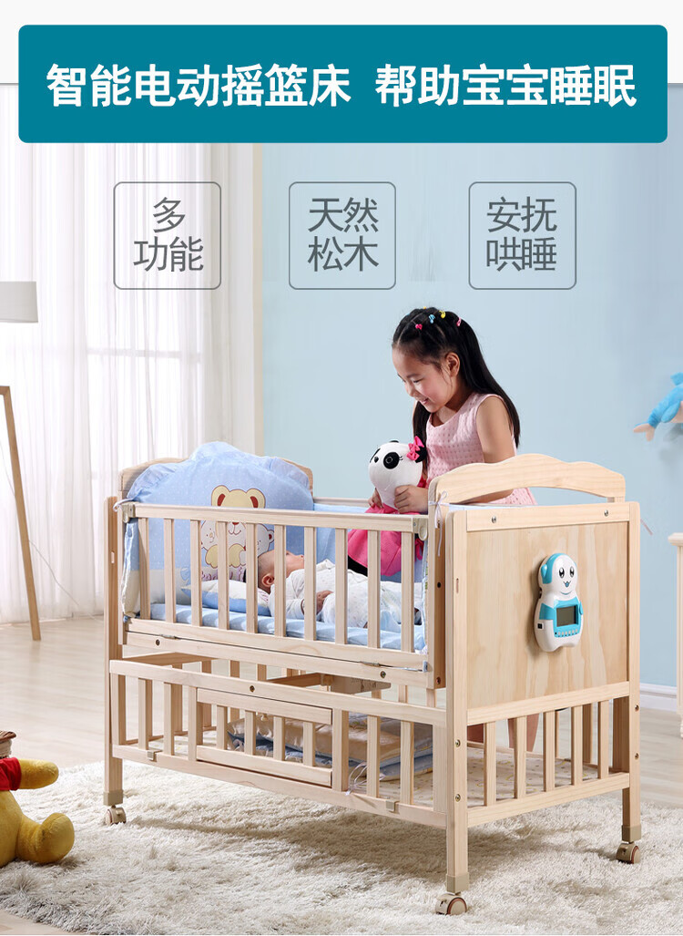 Crib solid wood baby multi-functional electric cradle bed smart newborn automatic sleeping basket spliced large bed electric version + crown five-piece set free mosquito net