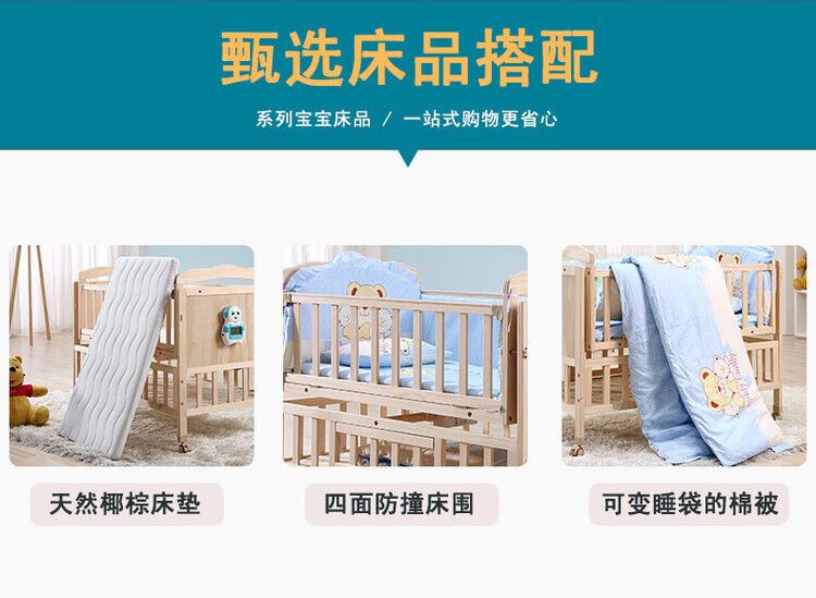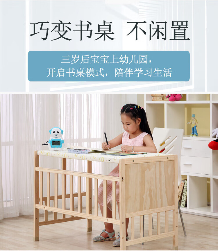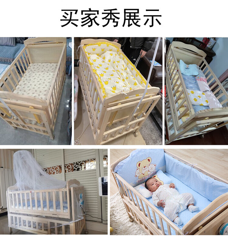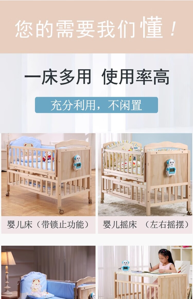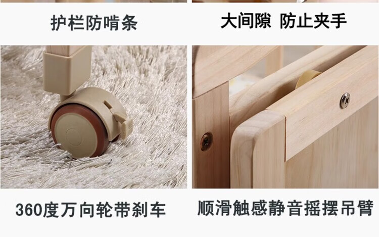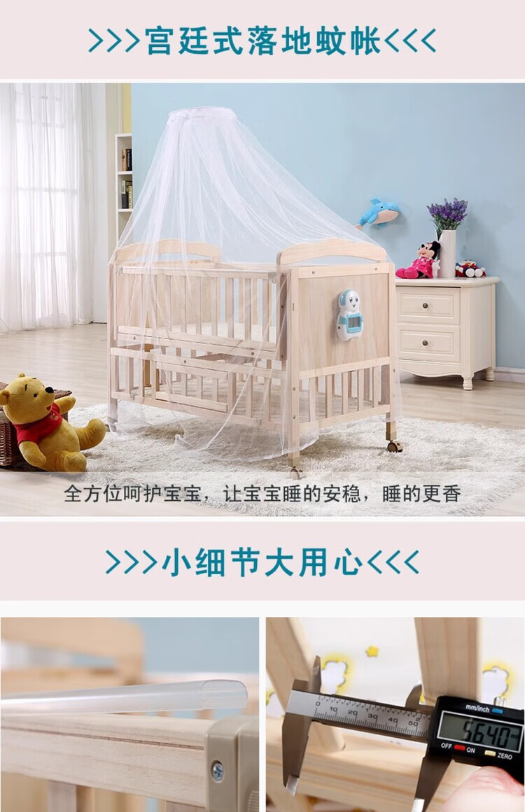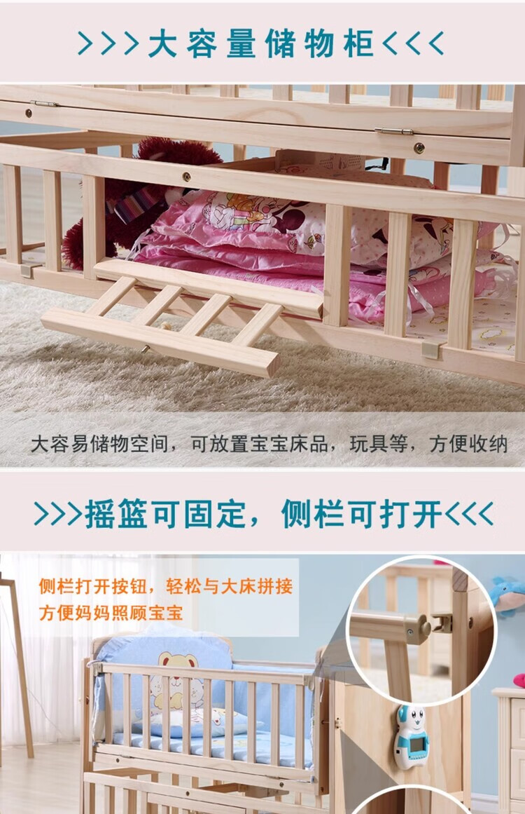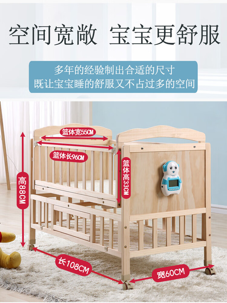Crib solid wood baby multi-functional electric cradle bed smart newborn automatic sleeping basket spliced large bed electric version + crown five-piece set free mosquito net