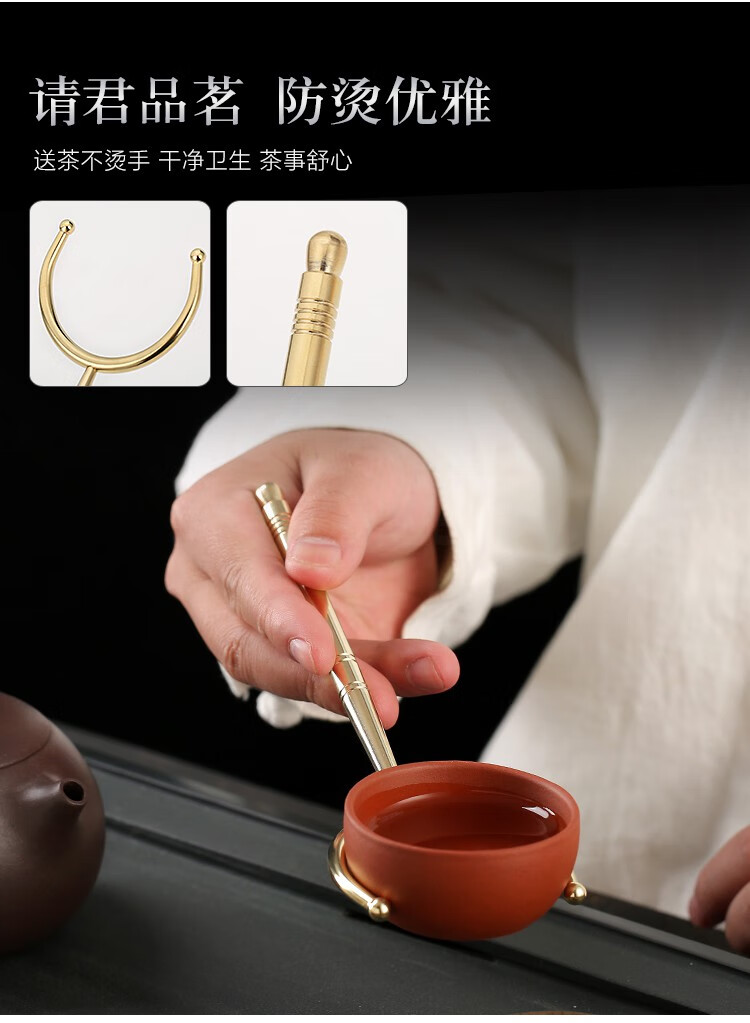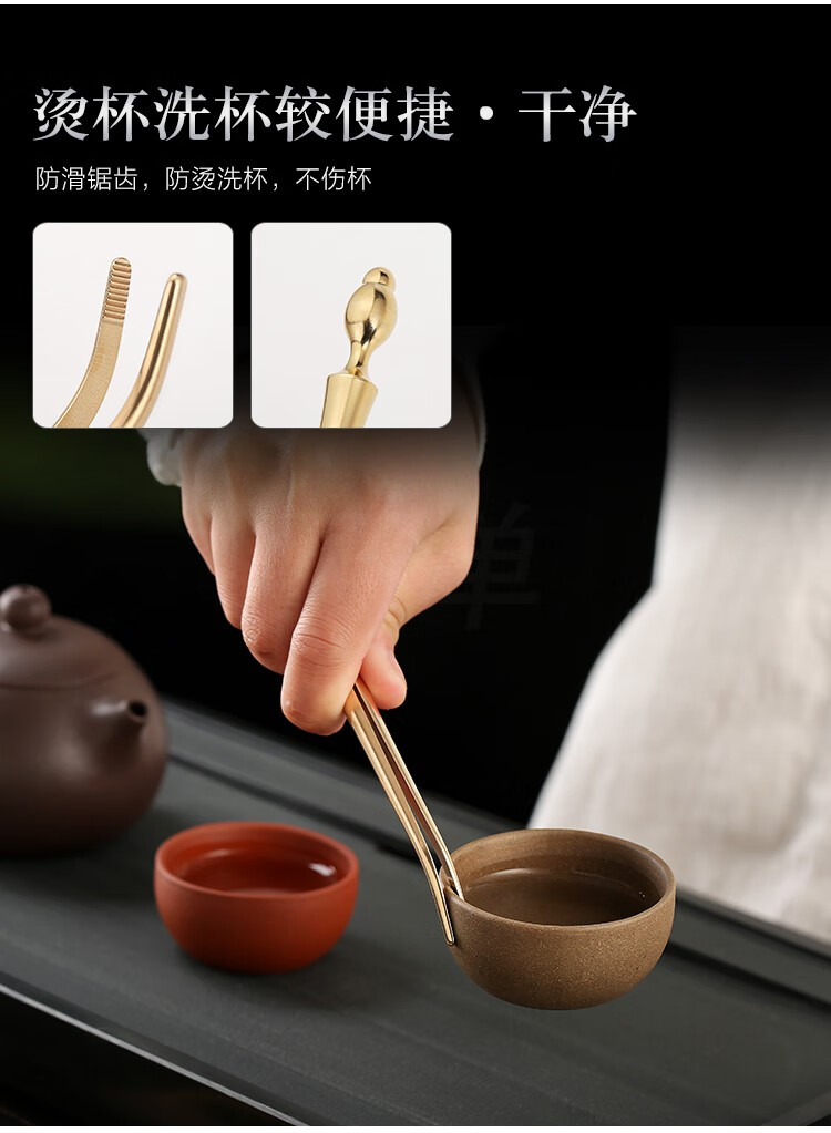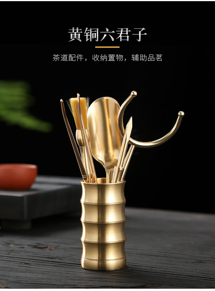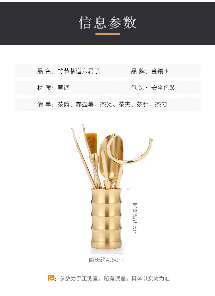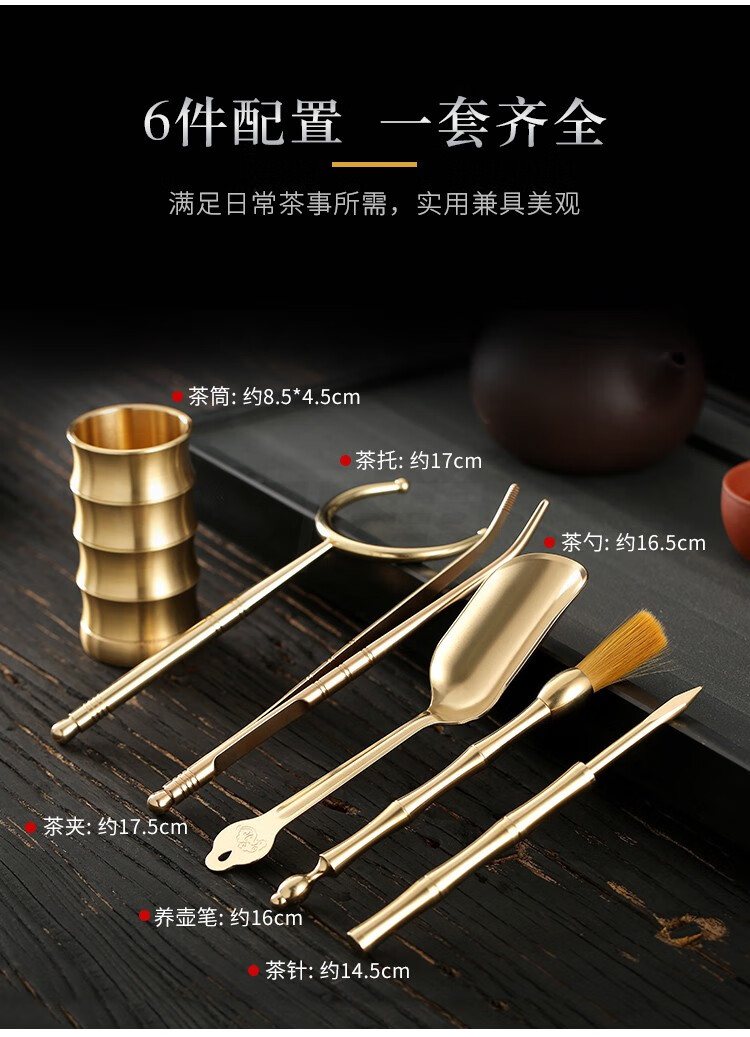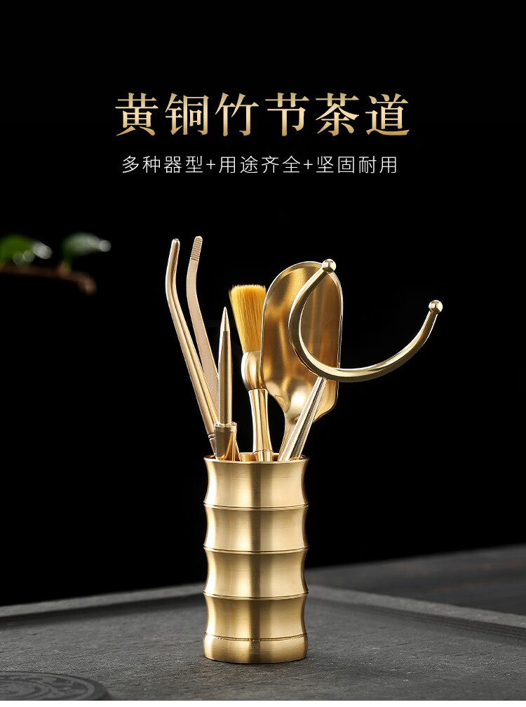 Gold inlaid jade household brass tea needle tea knife tea clip washer pot pen kung fu tea set accessories H59 brass bamboo joint tea ceremony six gentlemen