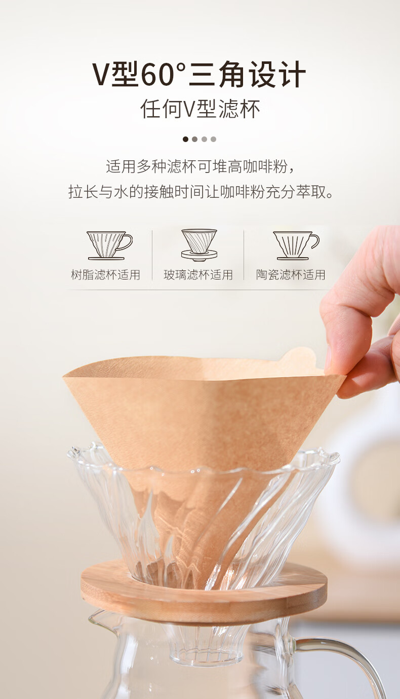 Coffee filter paper log portable drip-type hand-brewed coffee powder filter V-shaped filter cup filter paper 100 sheets WL v large log filter paper 100 sheets 100 sheets