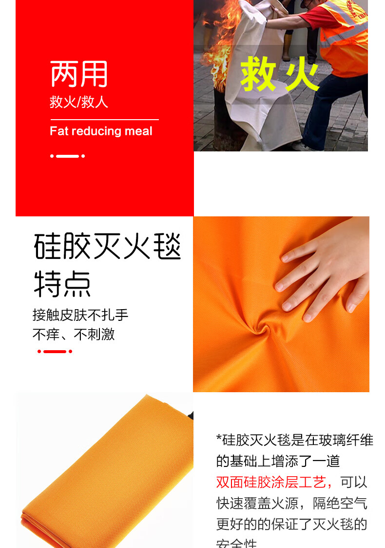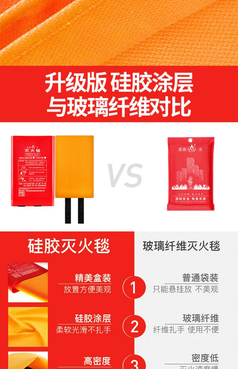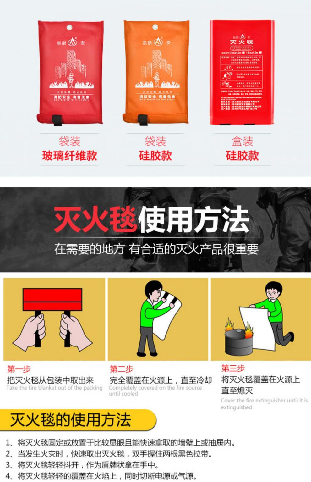 Xingzhe'an fire extinguishing blanket fire blanket certified household fiberglass kitchen household national standard silicone bagged fiberglass 1.2m*1.2m