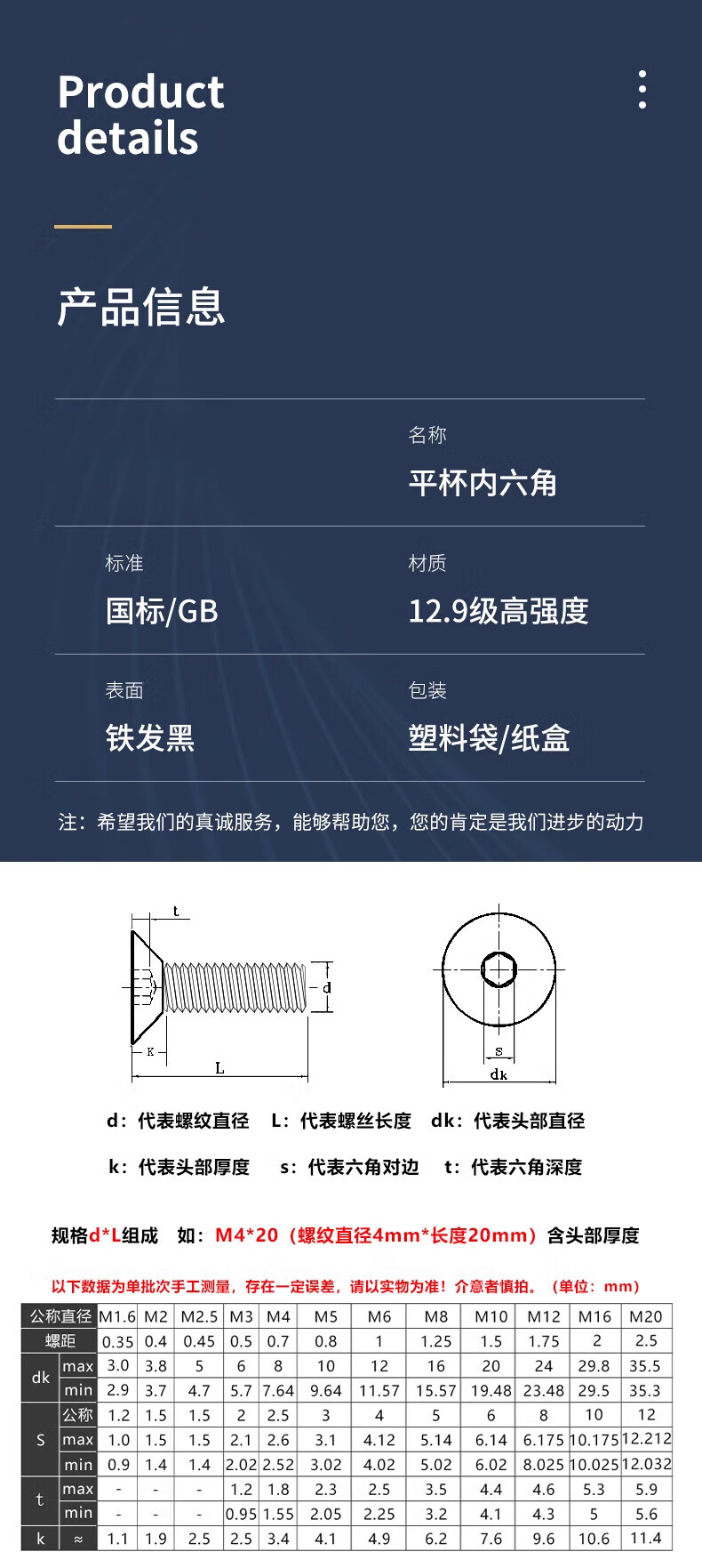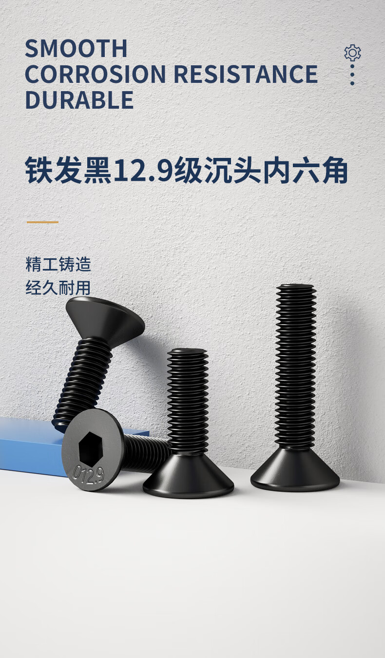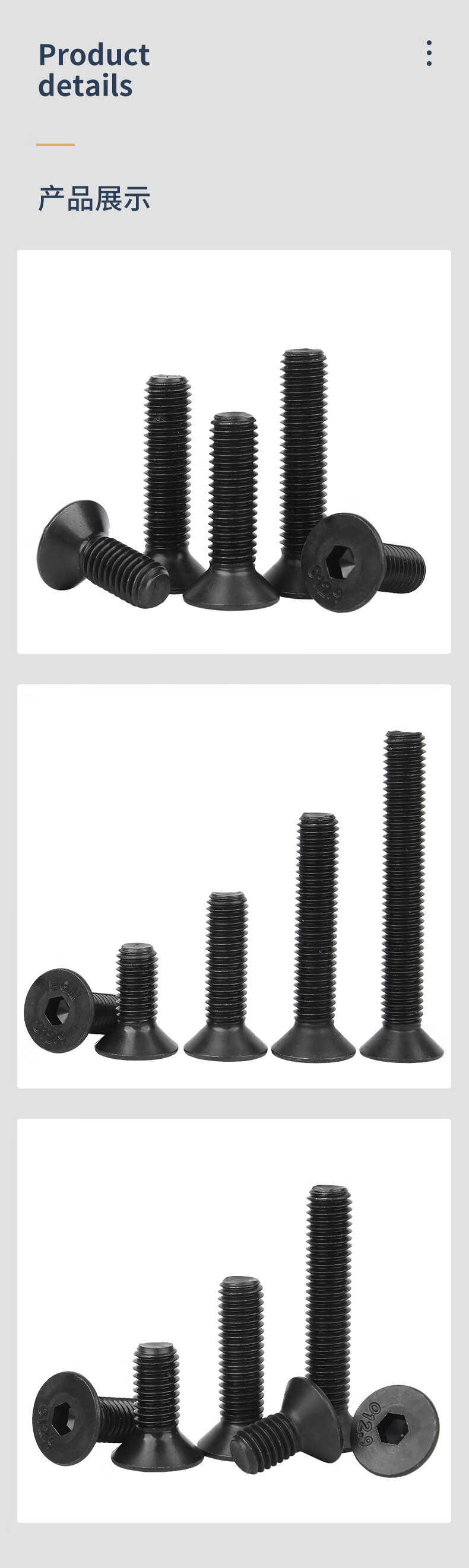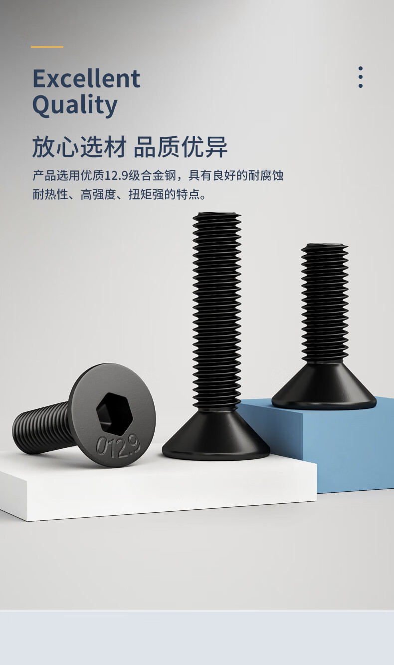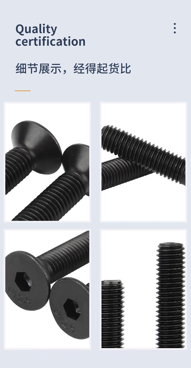 Pupan 129 grade high strength countersunk head hexagonal screws flat head hexagonal bolts screws M2M3M4M5M6M8M12 M2*1650 pieces