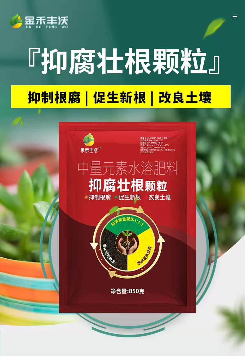 Jinhe Fengwo three-in-one anti-corrosion and root-strengthening granules, anti-root rot, root-promoting, seedling-strengthening and soil-improvement fertilizer 15 bags - a must-select for large growers