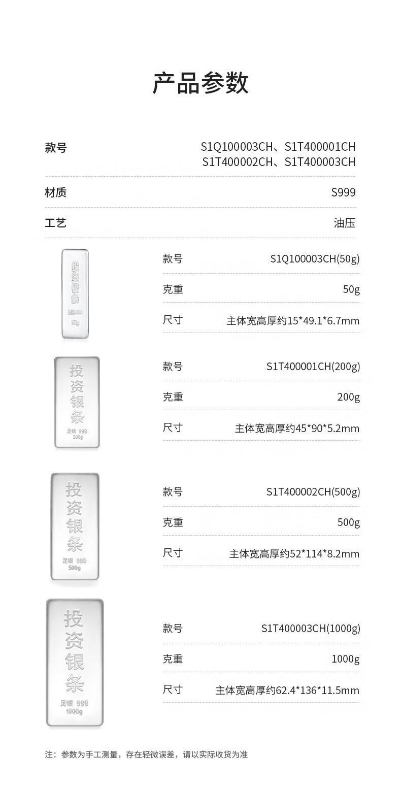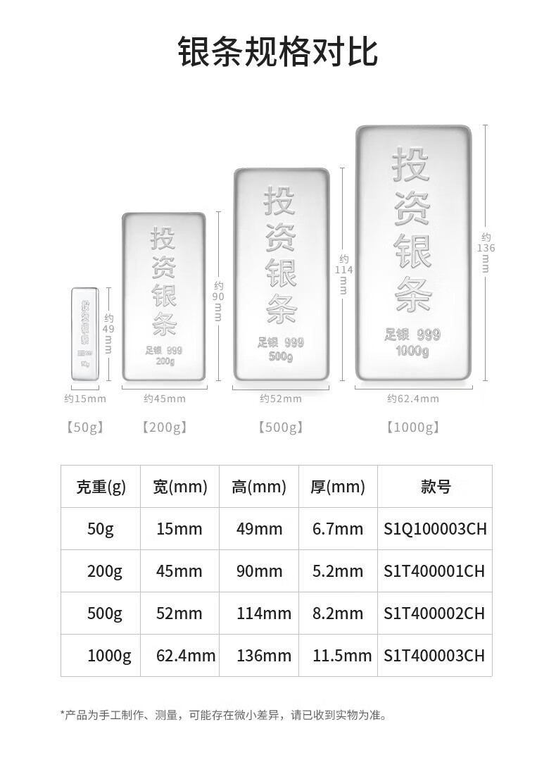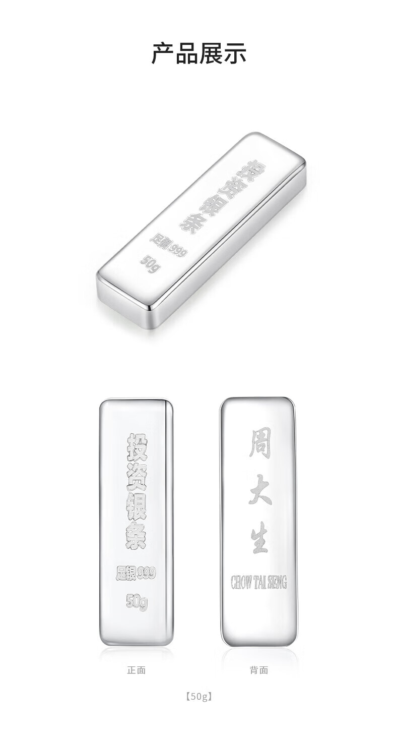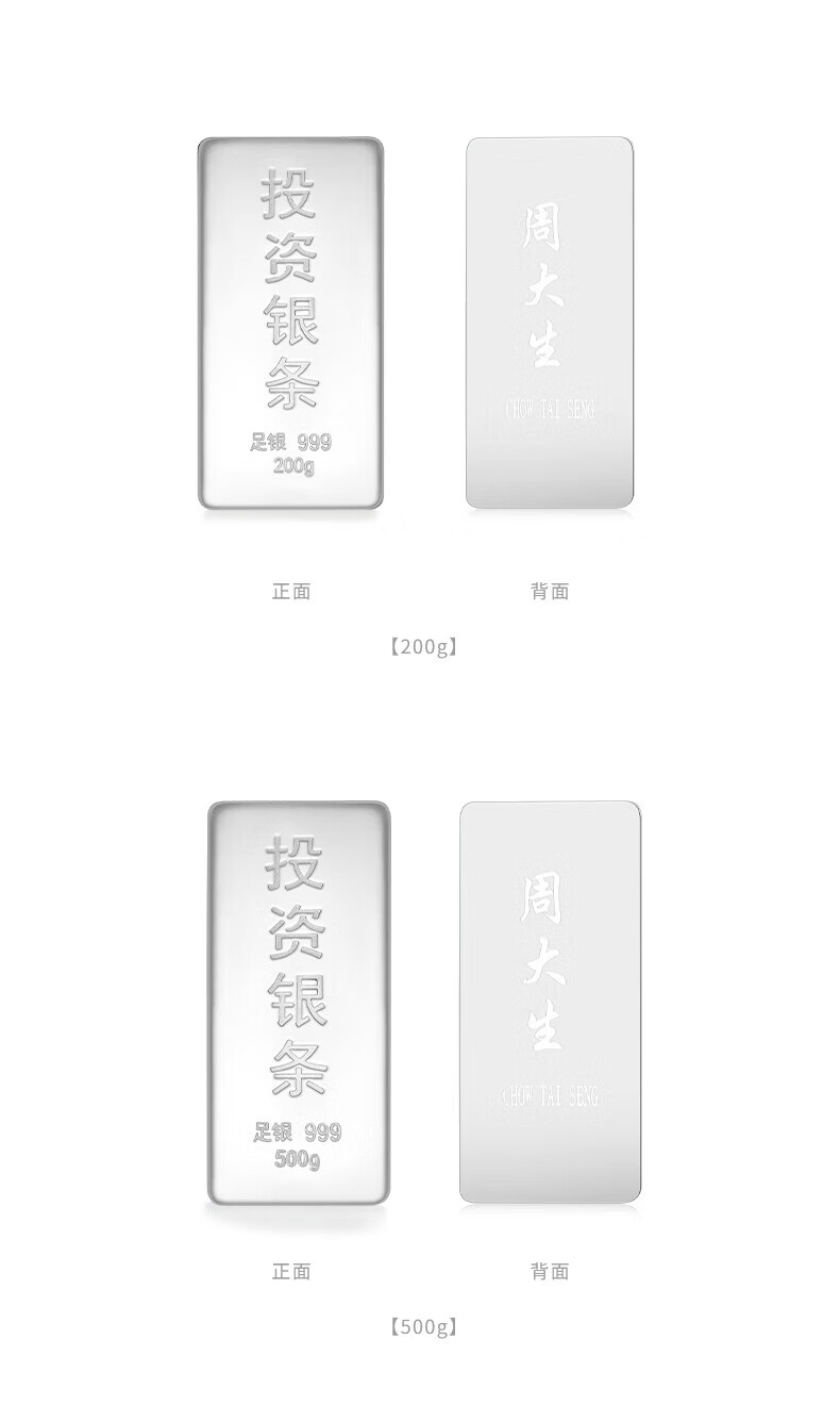 Chow Tai Sang Investment Silver Bar Solid Full Silver Bar Ornament 999 Silver Nugget Bracelet Collection Gifts Do Not Support Returns and Exchanges 500g- Do Not Support Returns and Exchanges