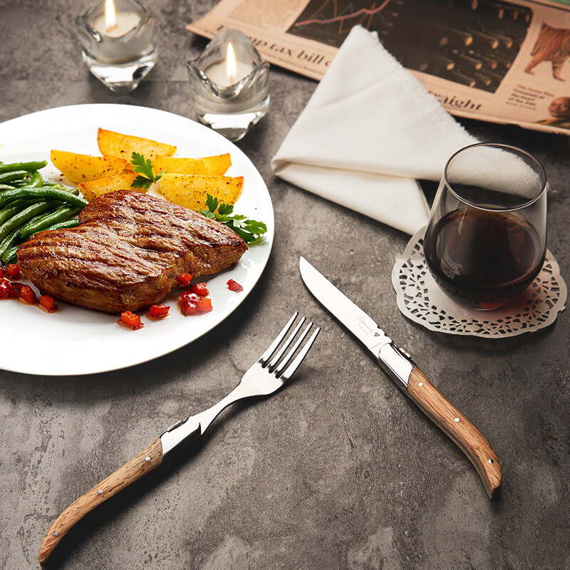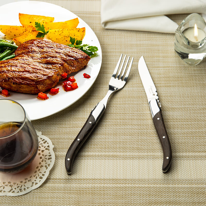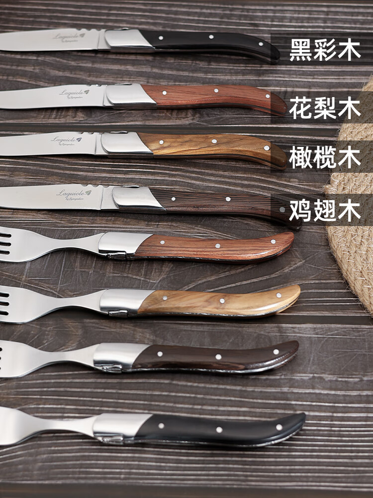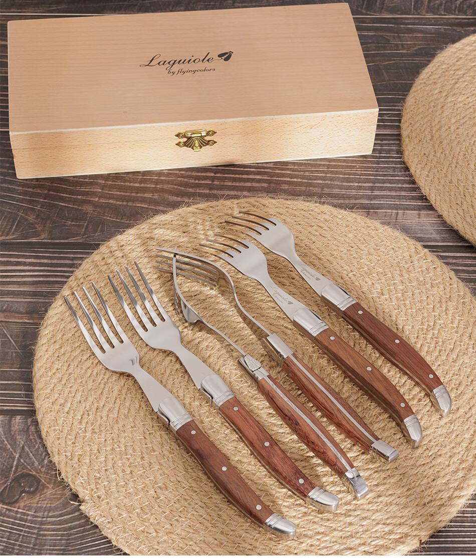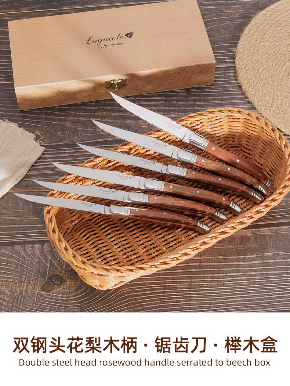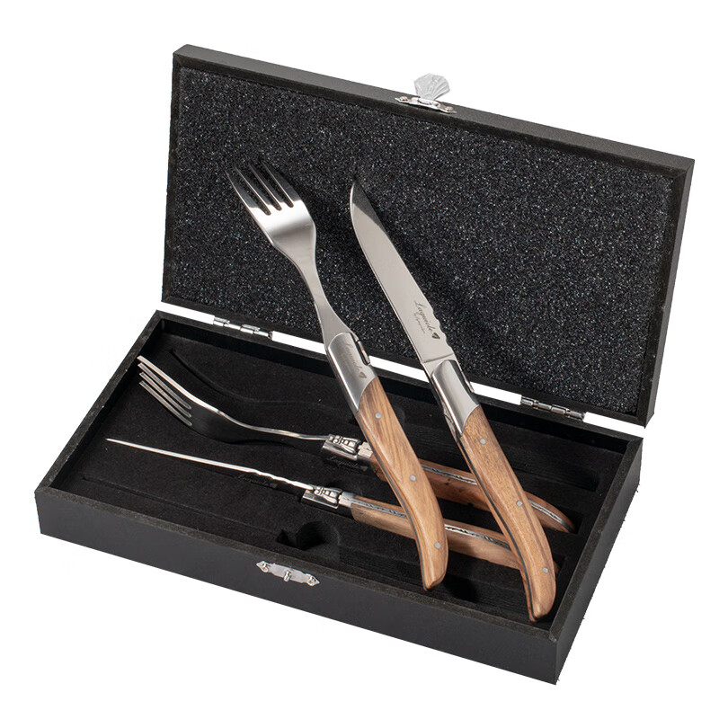 Qiao Bo Lai Western food tableware high-end rosewood handle knife and fork four-piece set for home steak French Laguiole thickened stainless steel double steel head rosewood 6 knives wooden box