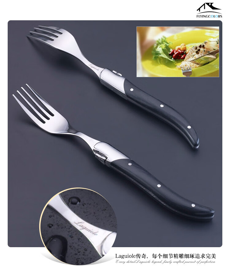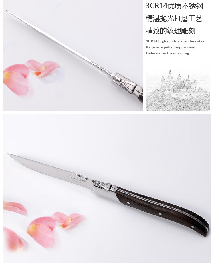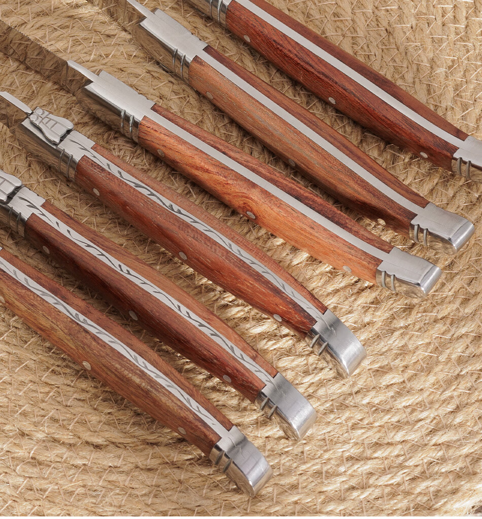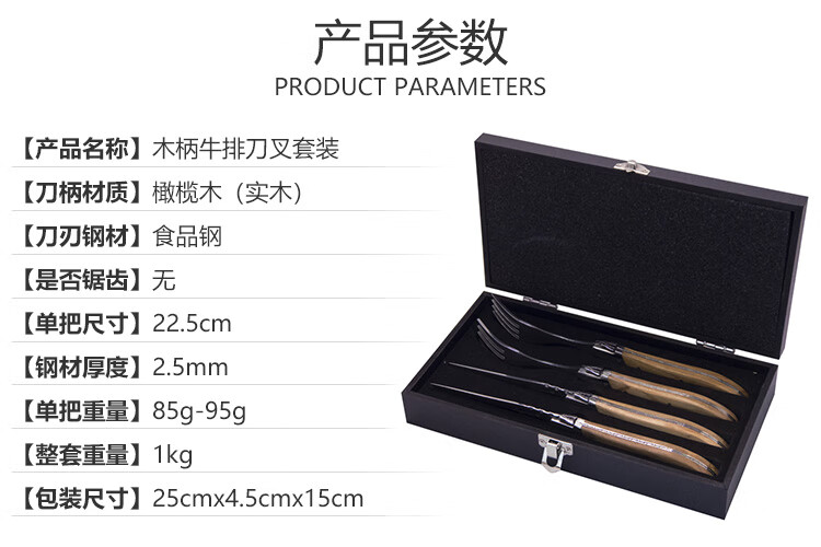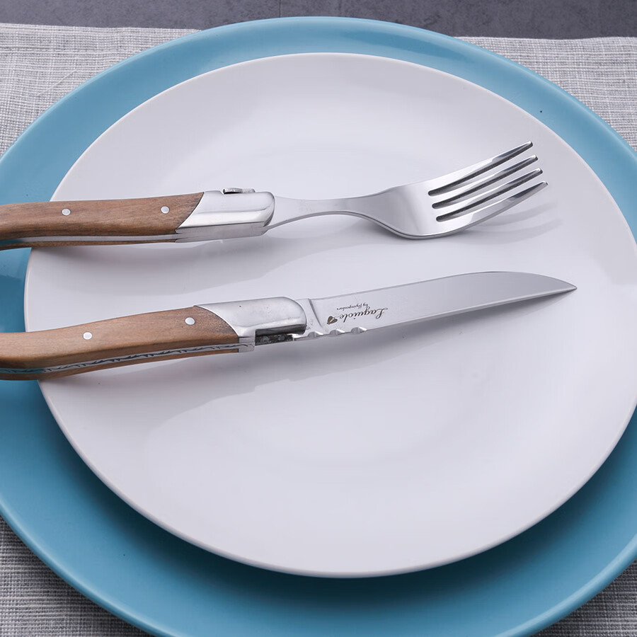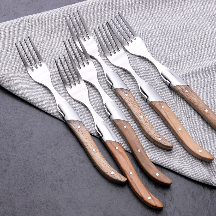 Qiao Bo Lai Western food tableware high-end rosewood handle knife and fork four-piece set for home steak French Laguiole thickened stainless steel double steel head rosewood 6 knives wooden box