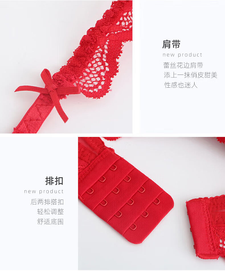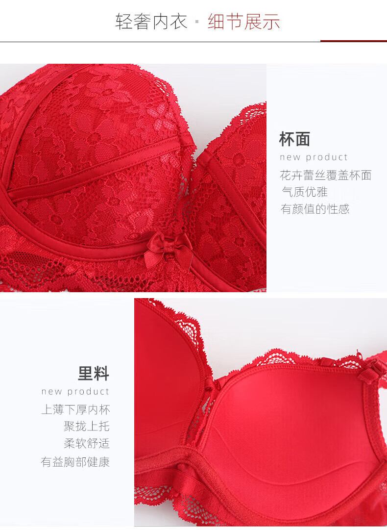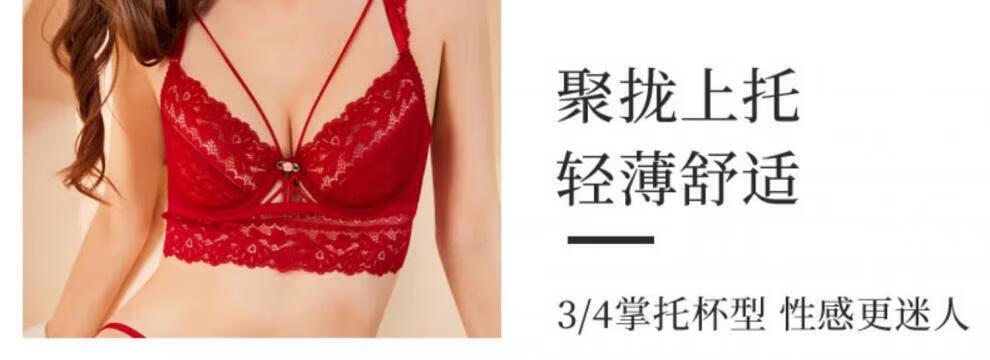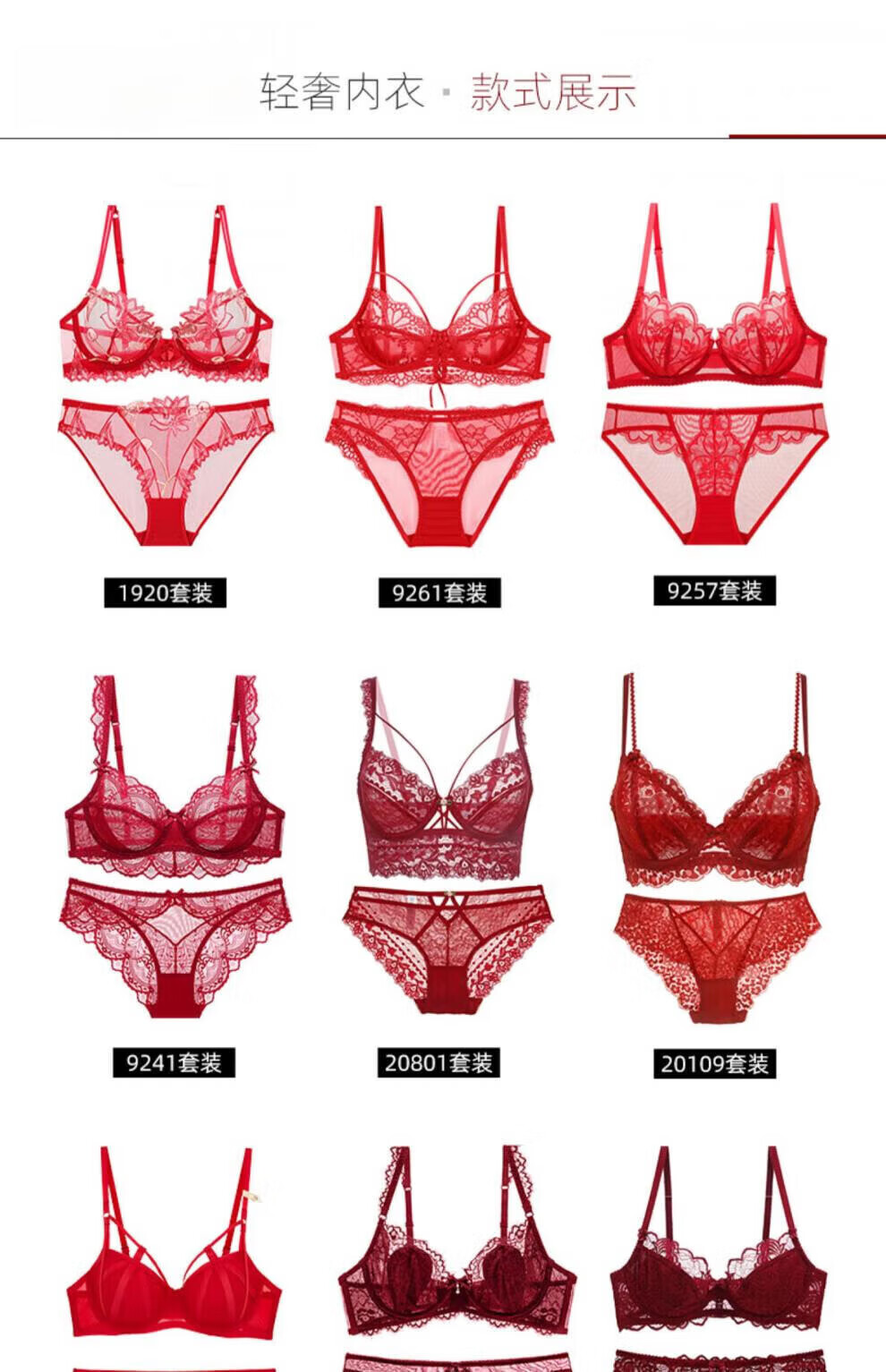 Oein bra set red underwear set for women in their zodiac year, thin, large breasts, small gathered, sexy lace knot 9241 set S 70A /32 (with underwear)