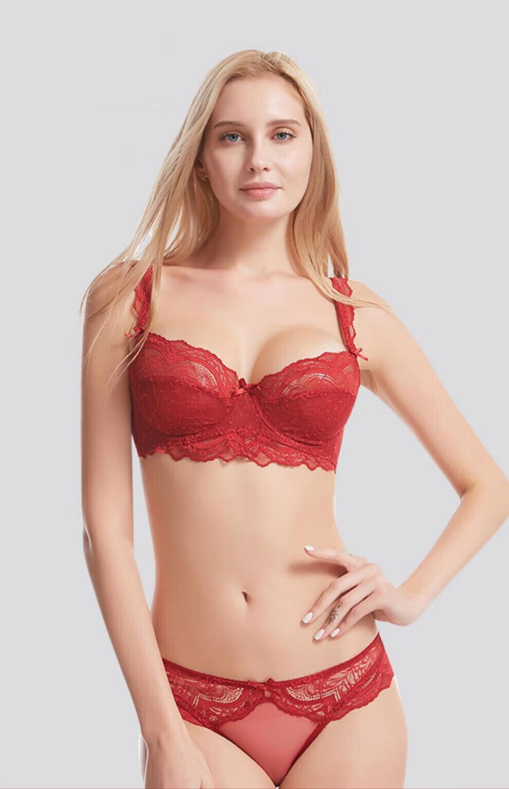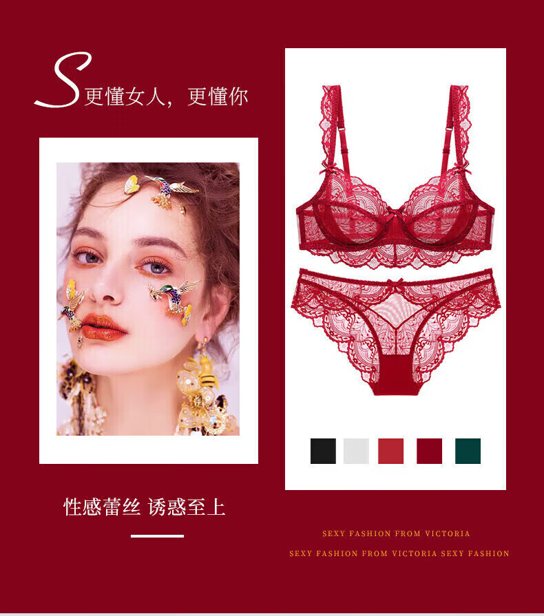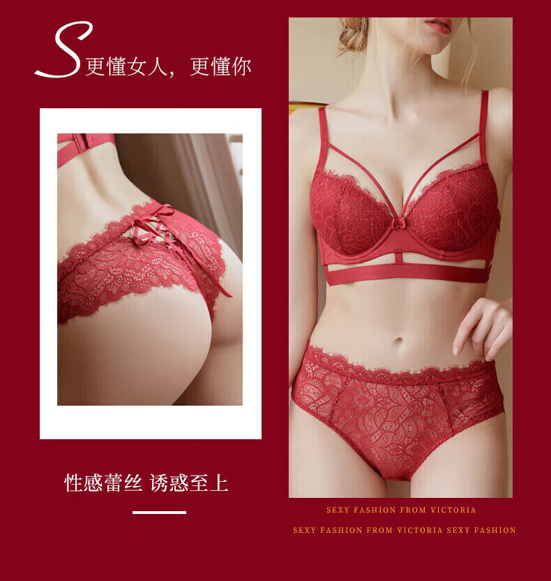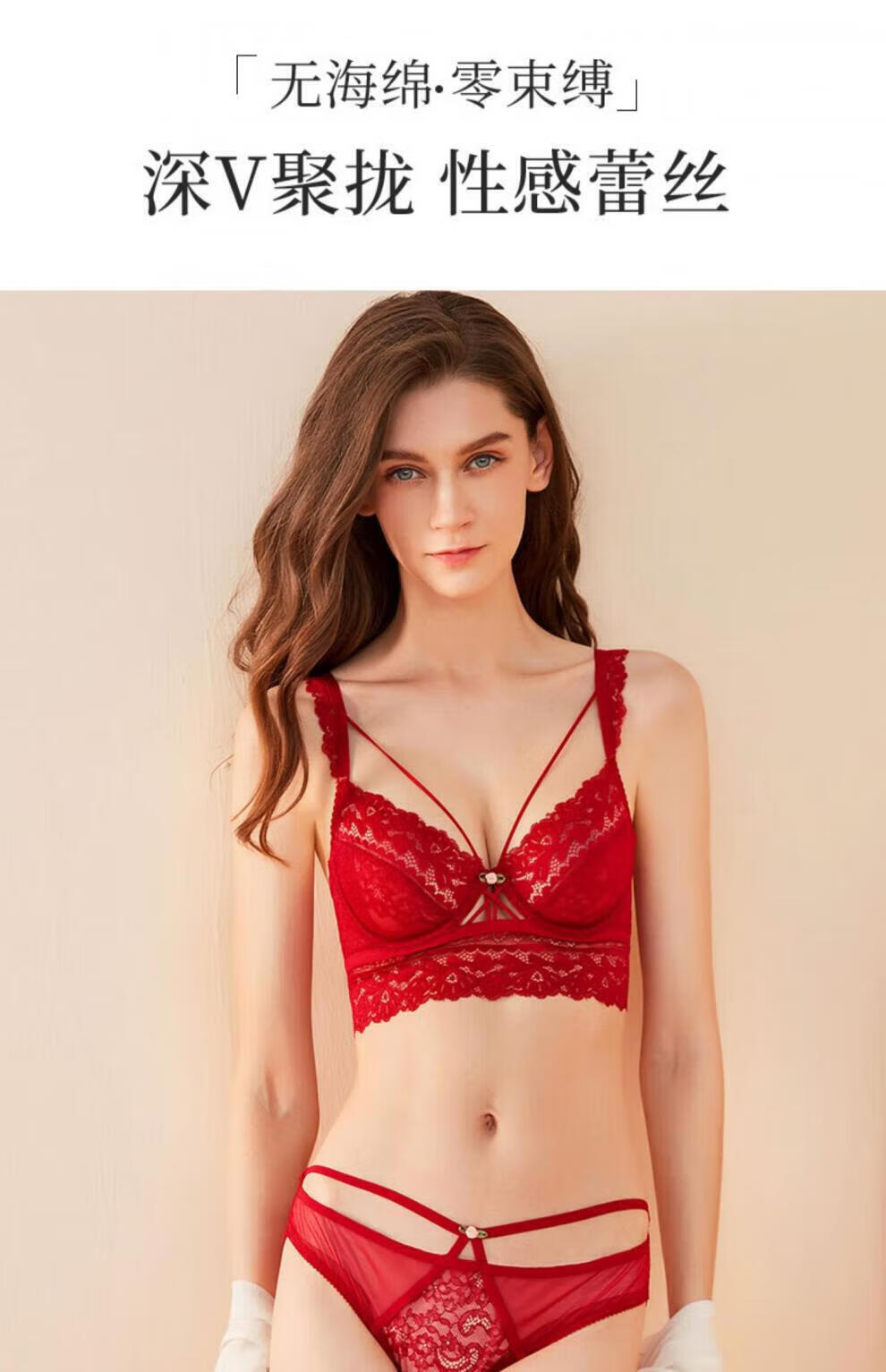 Oein bra set red underwear set for women in their zodiac year, thin, large breasts, small gathered, sexy lace knot 9241 set S 70A /32 (with underwear)